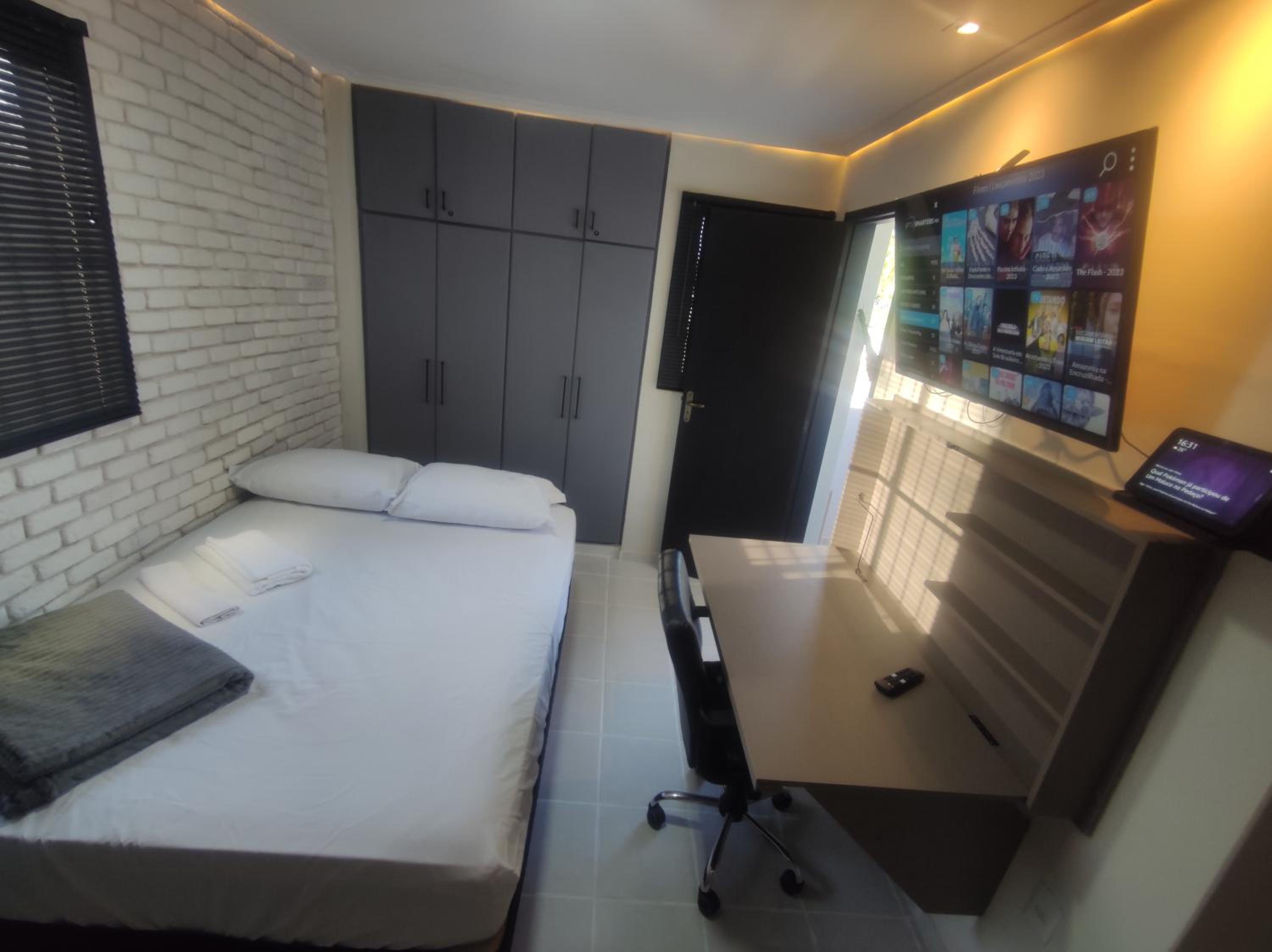 Quarto super confortável e funcional com tudo o que precisamos durante os dias de trabalho e lazer