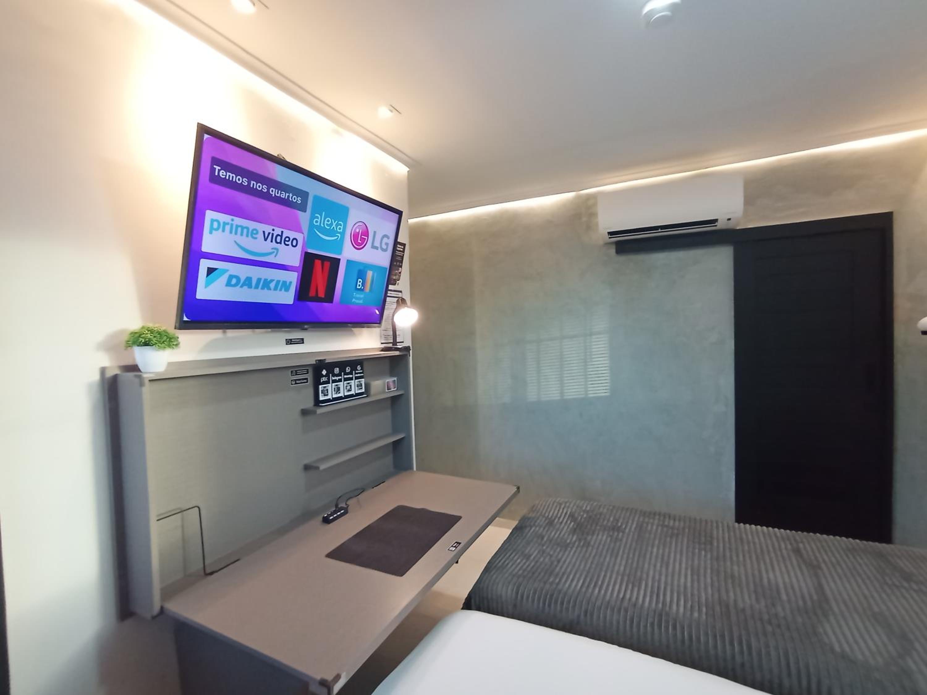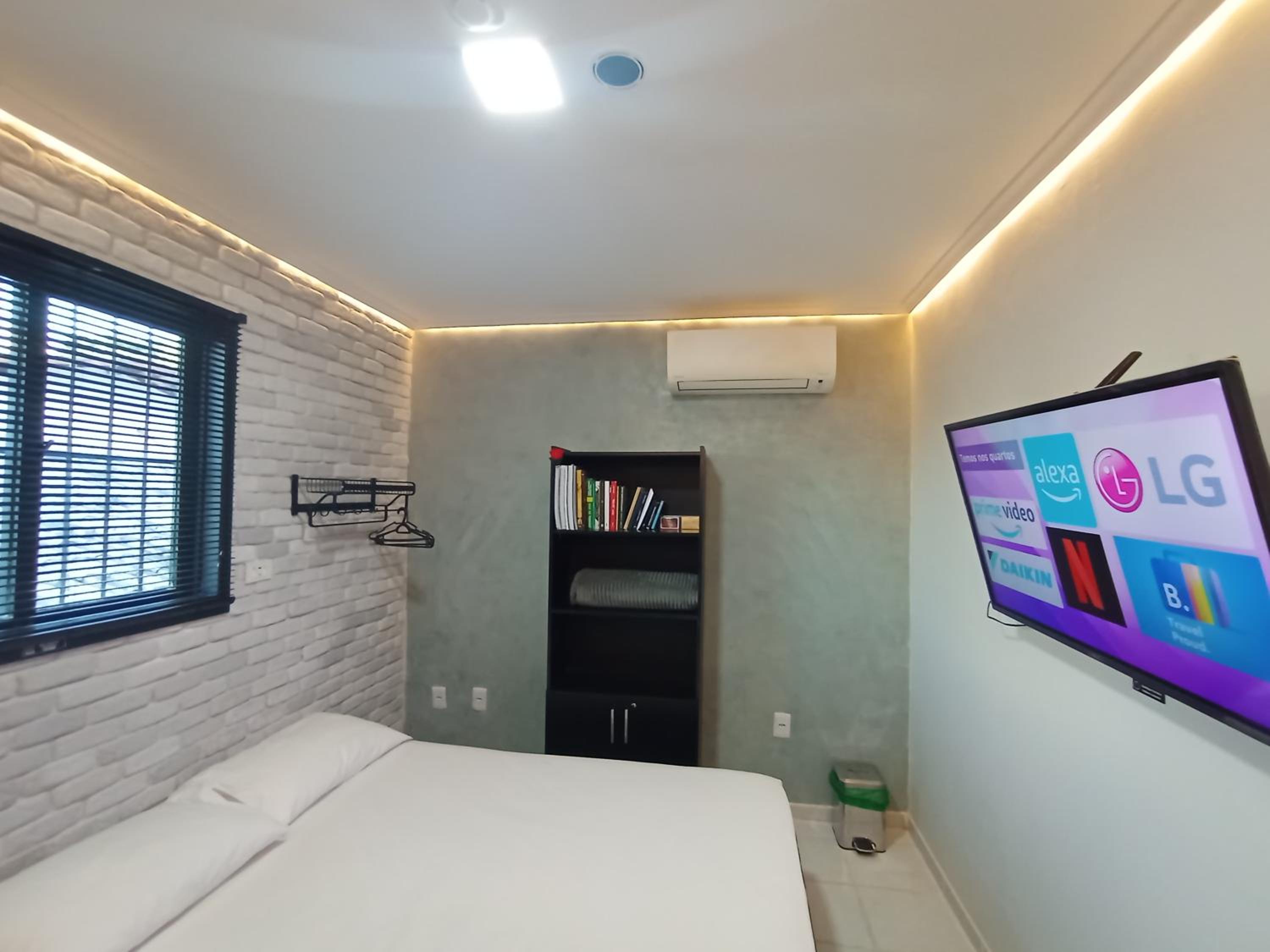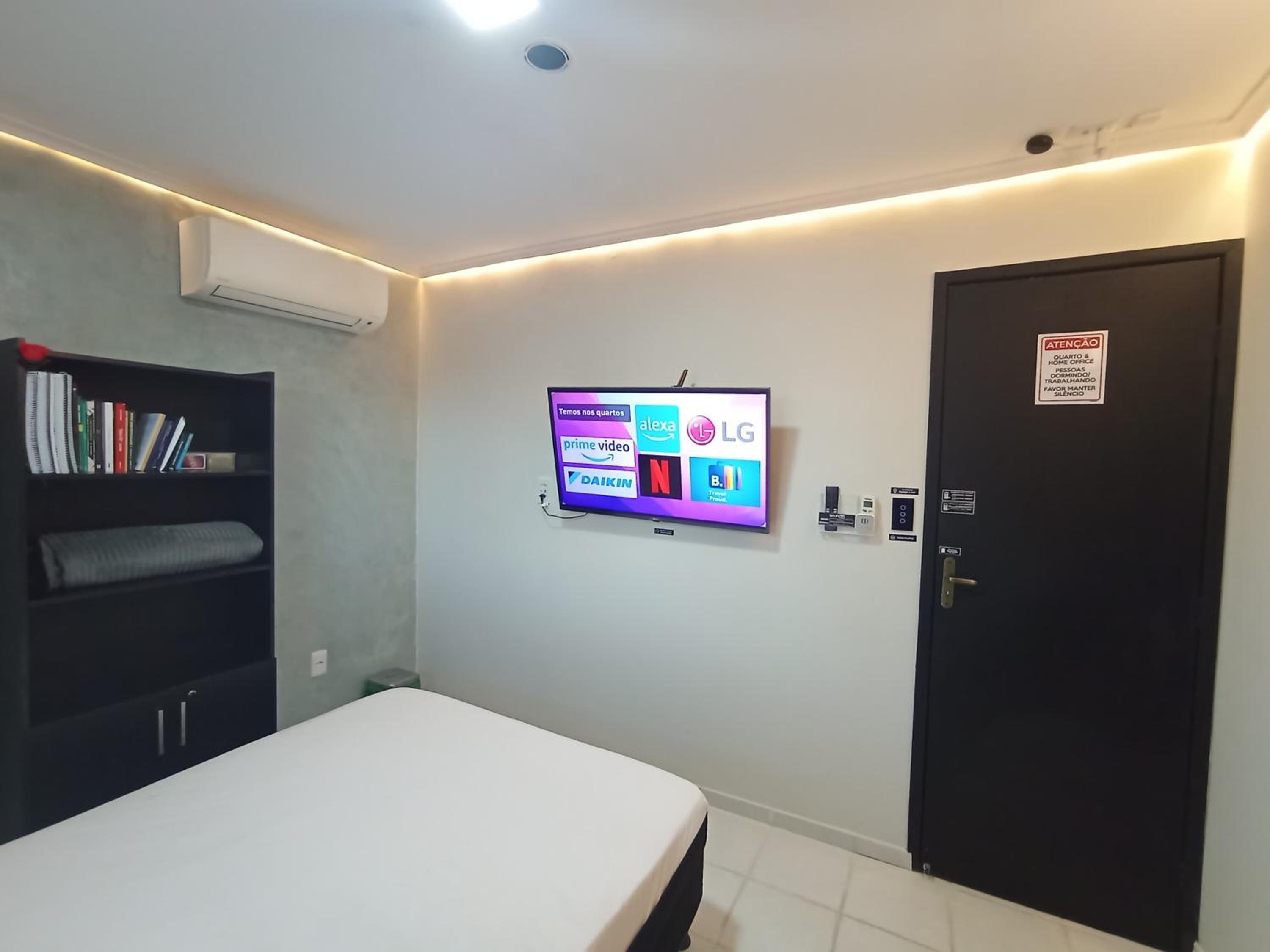 Tudo era automatizado, precisava ficar falando c a Alexa. O banheiro era compartilhado e qdo eu saía p ir lá precisava religar tudo. O ar condicionado desligava enquanto eu dormia, daí acordava suada. Não tinha lençol de cima p cobrir, nem toalha de rosto