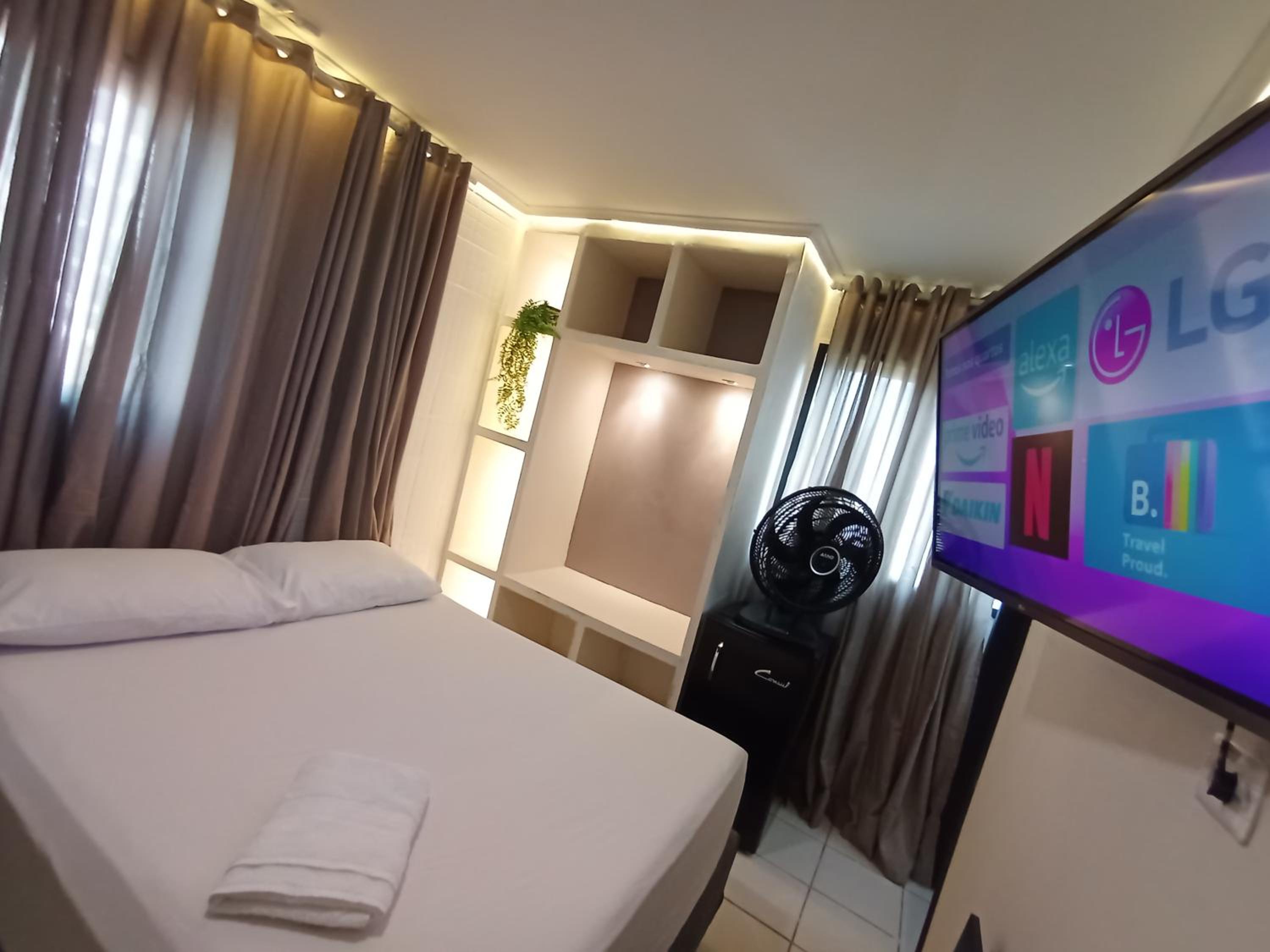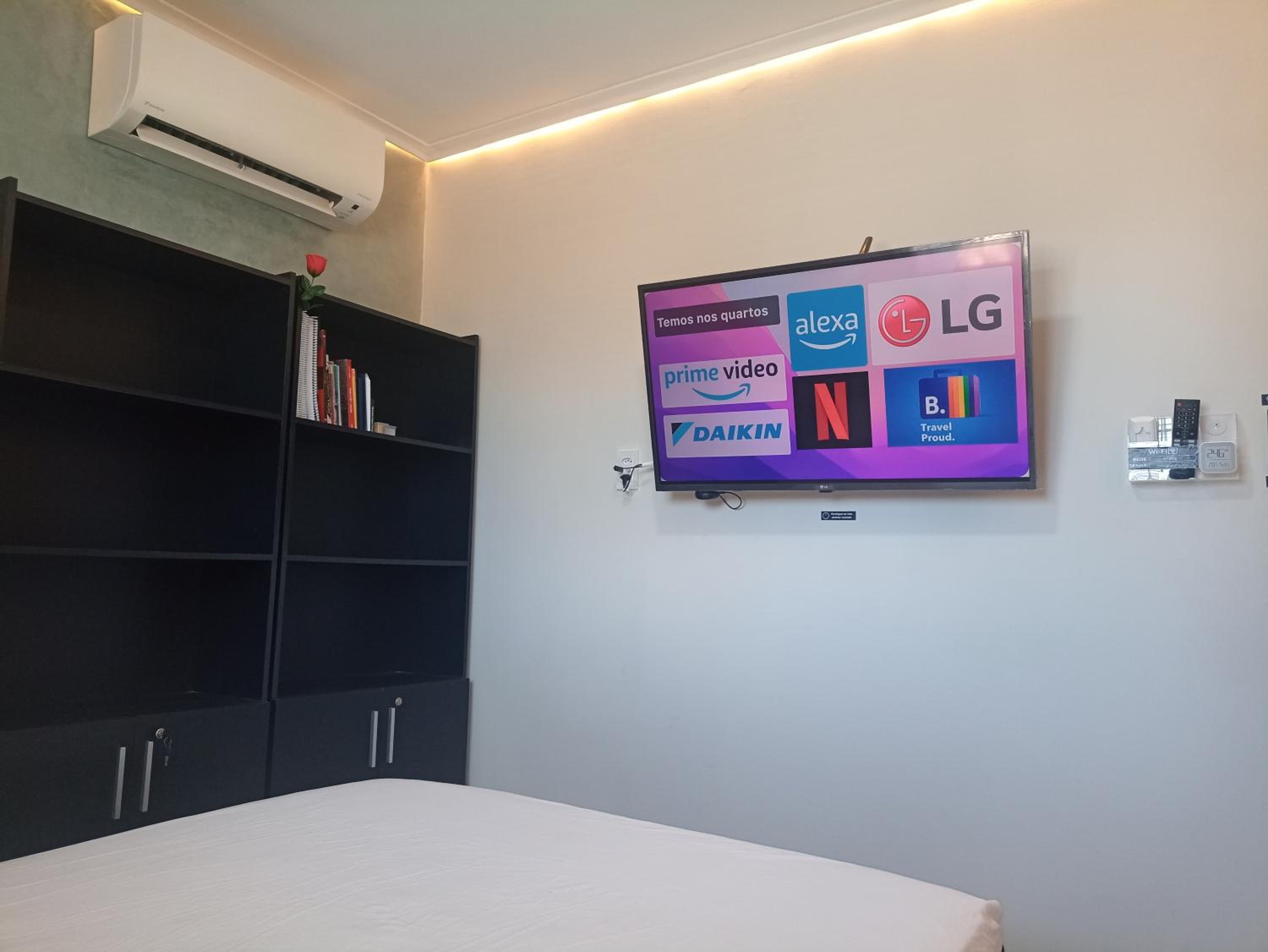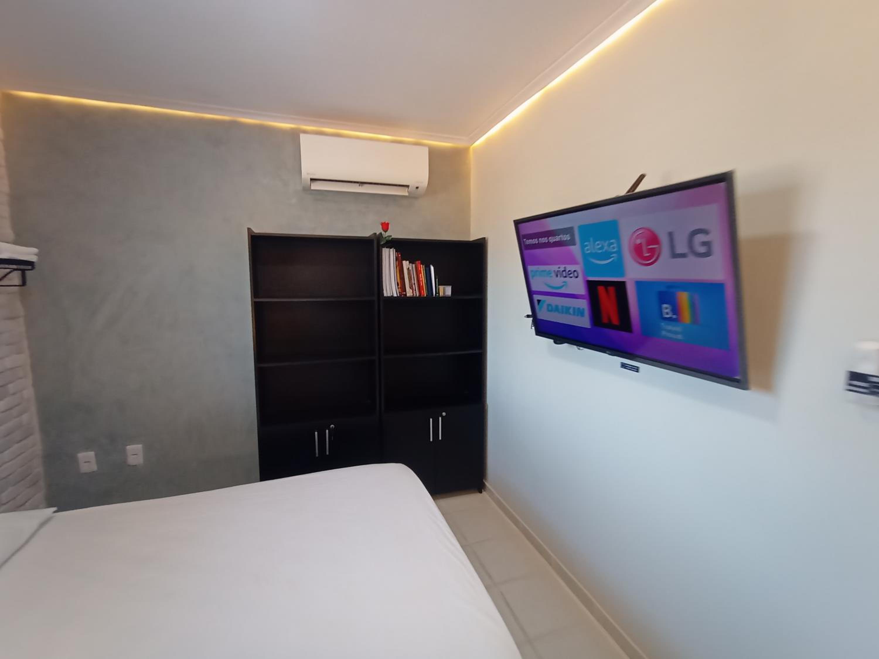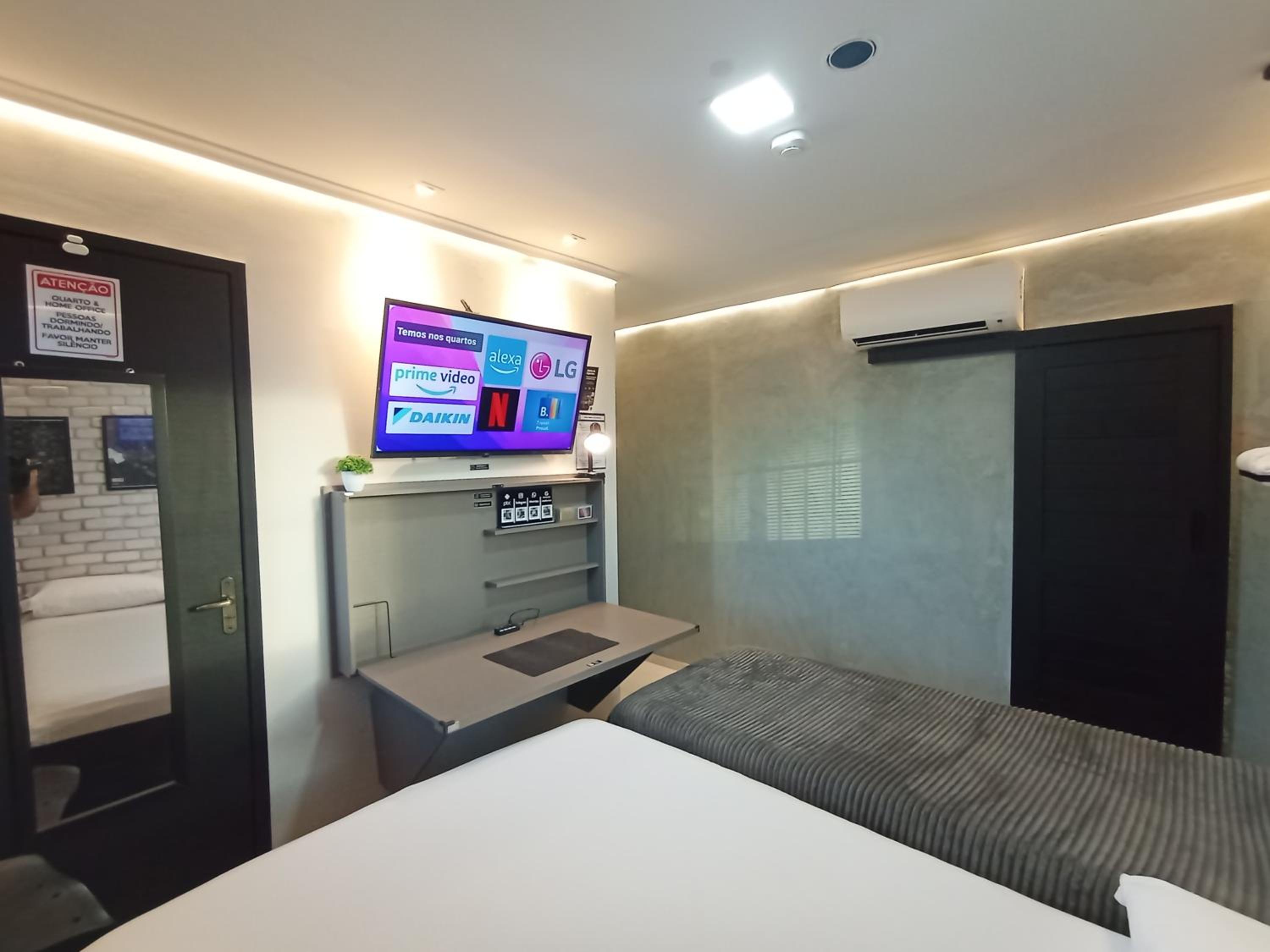Tudo era automatizado, precisava ficar falando c a Alexa. O banheiro era compartilhado e qdo eu saía p ir lá precisava religar tudo. O ar condicionado desligava enquanto eu dormia, daí acordava suada. Não tinha lençol de cima p cobrir, nem toalha de rosto