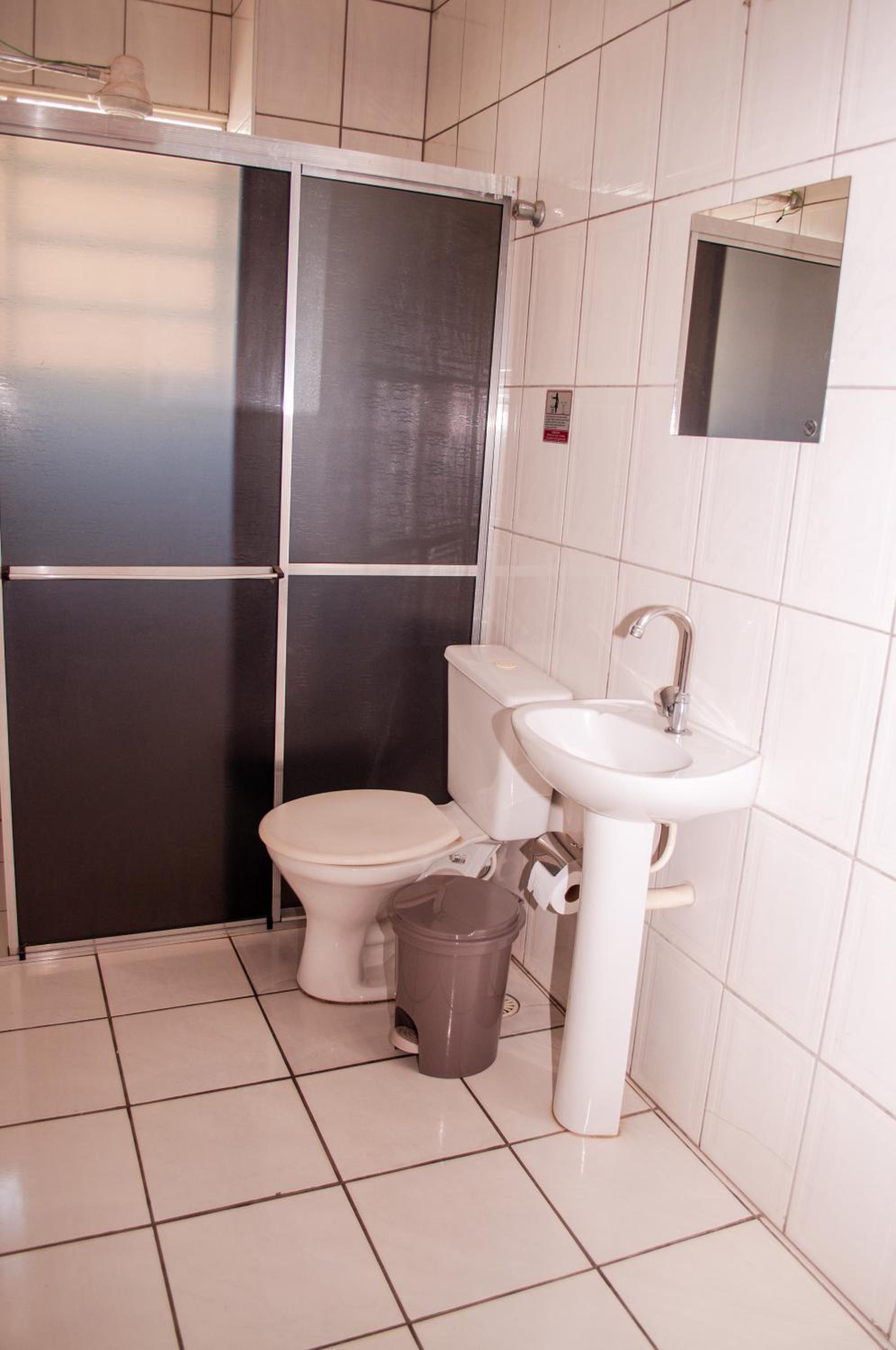 Each room at Hotel Silva Votorantim is equipped with modern amenities such as a fan, flat-screen TV, and a private bathroom with a shower, ensuring a comfortable stay for guests.