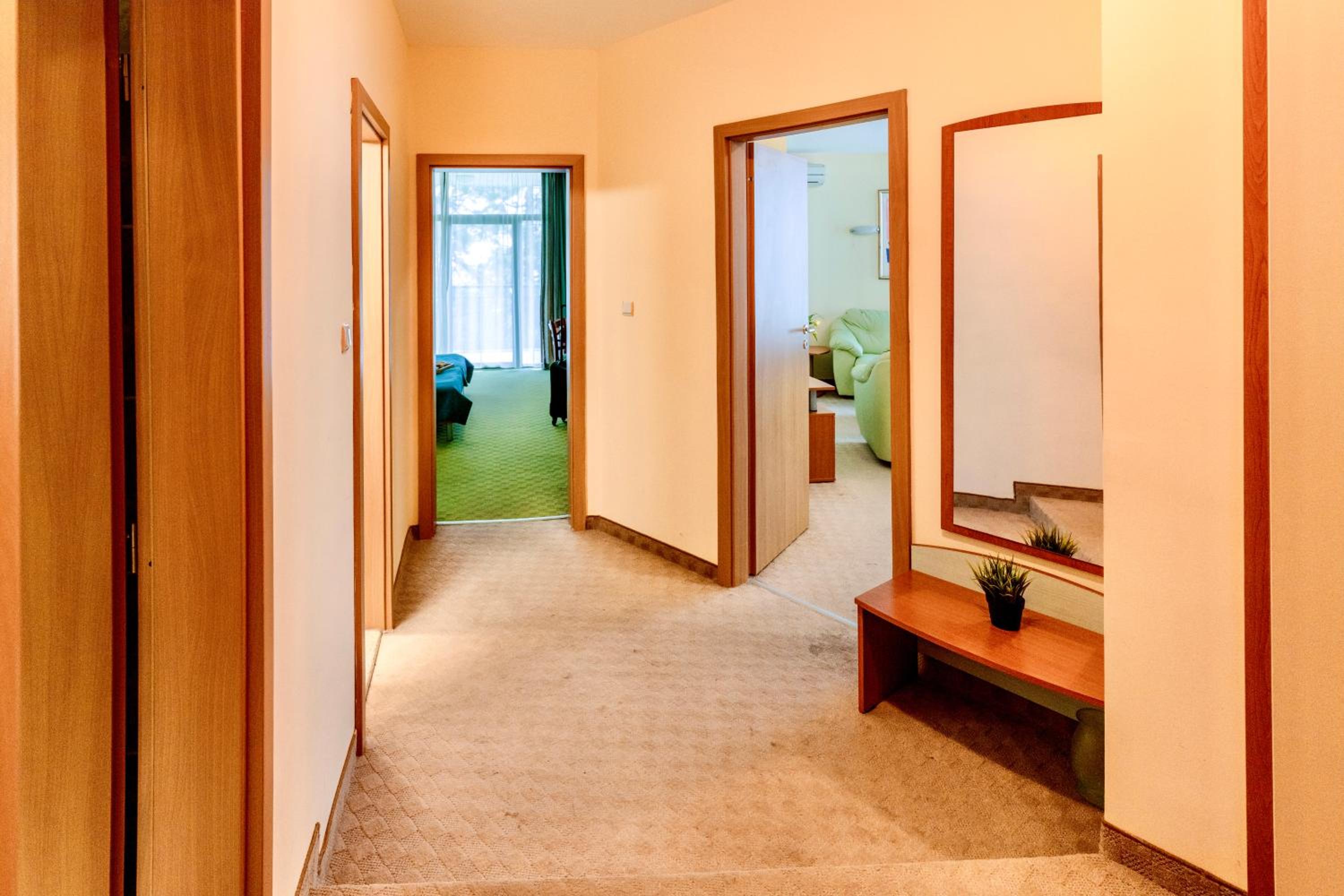 Personalul f amabil, am rezervat o camera tripla iar la check-in am primit upgrade la un apartament pentru ca au vazut ca suntem doi adulti si un copil de 15 ani.