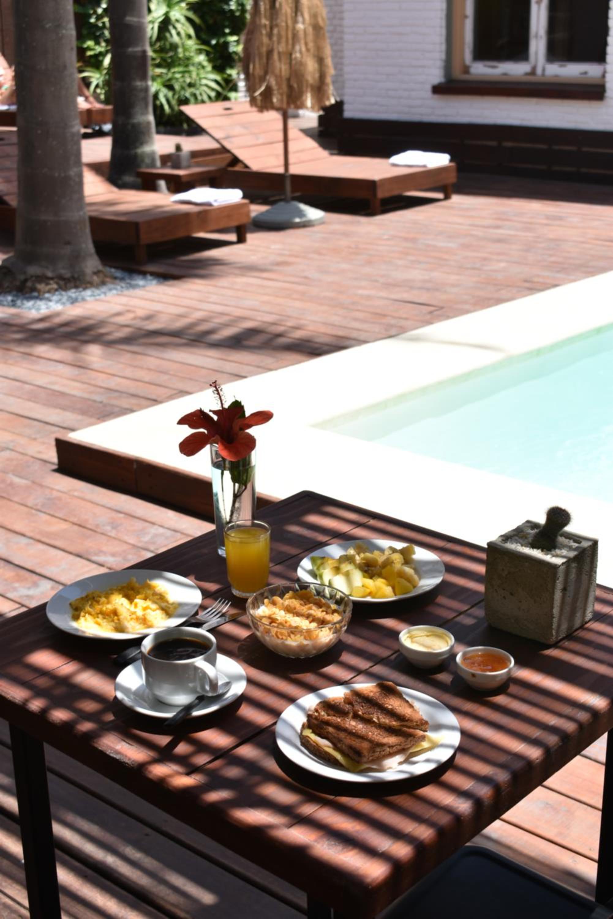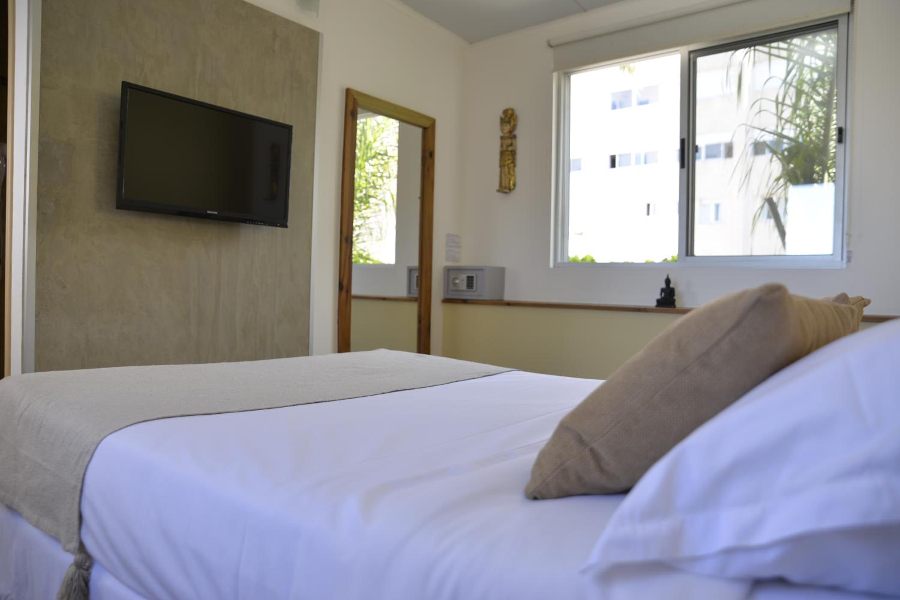 El lugar estaba muy bien, con camas cómodas y a pesar de ser una habitación compartida habia privacidad. Agradable piscina y espacio para tomar sol. Cercano a todo y personal muy amable