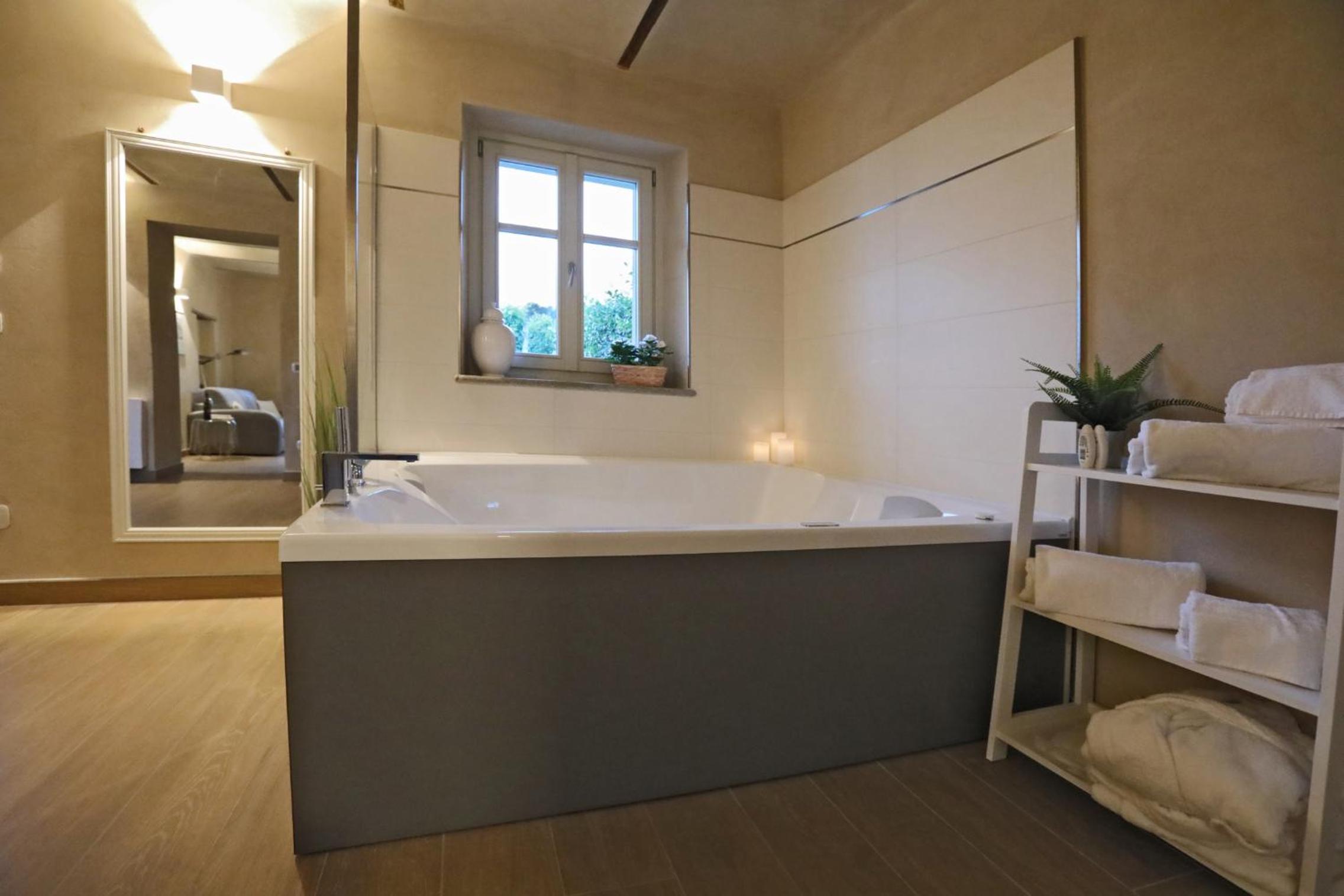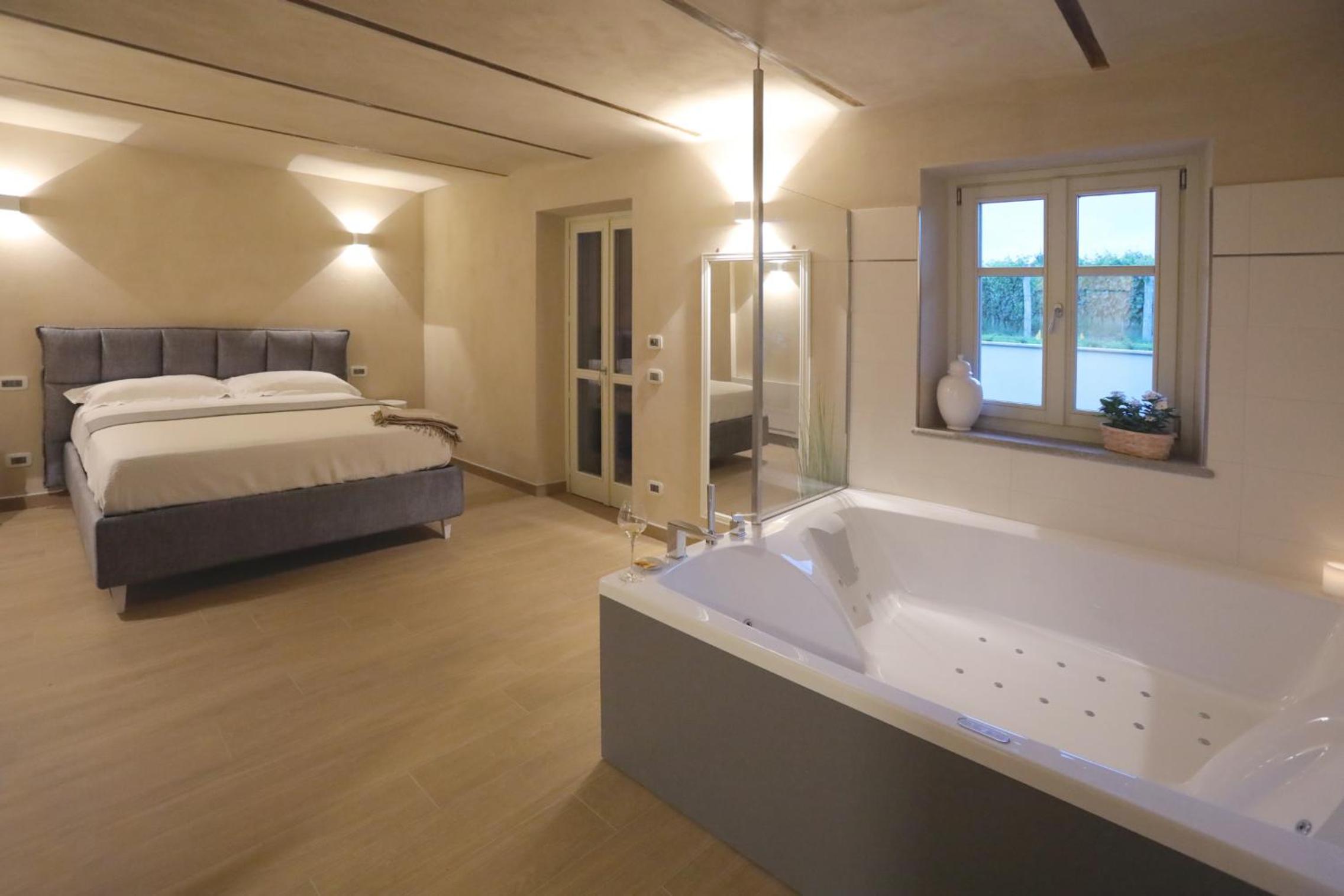 Non potevamo trovare sistemazione migliore ! accoglienza professionale e cortese, appartamento spazioso con arredamento di ottimo gusto e coordinato, cucina moderna super attrezzata incluso acqua latte e prosecco in frigo nonche diversi prodotti per la colazione . Bellissima terrazza attrezzata con sdraio, tavolino e sedie, con vista mozzafiato sulle vigne. La chicca è l'ampia vasca idromassaggio direttamente in camera, con accappatoi morbidissimi e ciabattine per ogni ospite. Letto comodissimo. Ottima posizione tranquilla e silenziosa, a pochi minuti a piedi da Monforte.