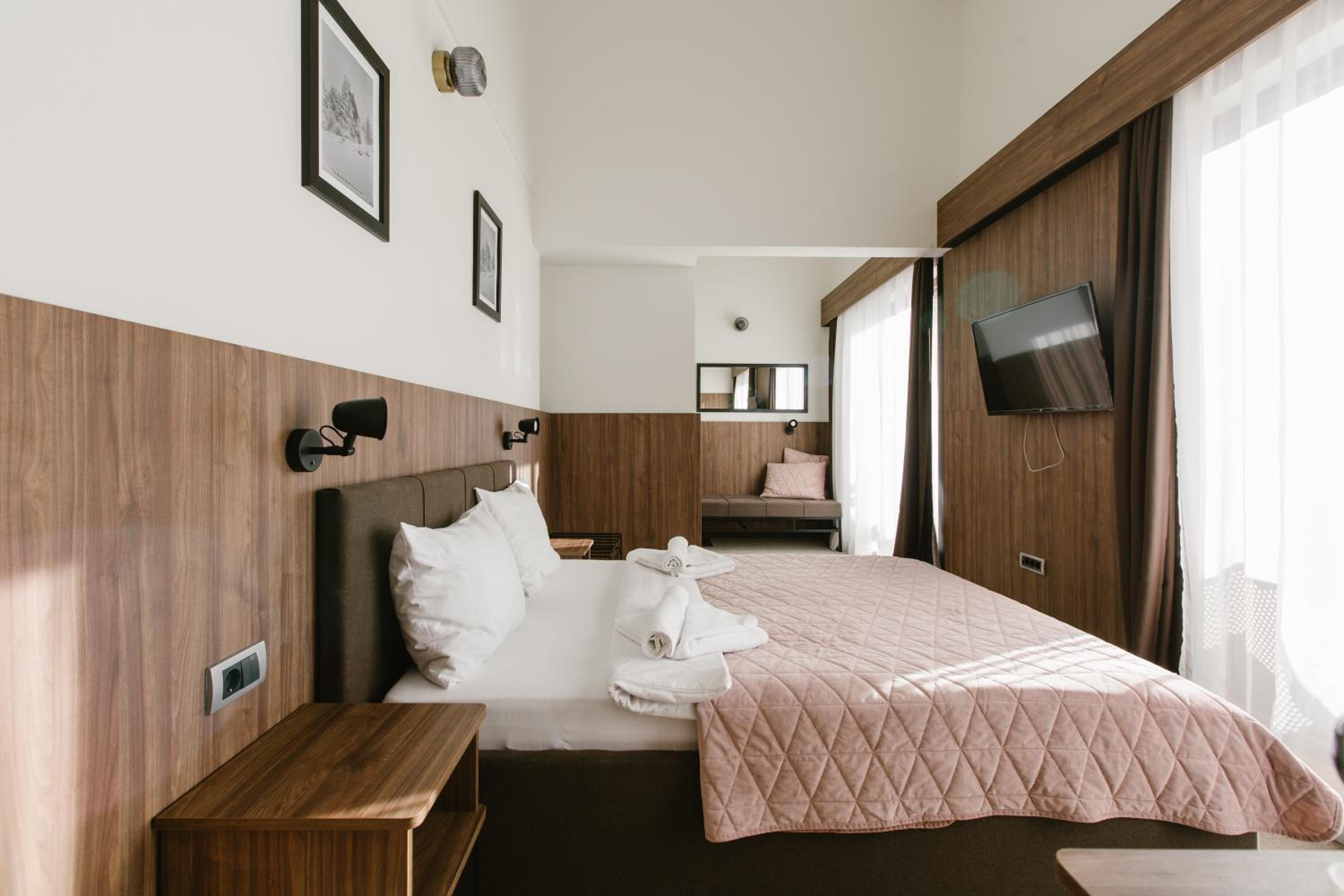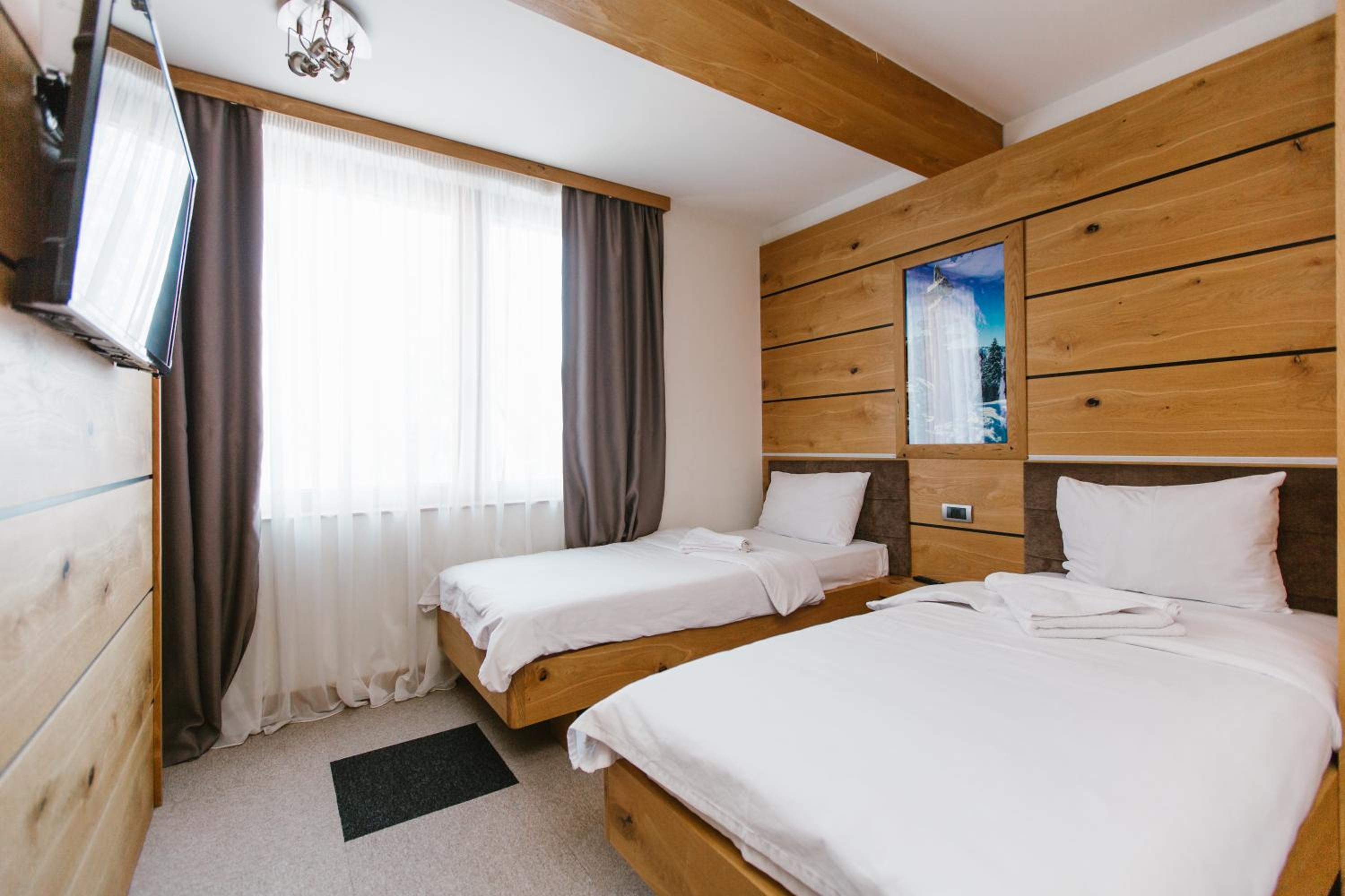 Отель потрясающий! Находится в паре километров от центра Копаоника, при этом имеет выезд и съезд на свою трассу (через нее можно кататься по всему курорту). В отеле есть все: ресторан, бар, каминная с открытым огнем и горячим чаем/кофе (ну и конечно, с чем покрепче), аренда оборудования, сушилка для лыж и ботов, очень дружелюбный персонал, всегда готовый помочь. Отдельно приятный бонус - бассейн с теплой водой и гидромассажными струями (входит в стоимость номера). Наш отдых тут был идеальным!!!