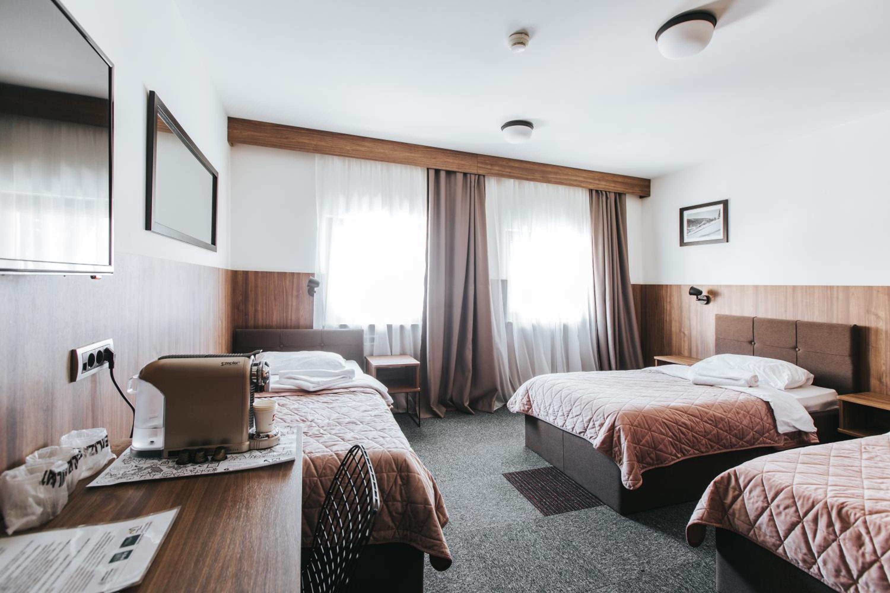 Нам очень понравилось отношение персонала, внимательны к гостям, очень хорошо убирали номер, неплохой завтрак, вокруг лес, свежий воздух, понравилось, что была кофе машина в номере, это очень удобно