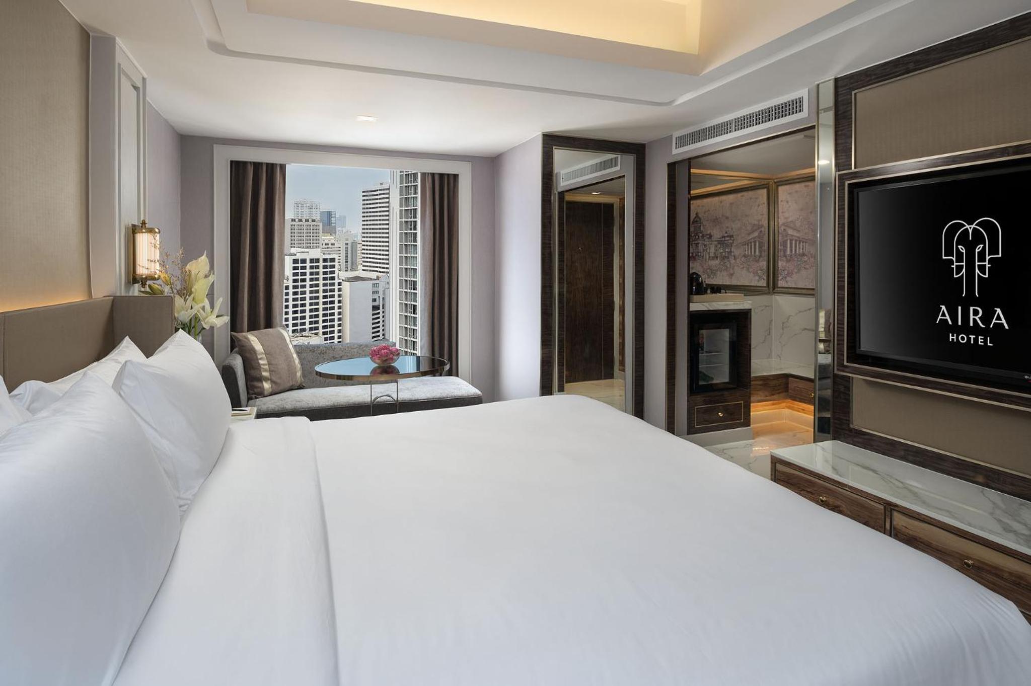 Experience comfort and convenience at Aira Hotel Bangkok Sukhumvit 11. Our air-conditioned rooms come with free WiFi, private parking, and room service. Enjoy a restful stay with amenities like a flat-screen TV, safety deposit box, and city views in select rooms.