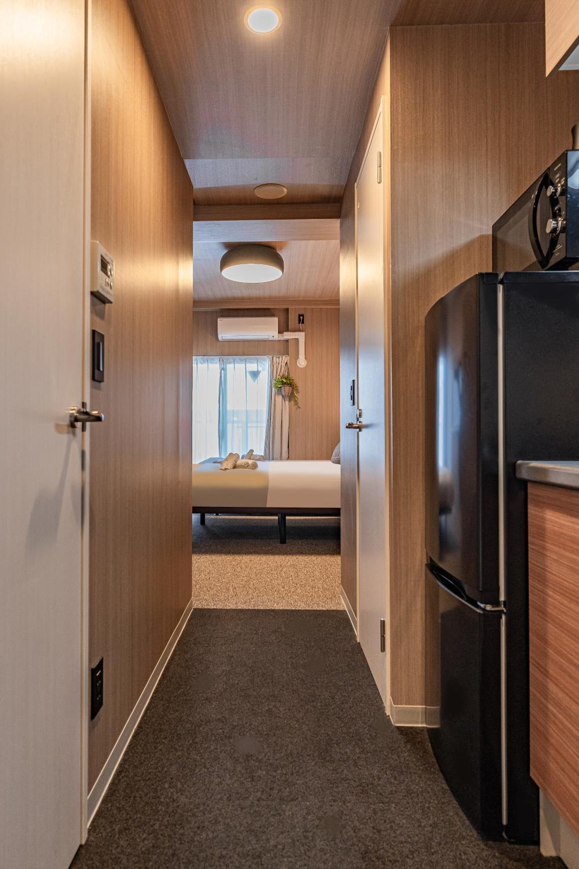 房間很乾淨,大小適中,還有小廚房跟洗衣機,性價比很高,大約走10分鐘到心齋橋