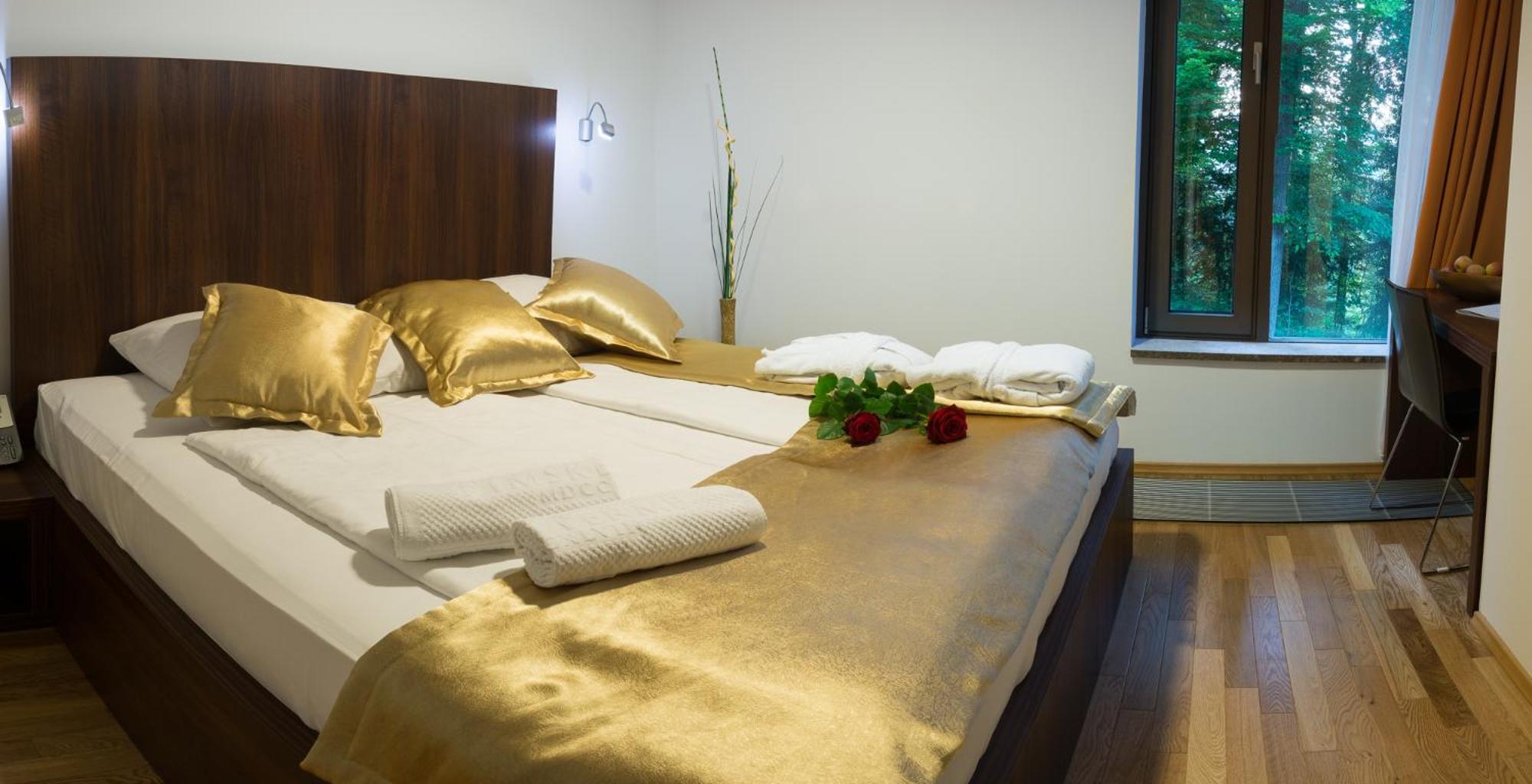 Rimske Terme Resort - Vila Sisi offers elegant air-conditioned rooms equipped with modern amenities such as a flat-screen TV, safety deposit box, and private bathroom. The perfect blend of comfort and style awaits you.