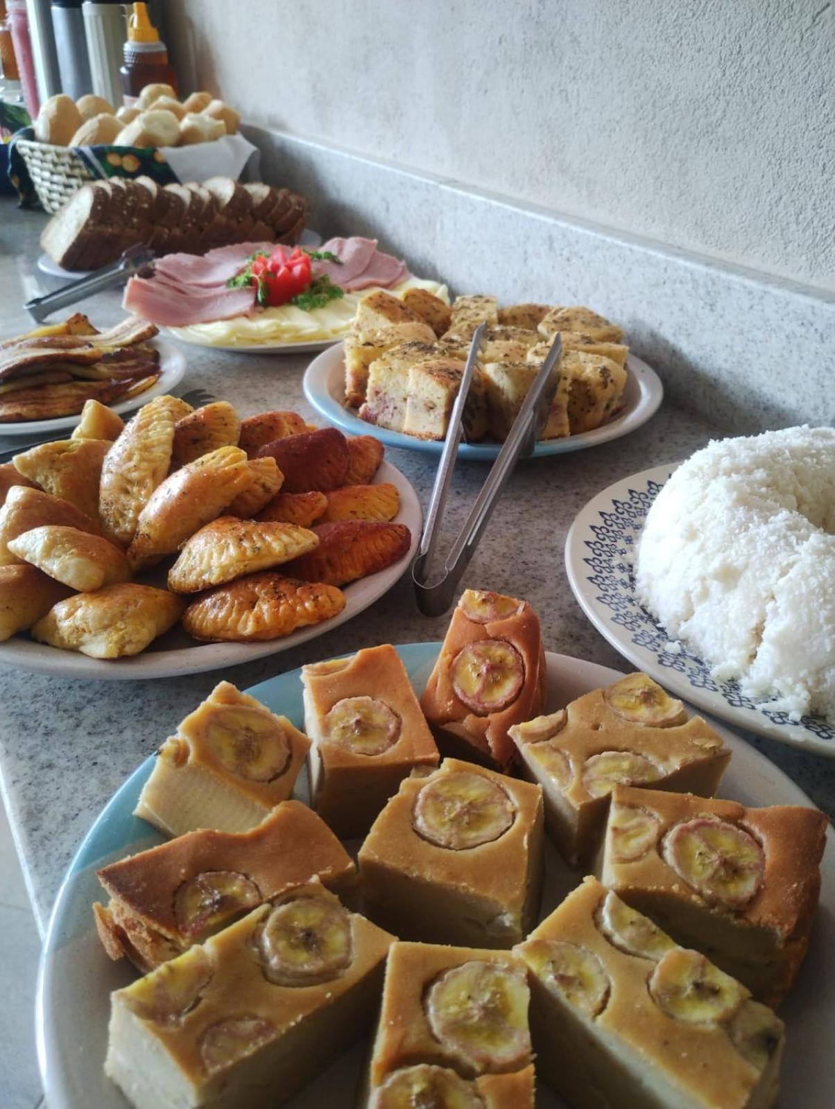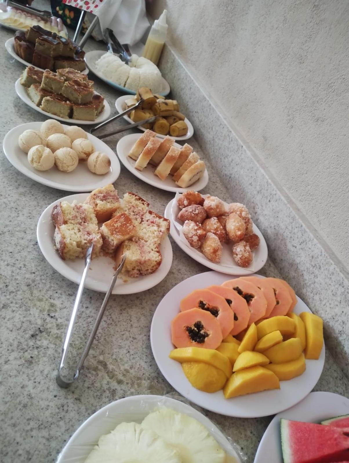 A pousada é simples, mas o café da manhã é bem diversificado.