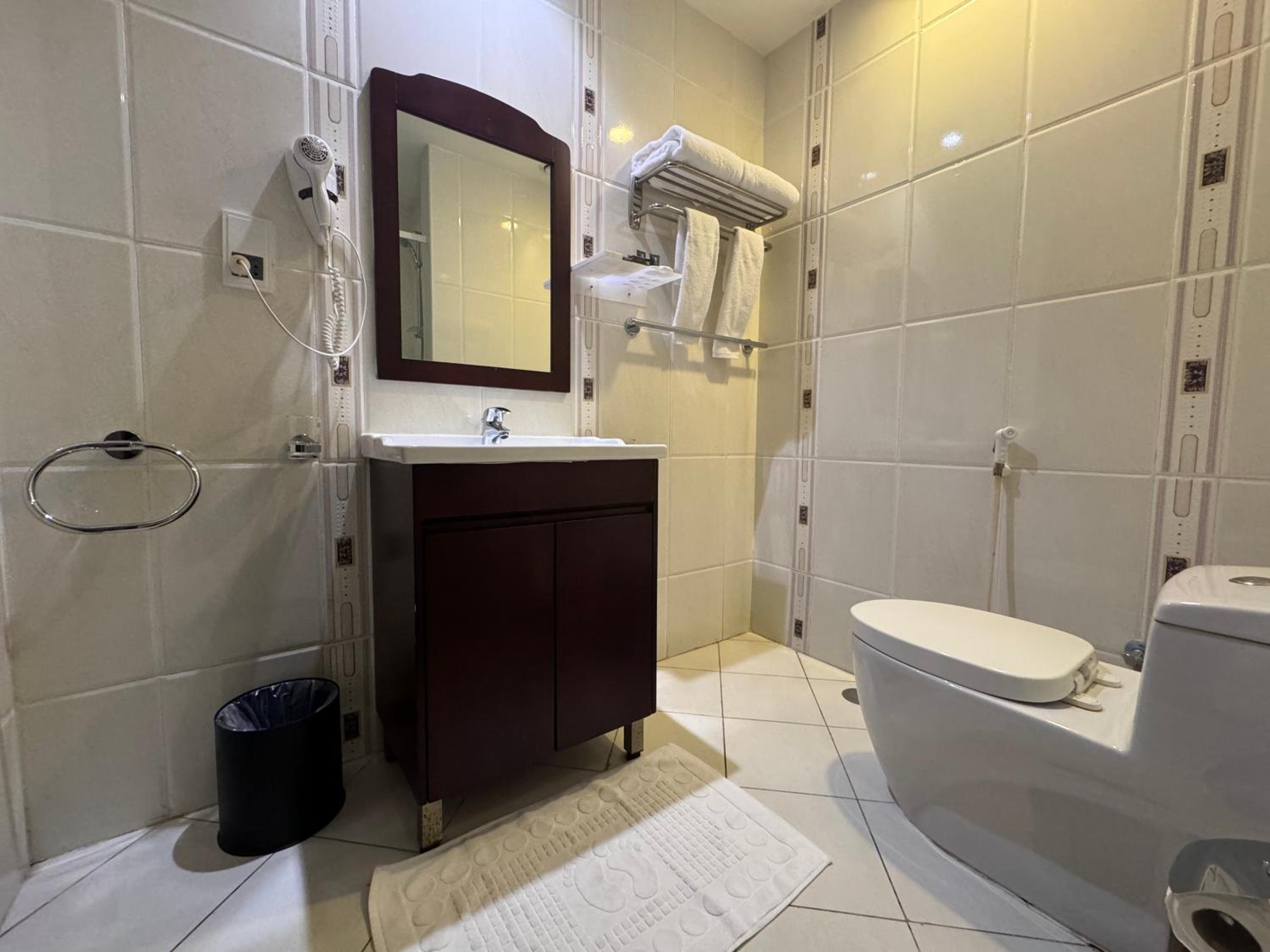 Guests can enjoy air-conditioned rooms equipped with essential amenities such as a fridge, flat-screen TV, and a private bathroom with a bidet. The hotel also offers a 24-hour front desk, shuttle service, room service, and free WiFi throughout the property for a comfortable stay.