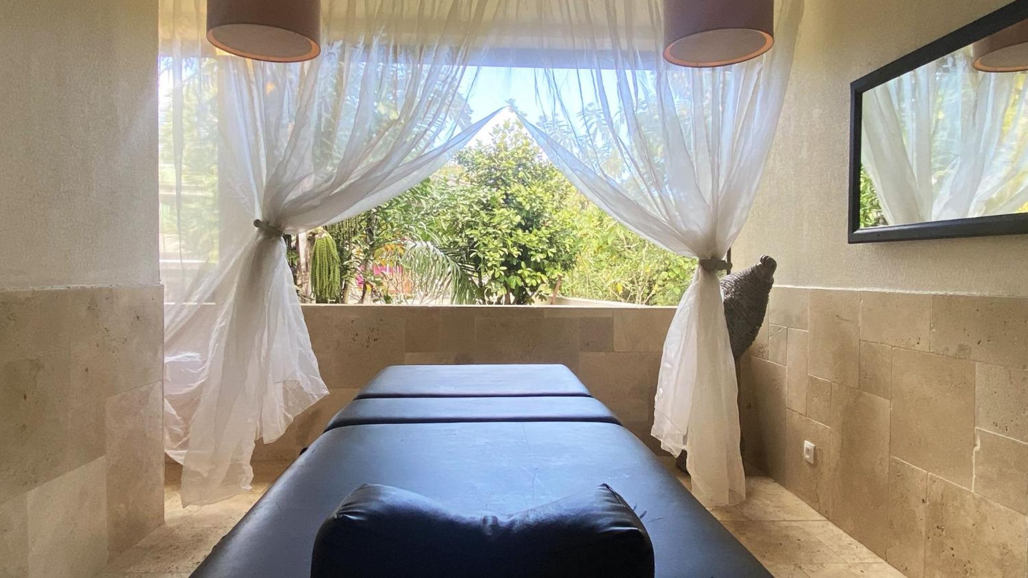 Le calme et le cadre très reposant. L'accès à la piscine et autres équipements de relaxation sont très faciles et agréables