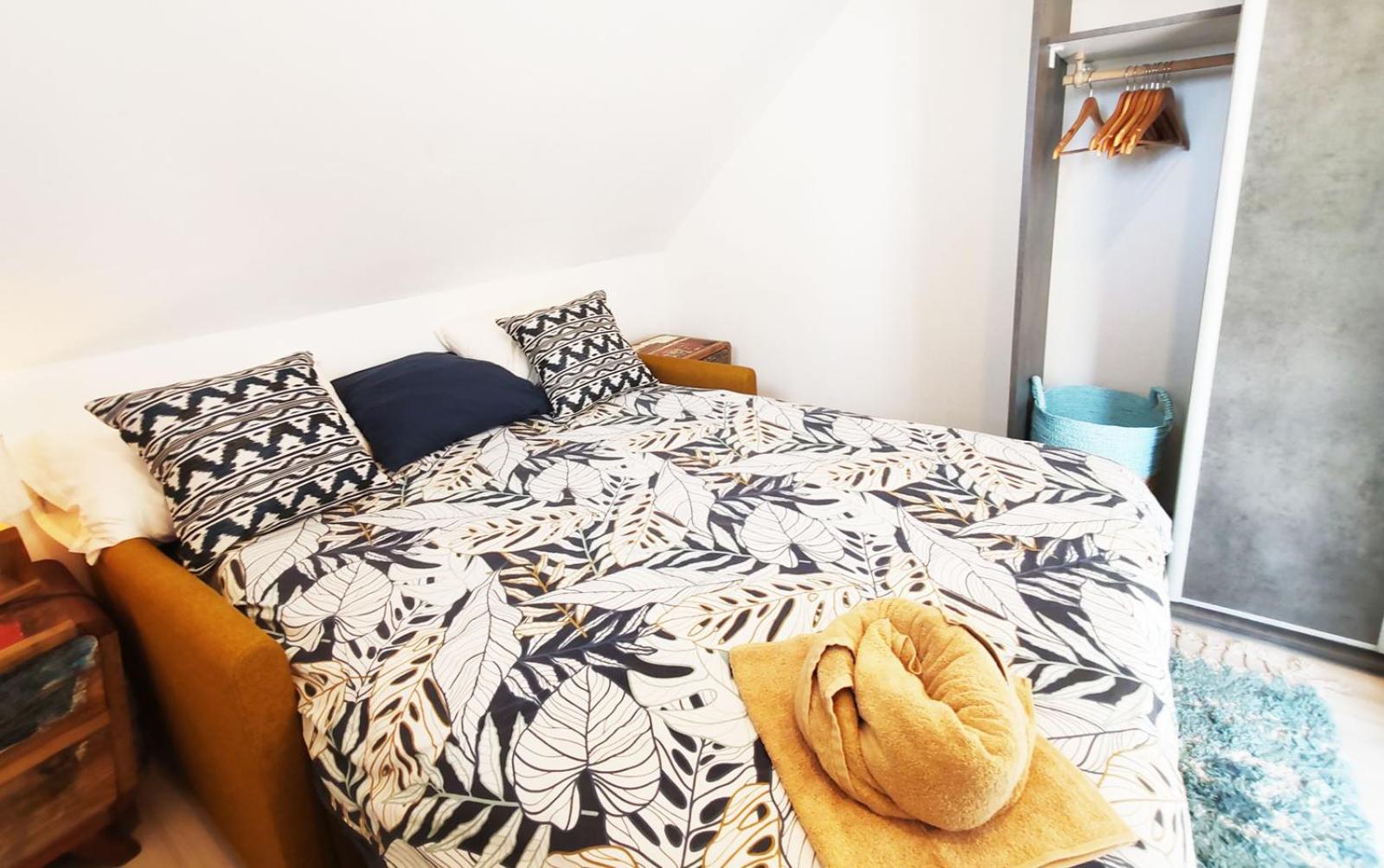 Il y a un parking a 2 mn à pied et un centre Leclerc pour faire ses achats à 5mn à pied