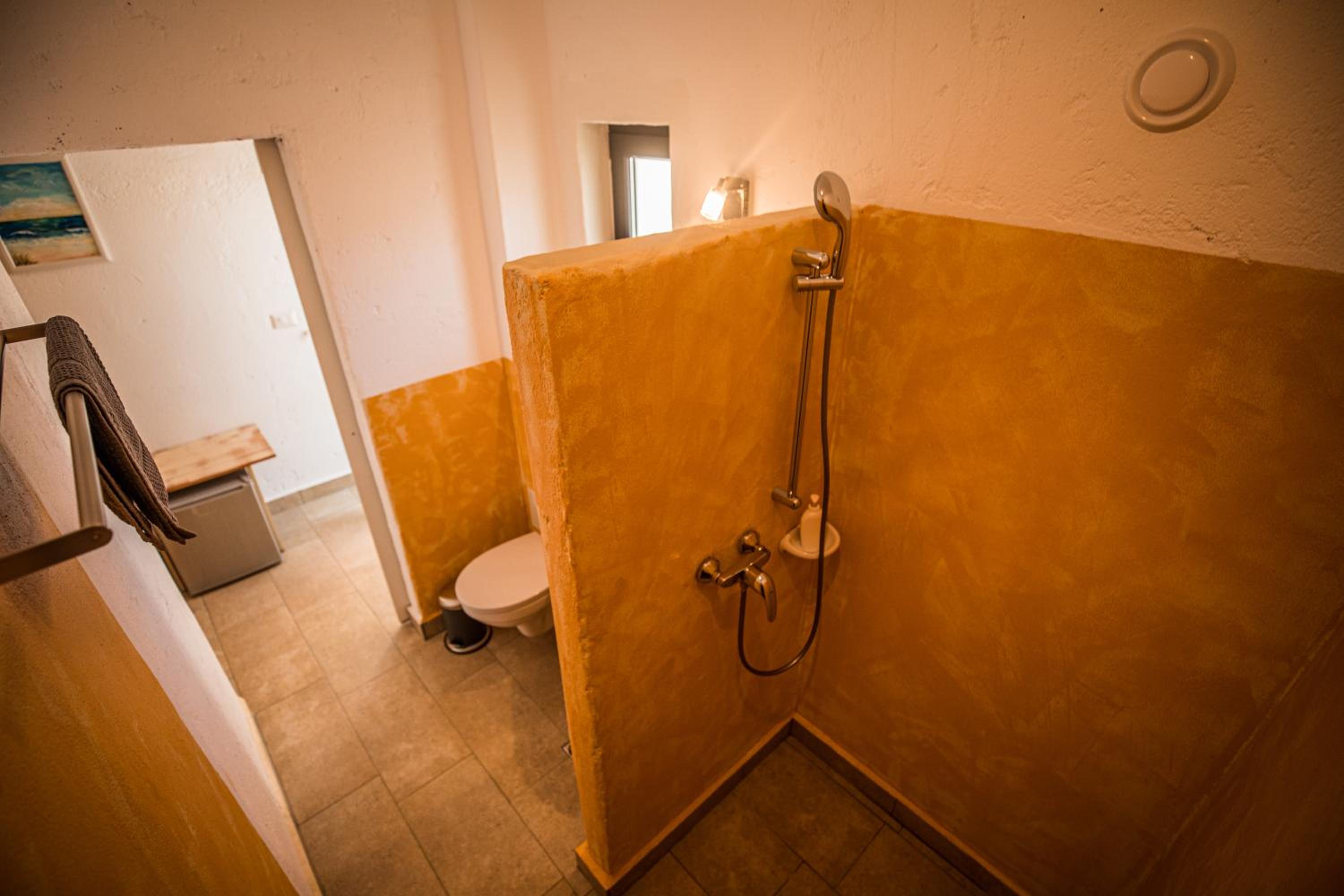 Aproprierea de plaja, curatenia, decorarea atipica fata de alte locatii pe care le-am folosit, conditiile de liniste , expresorul si cafeaua, faptul ca ne-a oferit apa din partea casei, baia mare, dusul separat oarecum de wc