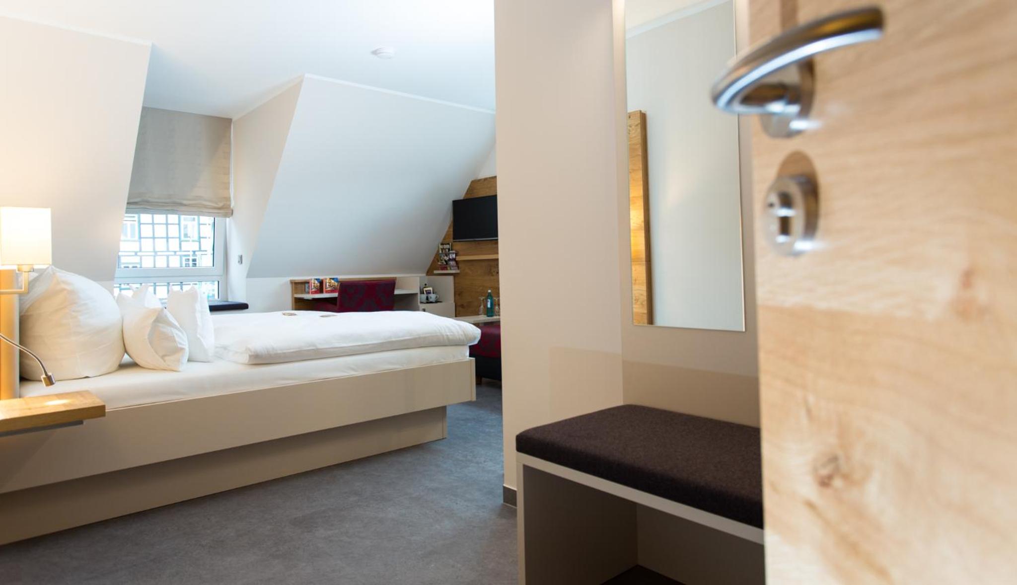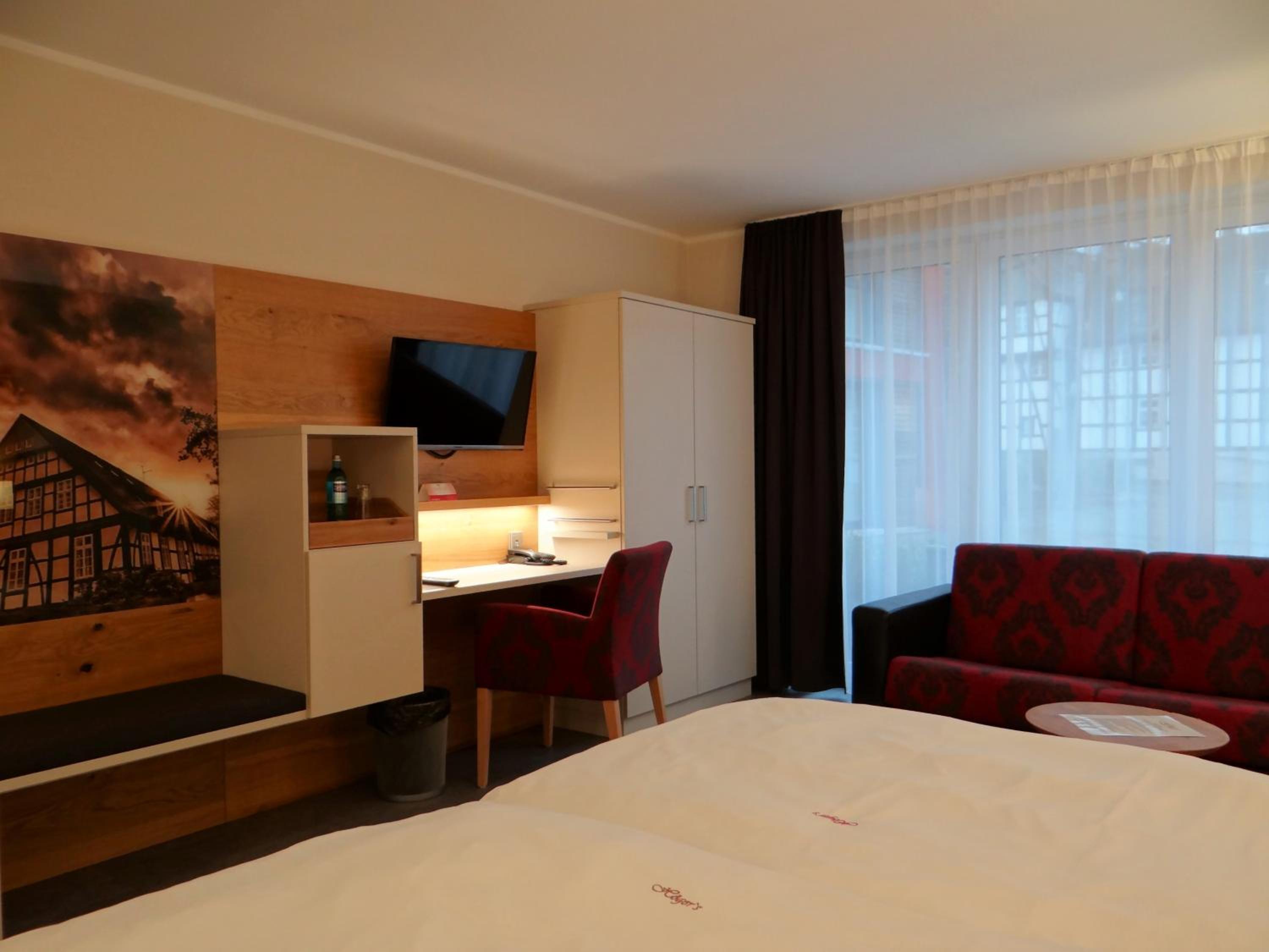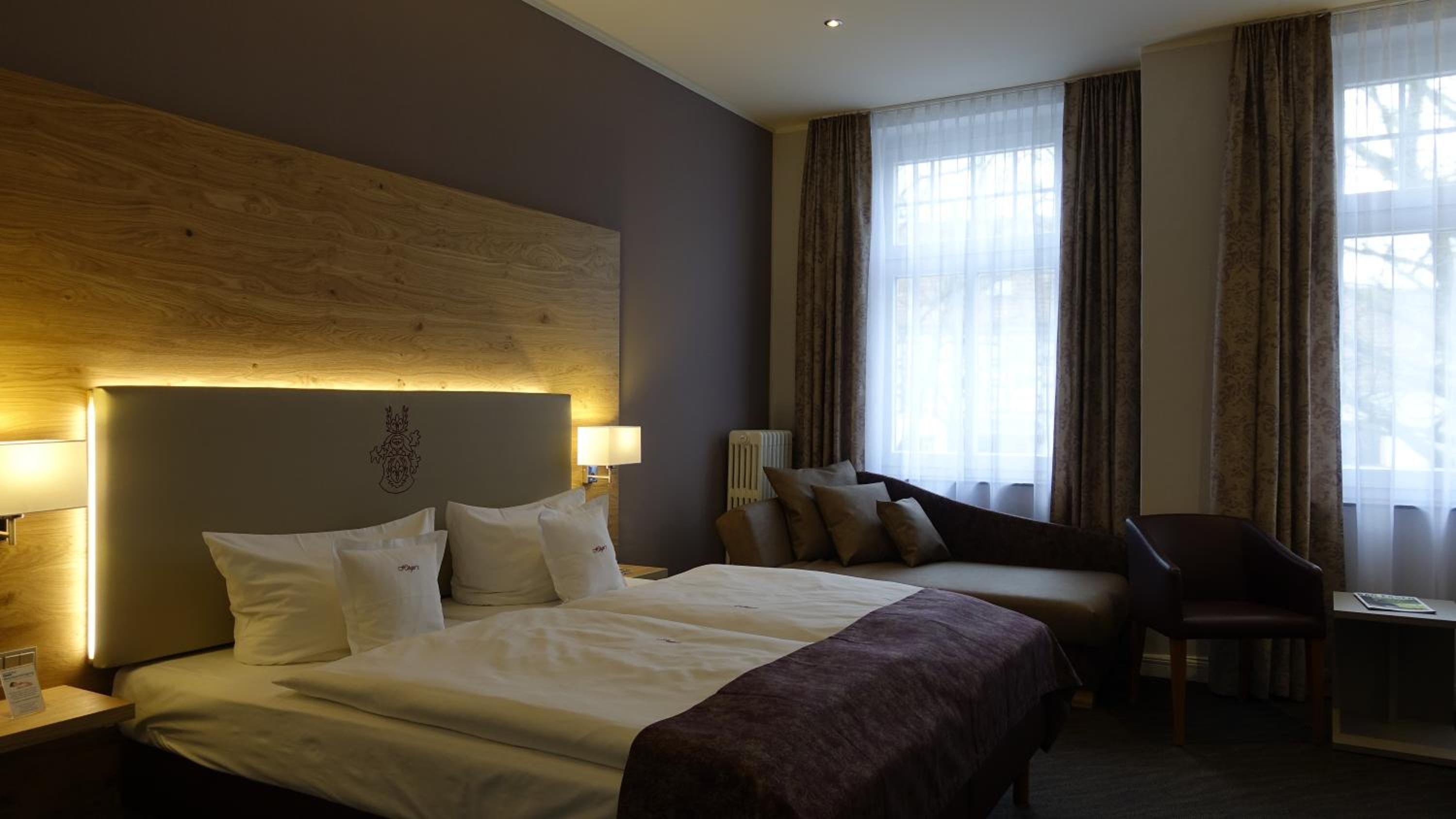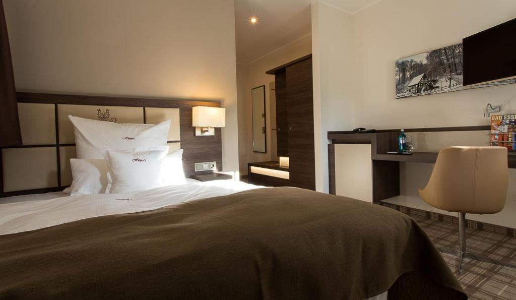 Discover the charm of a historic listed building at 4-star Höger's Hotel & Restaurant in Bad Essen. Each uniquely decorated room offers a glimpse into the past, with some showcasing traditional half-timbered structures.