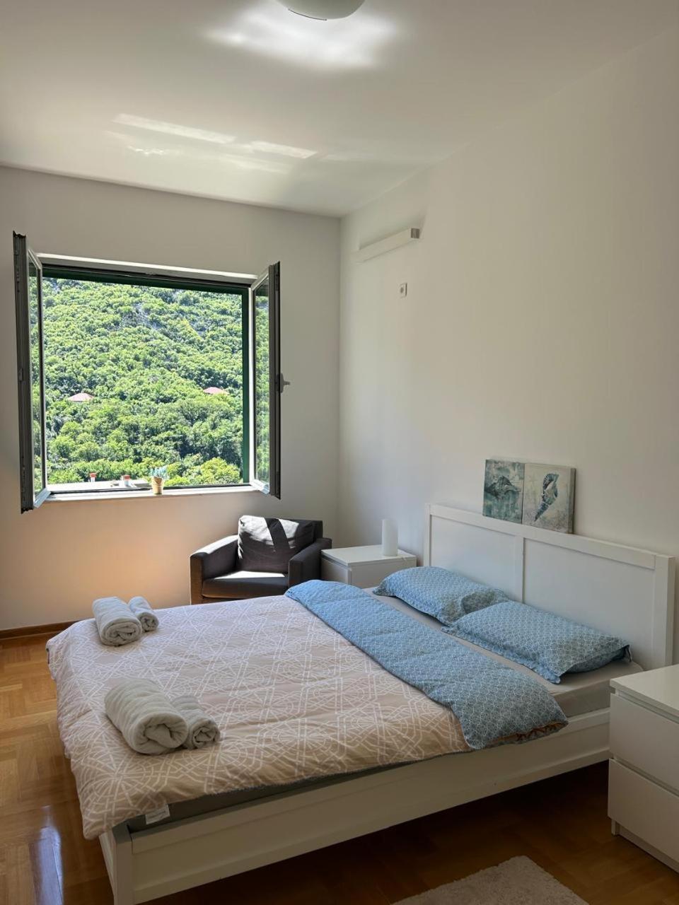 Apartment is equiped with everything what is requiered for a long stay (including oven, washing machine etc). Good location, great view from swiming pool.