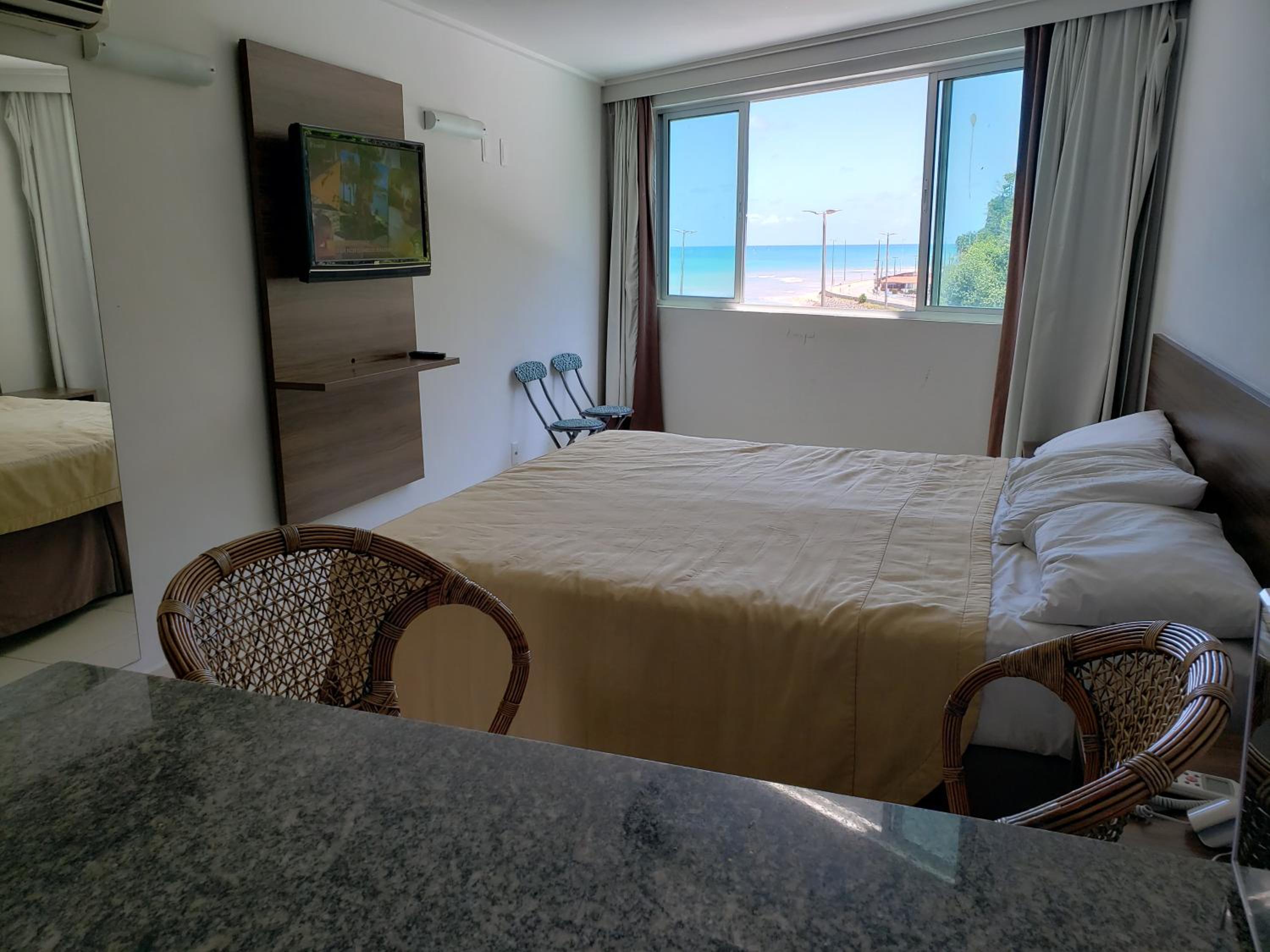 Ar condicionado pingando, televisão sem acessar nenhum canal, mofo numa das paredes, falta de fogão e/ou micro-ondas para refeições. Poucos pontos a melhorar.