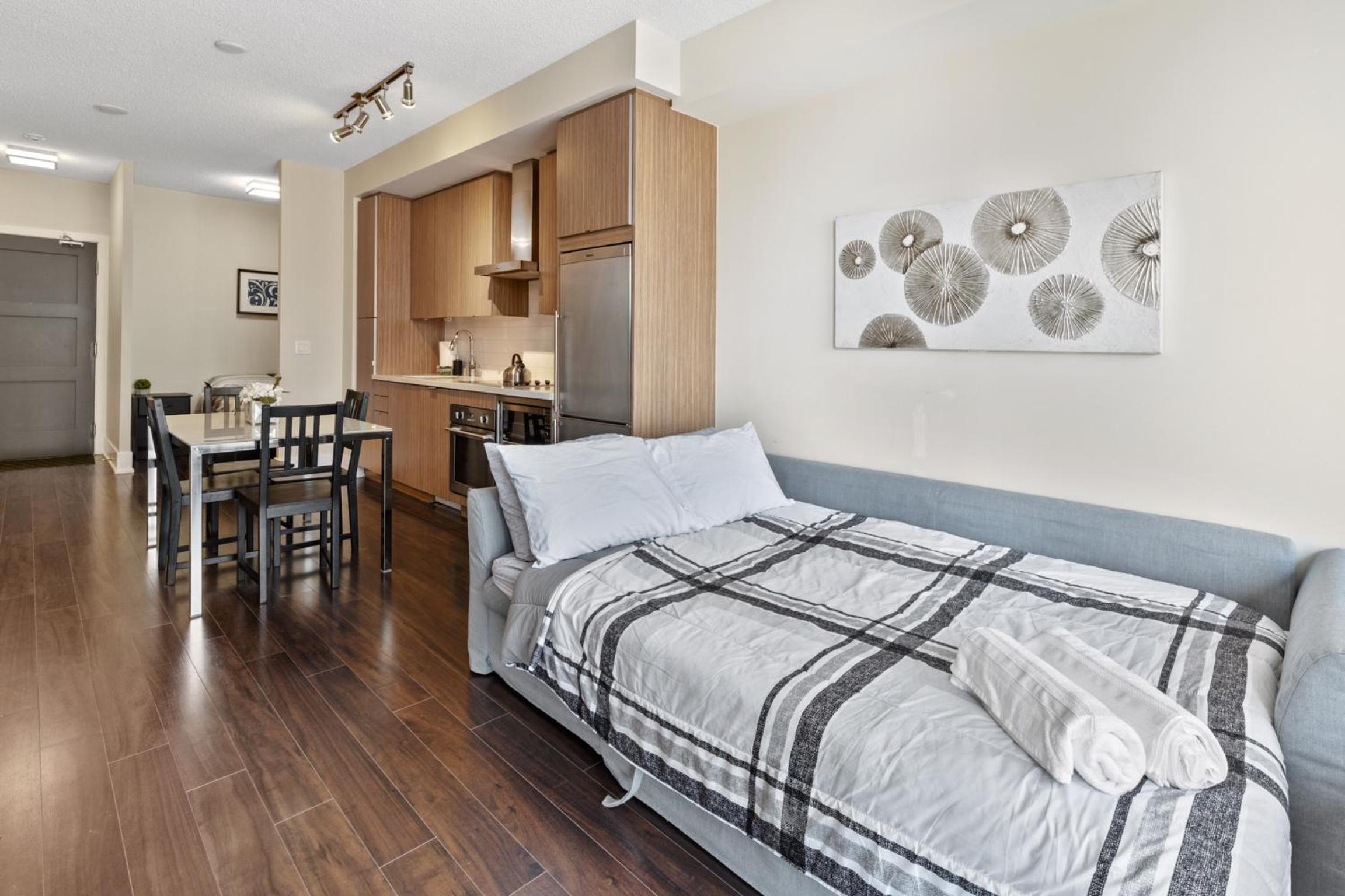Experience the best of Toronto at CN Tower Lake view 2 bedrooms DOWNTOWN- Free Parking. Indulge in a rooftop pool, spacious bedrooms, and a fully equipped kitchen. With free WiFi and convenient access to top attractions, your stay will be unforgettable. Book now for a memorable trip to the city.