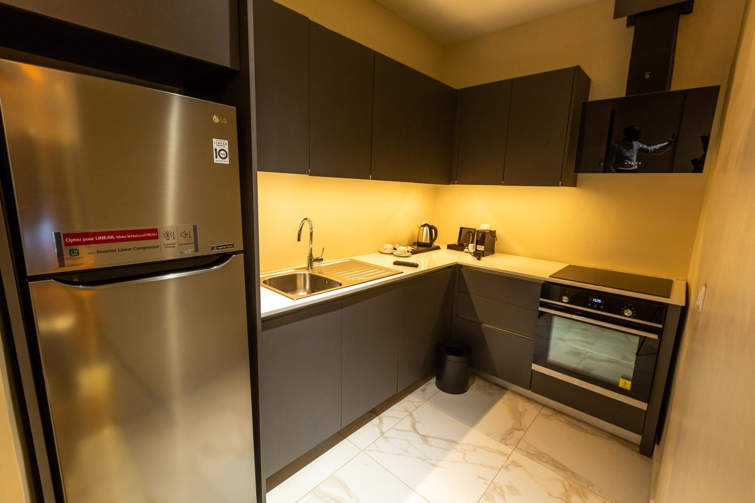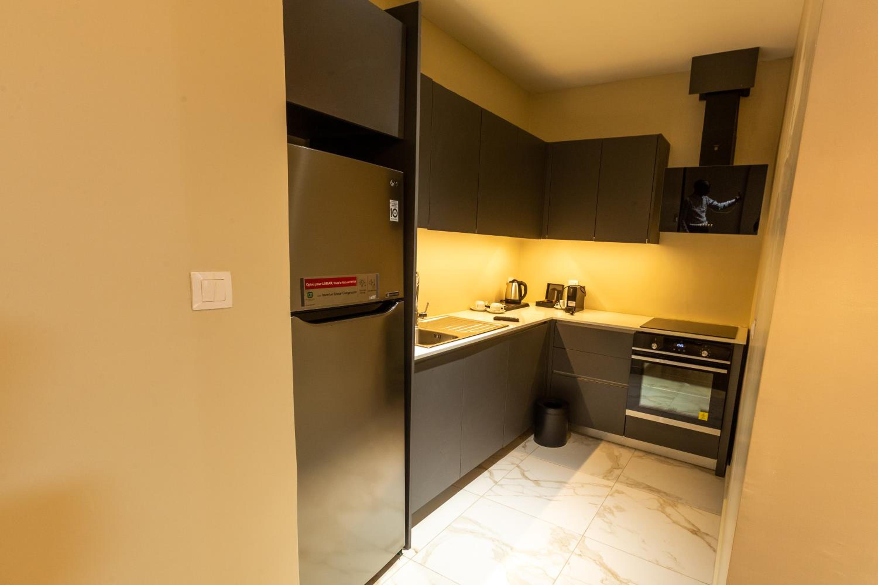 Pas de café dans la chambre et de tasse, pas d'équipement pour la cuisine.