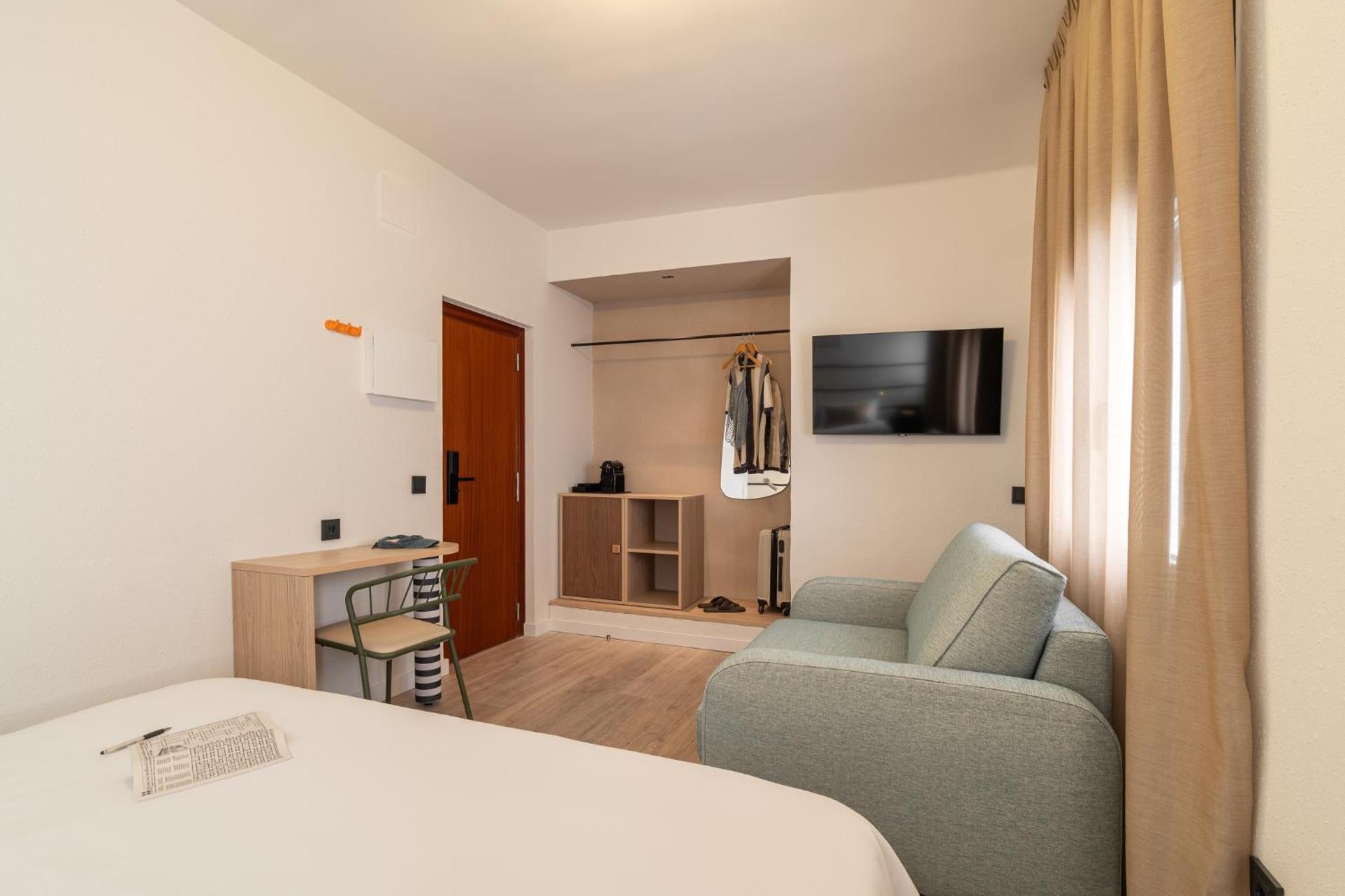 todo, absolutamente, en las fotos dicen que dan terraza/balcon, mentira, también pone desayuno incluido, también mentira, las toallas llenas de lefa de hombre, la habitación la daban a las 15.00 y nos la dieron a las 18.00 de la tarde. Llamamos por el ruido de los vecinos, osea otros residentes del hotel, y nadie hizo nada. 0% de seguridad. No lo recomiendo nada.