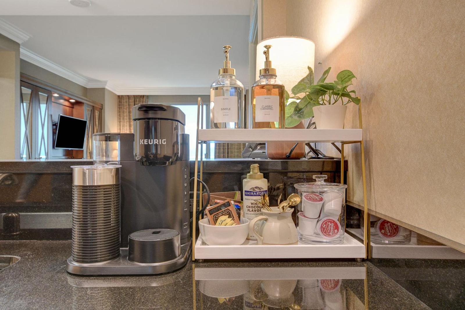 There was no hotel staff available to restock or answer questions about safe because it was a condo vs room. I dont really have anything bad to say- it was clean and comfortable def had space for 3!
