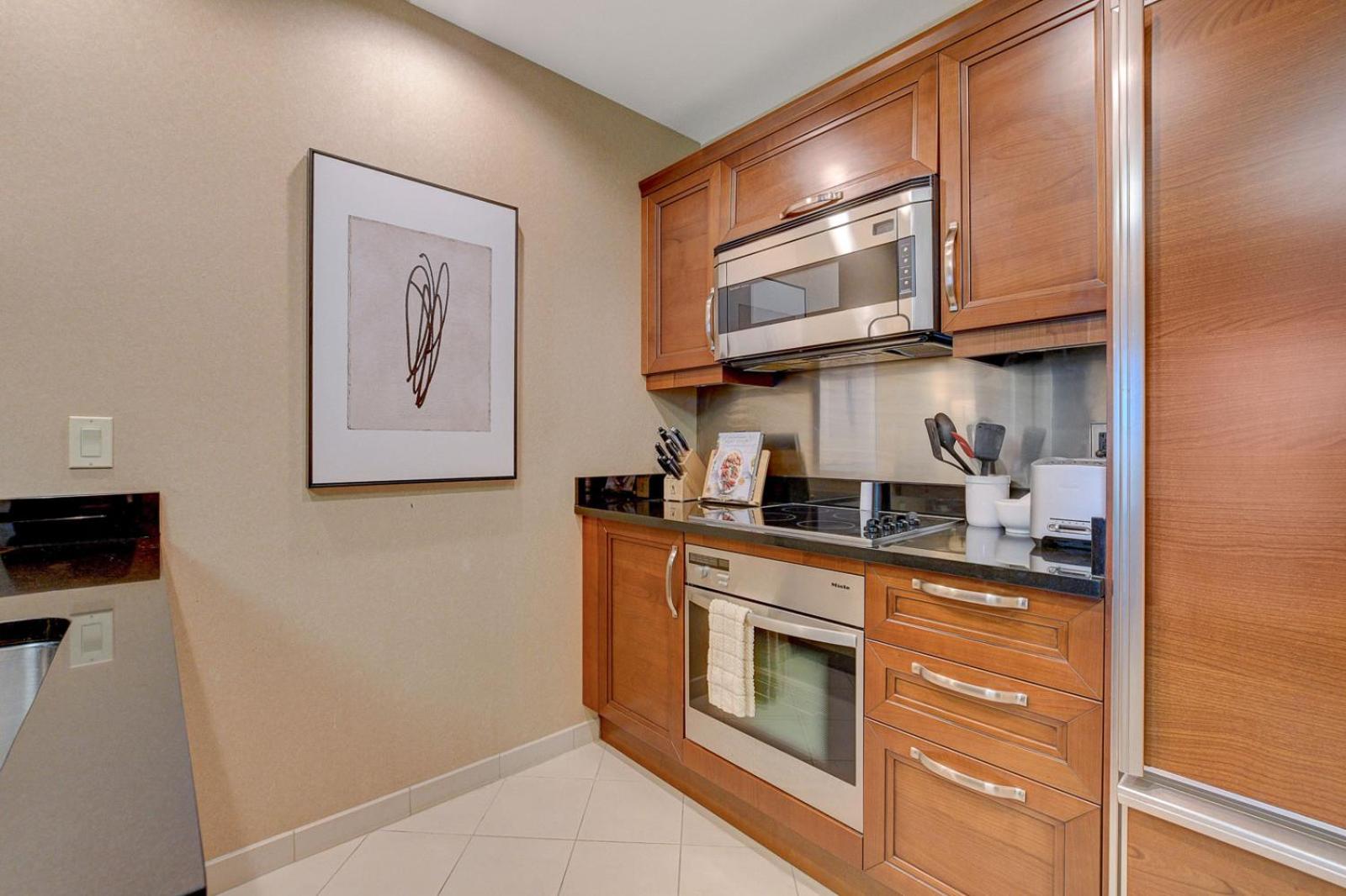 Luxurious Accommodation - MGM Signature Upgraded 1BD/2BTH SUITE w/BALCONY offers a spacious living room, fully equipped kitchen, and upscale amenities for a comfortable stay.