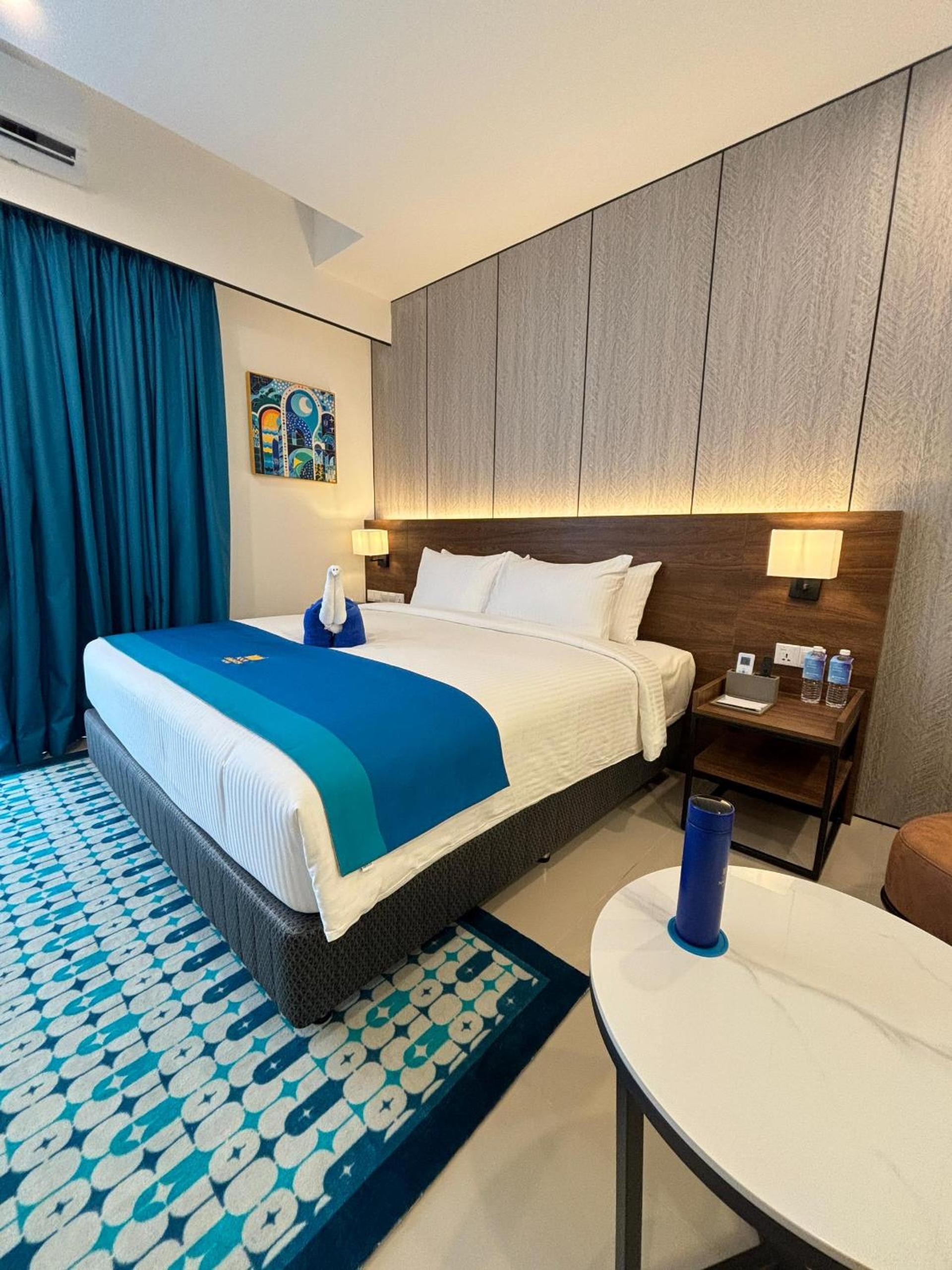 The room was very clean and spacious.I loved the blue color .The house keeping was amazing . The view was really good.There was a kettle and coffee and tea bags that wasn't not mentioned in the room description on Booking.