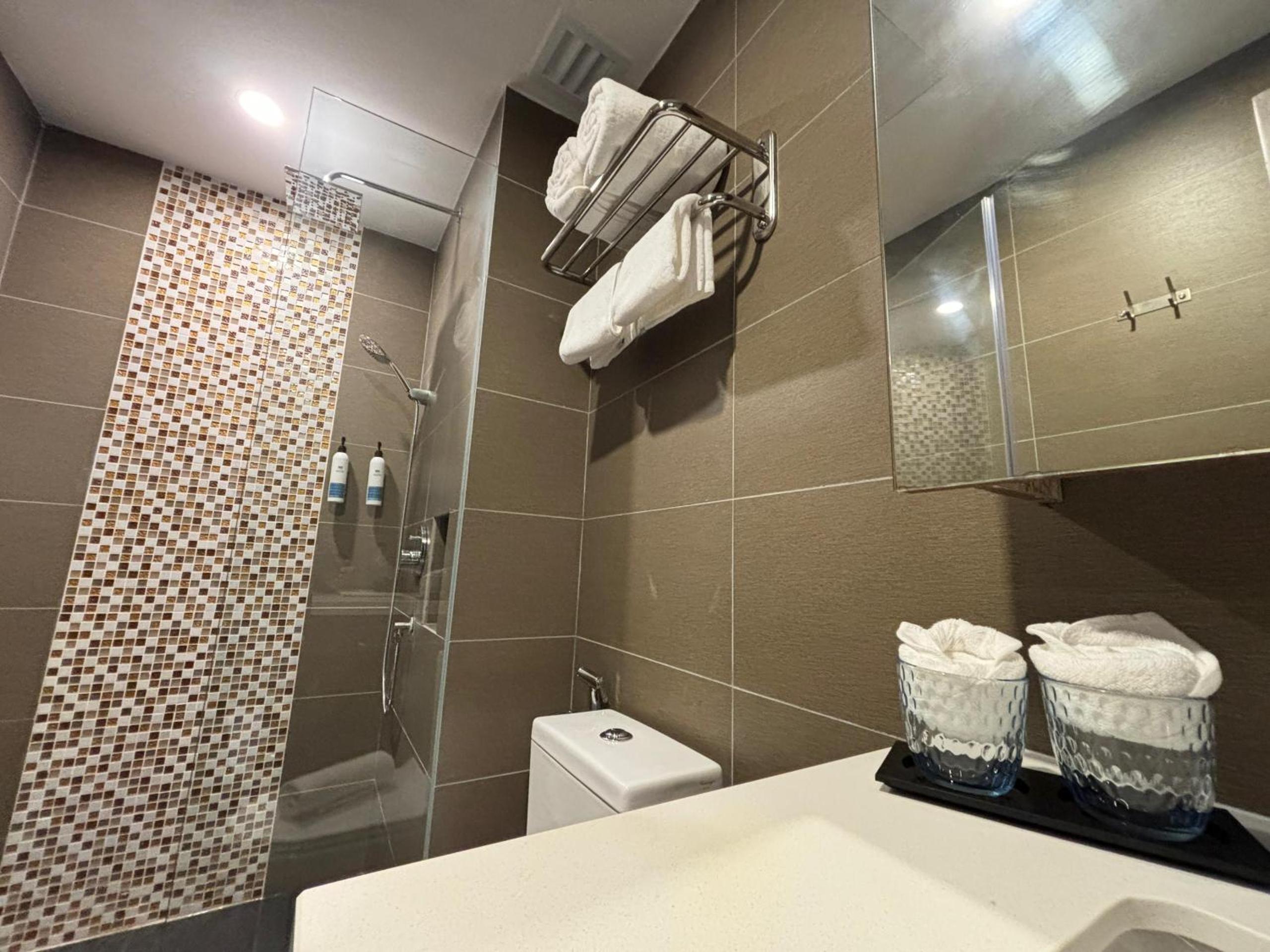 Master bedroom was leaking by the windows due to the fog..water temp would go up and down really dramatically, the water would get so hot that it is easily able to burn us of we are not careful! The place also has a very misty smell-not very nice. Also, when the heaters are on, if we close the master bedroom door or the madter bedroom bathroom door, it keeps moving as if someone is repeatedly knocking on it! Very annoying and frustrating. We stayed in a 3 bed executive apartment.