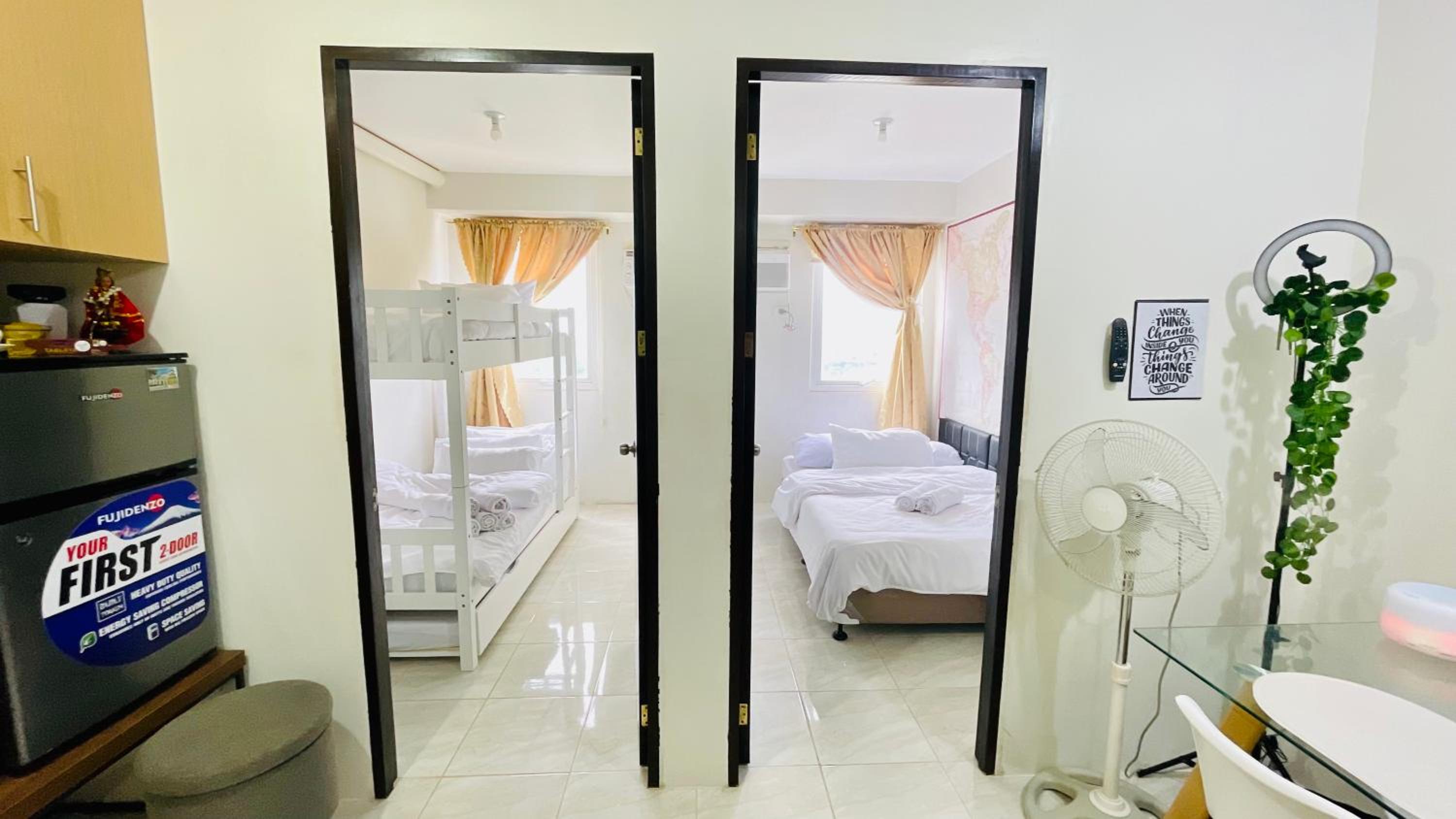 Indulge in a 5-star experience at MARIA CONDO 19th Floor Cebu High-Rise Views Room Rental Mandaue. Each room offers modern amenities and breathtaking city views for a truly unforgettable stay.