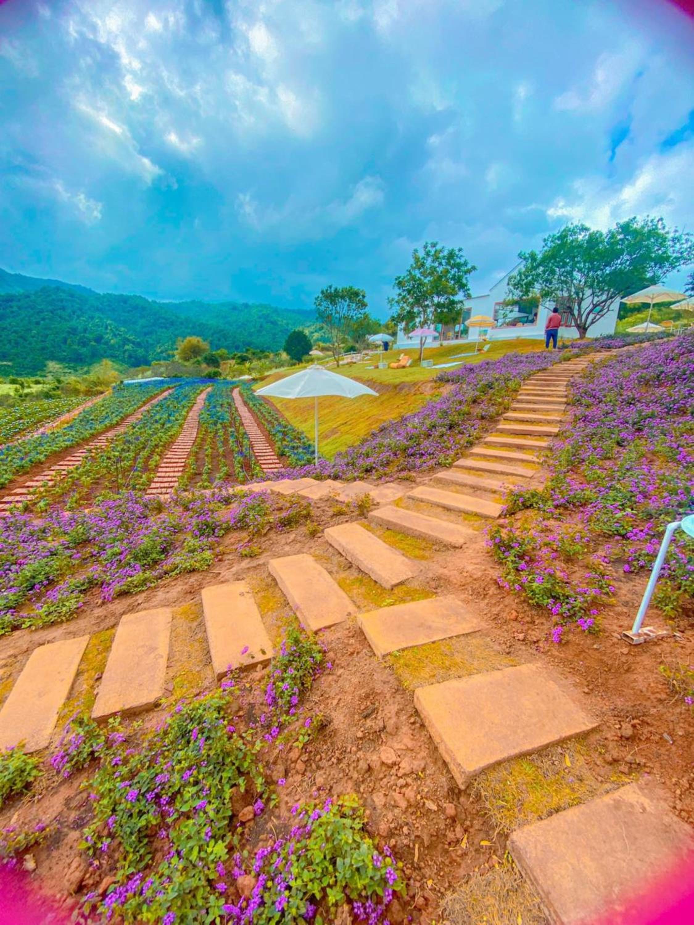 Được cái nằm giữa các đồi chè, lên thẳng đồi chè chơi