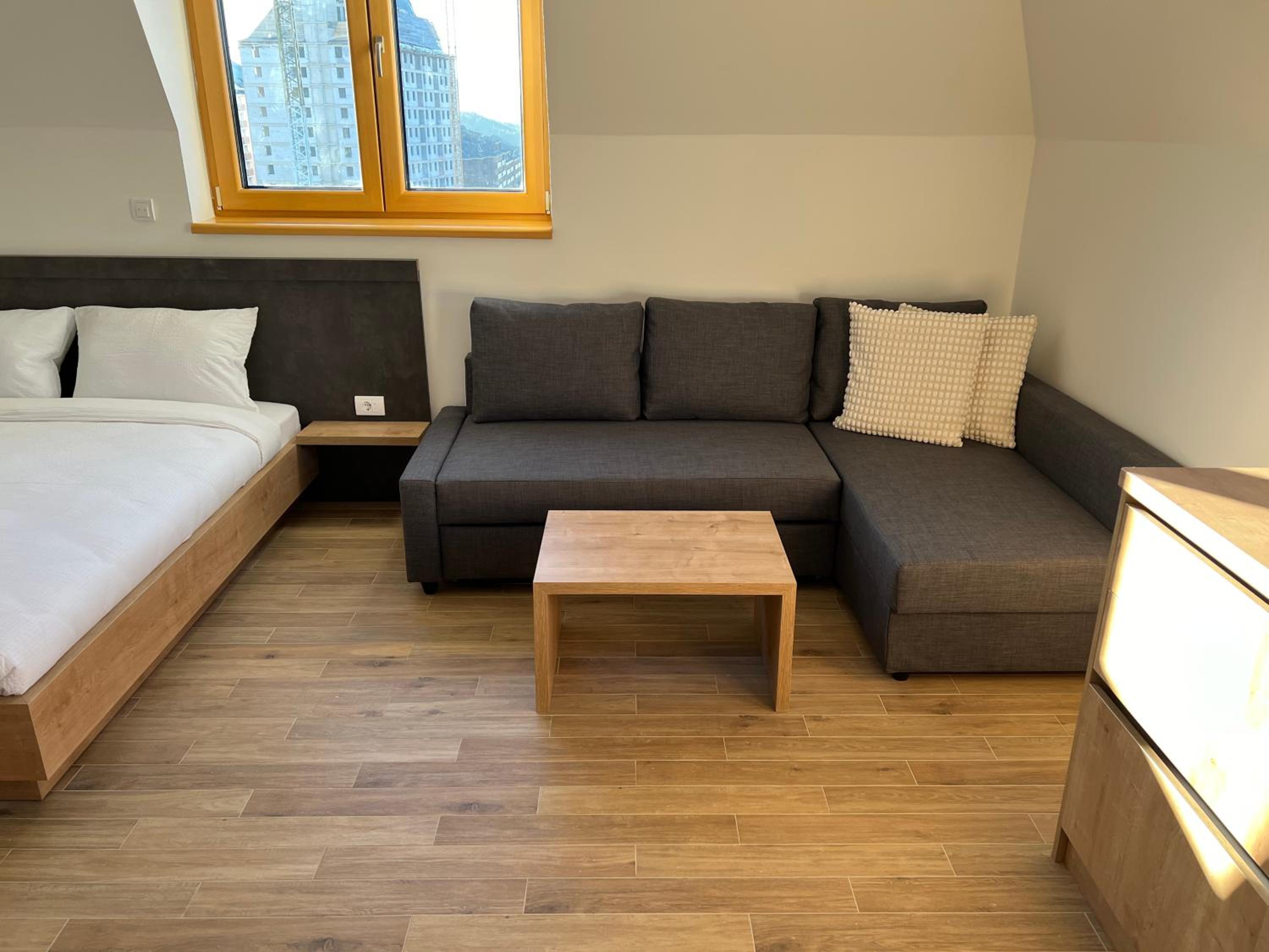 New, modern building in the heart of Zlatibor. Air-con and heating. Good wifi. High floor and blackout, electric window shutters make it quiet and easy to sleep. Good water pressure in the rain shower.