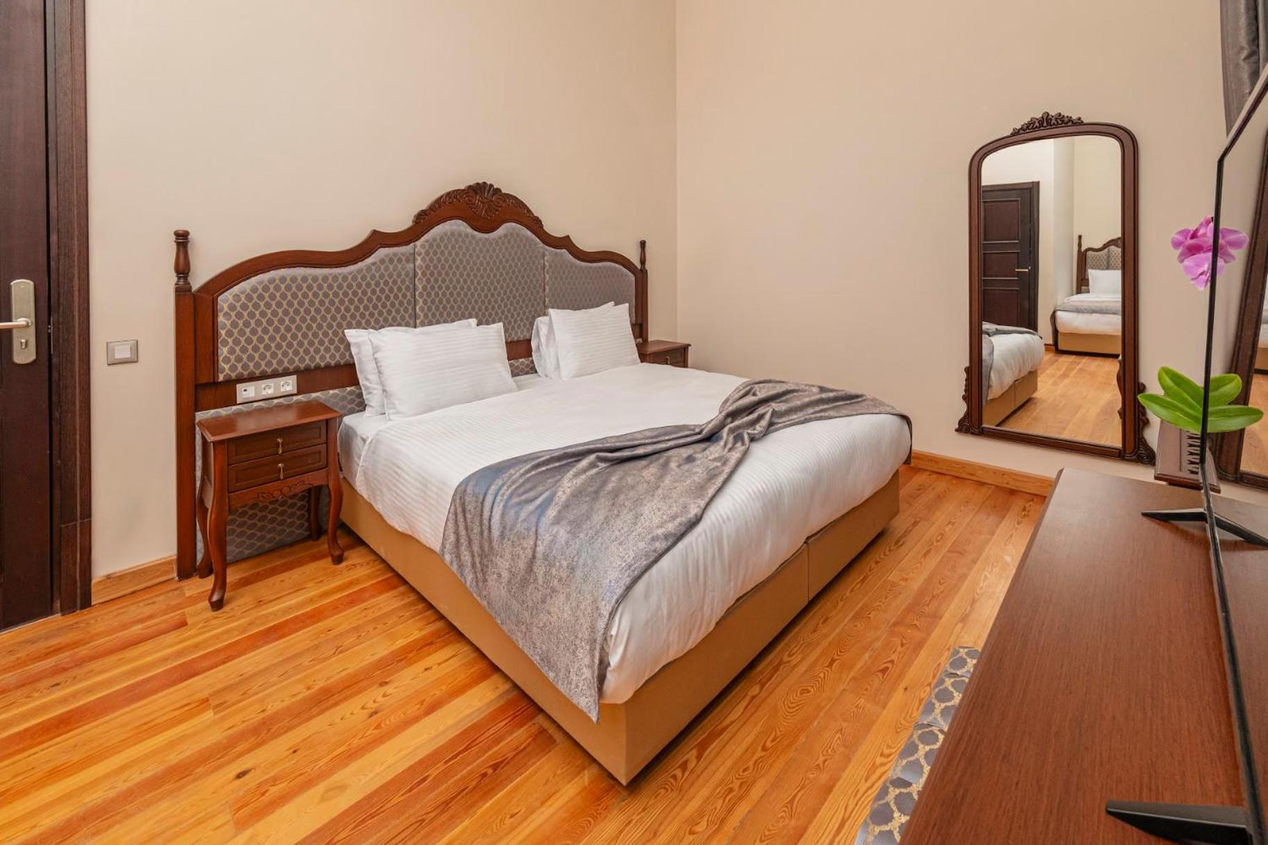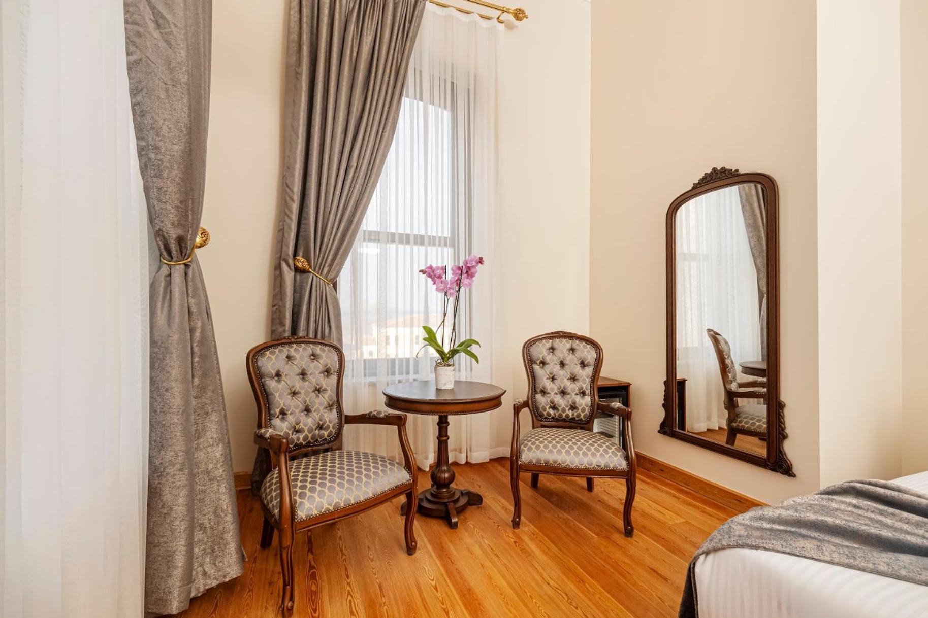 Очень вежливо и доброжелательно встретили на стойке ресепшен, поделились полезной информацией и комплементарно предоставили номер с видом на Босфор!!!! Номер очень чистый, белье чистое, новое! не было тапочек и зубных наборов. Но тапочки предоставили по запросу, зубные наборы не просили - были свои, возможно, тоже бы предоставили. Вода в номерах была, пополнялась ежедневно. Бокалов для вина в номере не было, принесли по запросу. Завтраки изначально при бронировании не оплачивали, так как во втрой день пребывания планировался ранний выезд в аэропорт. Поэтому приобрели на месте завтрак в первые сутки. Завтраки хорошие, яйца в разных вариантах, очень вкусные мезе, выпечка, кофе - фильтр-кофе. Единственное, как и читали в отзывах, прийти лучше пораньше, чтобы был удобный столик, как-то некоторые расположены на проходе… В целом отель оставил очень приятное впечатление: чисто, интерьер (бывшее здание банка, высокие потолки, двери, паркет в номере…!). А, да, и расположение нам очень понравилось! Вроде и прям в историческом центре, а улочка не такая шумная и грязная, как большинство. Рядом есть супермаркет. Если будем в Стамбуле снова - с удовольствием остановимся в этом отеле!