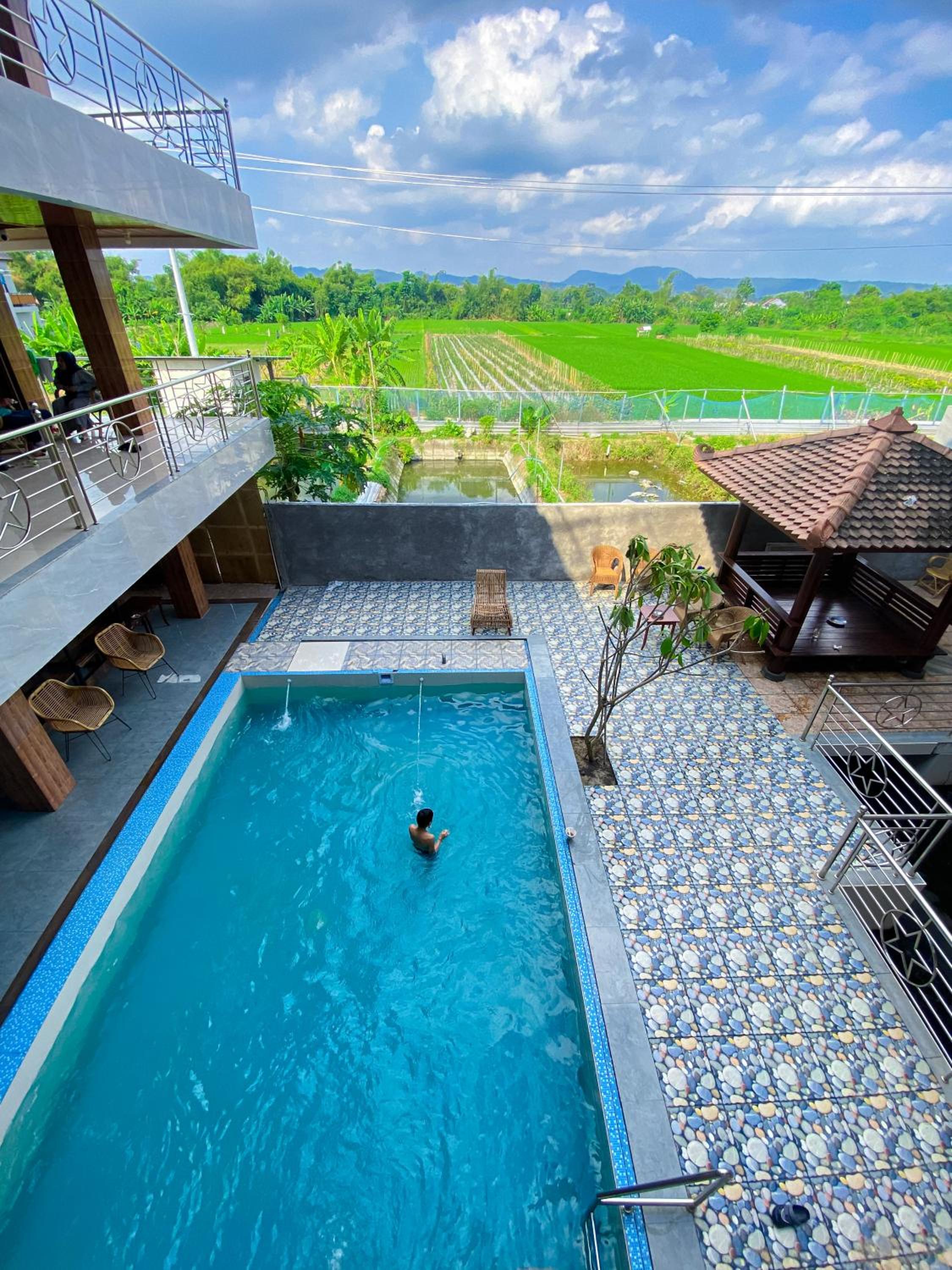 Enjoy a refreshing dip in the outdoor pool or relax in the serene garden terrace at Hotel Wijaya family 2.