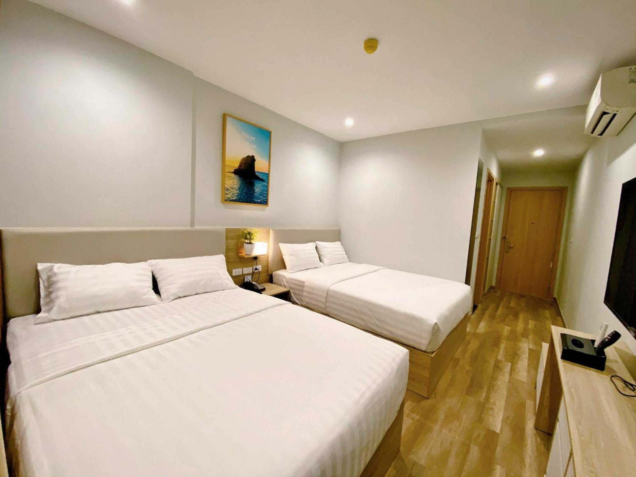 New hotel. Quiet and clean place. Walking distance to basic needs: Beach 5 minutes, Food Street 15 minutes. Supermarket 30 minutes. Pleasant staff.