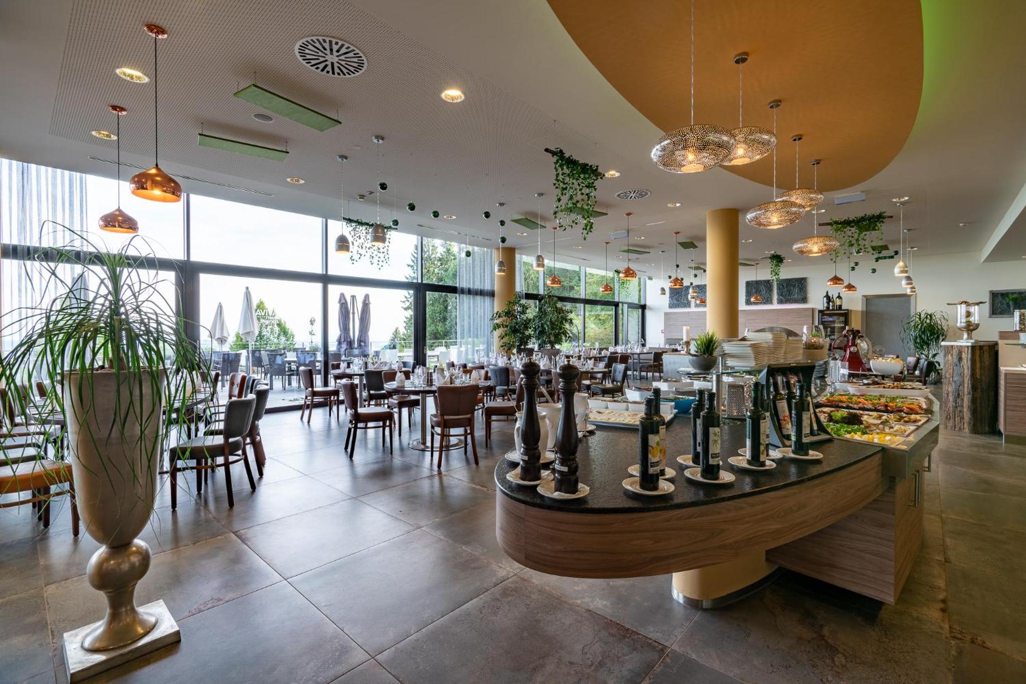 Indulge in a variety of dining options at the hotel, with a restaurant serving Italian, Mediterranean, and Austrian cuisine. Whether you prefer buffet breakfasts, vegetarian, or vegan dishes, there's something to satisfy every palate.