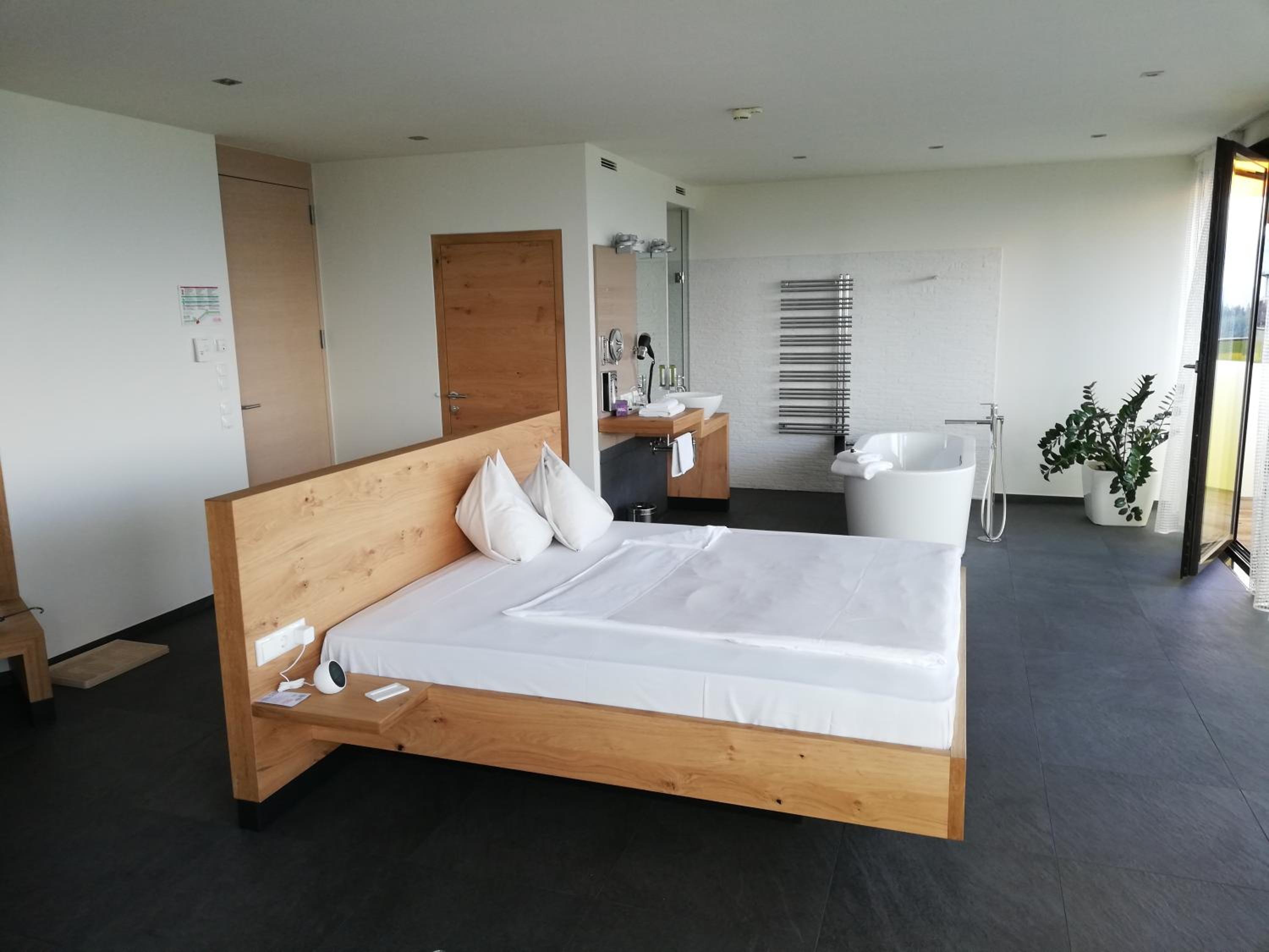 nicht so gut: keine Hausschuhe vor Ort - nur gegen Bezahlung; kleine Zahnpasta auch nur gegen 3€; liegt normal im Badezimmer auf;
