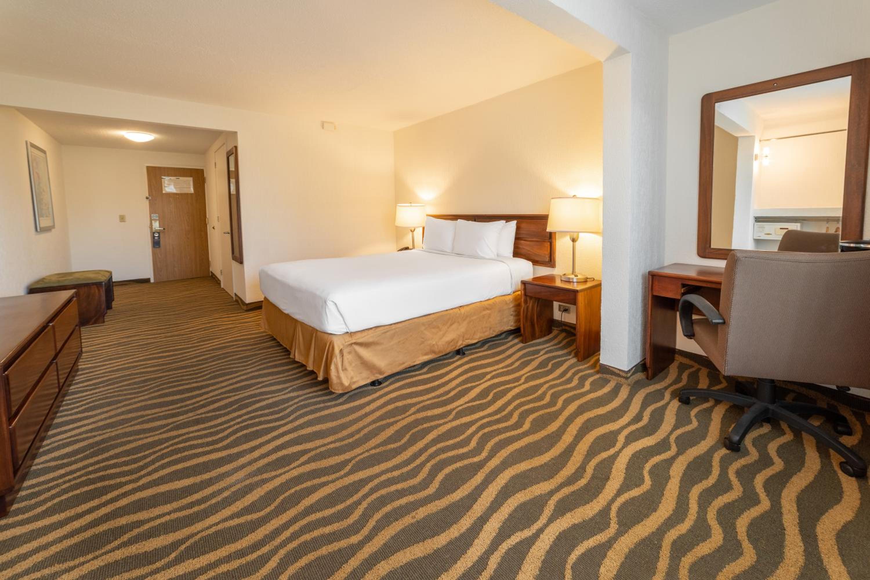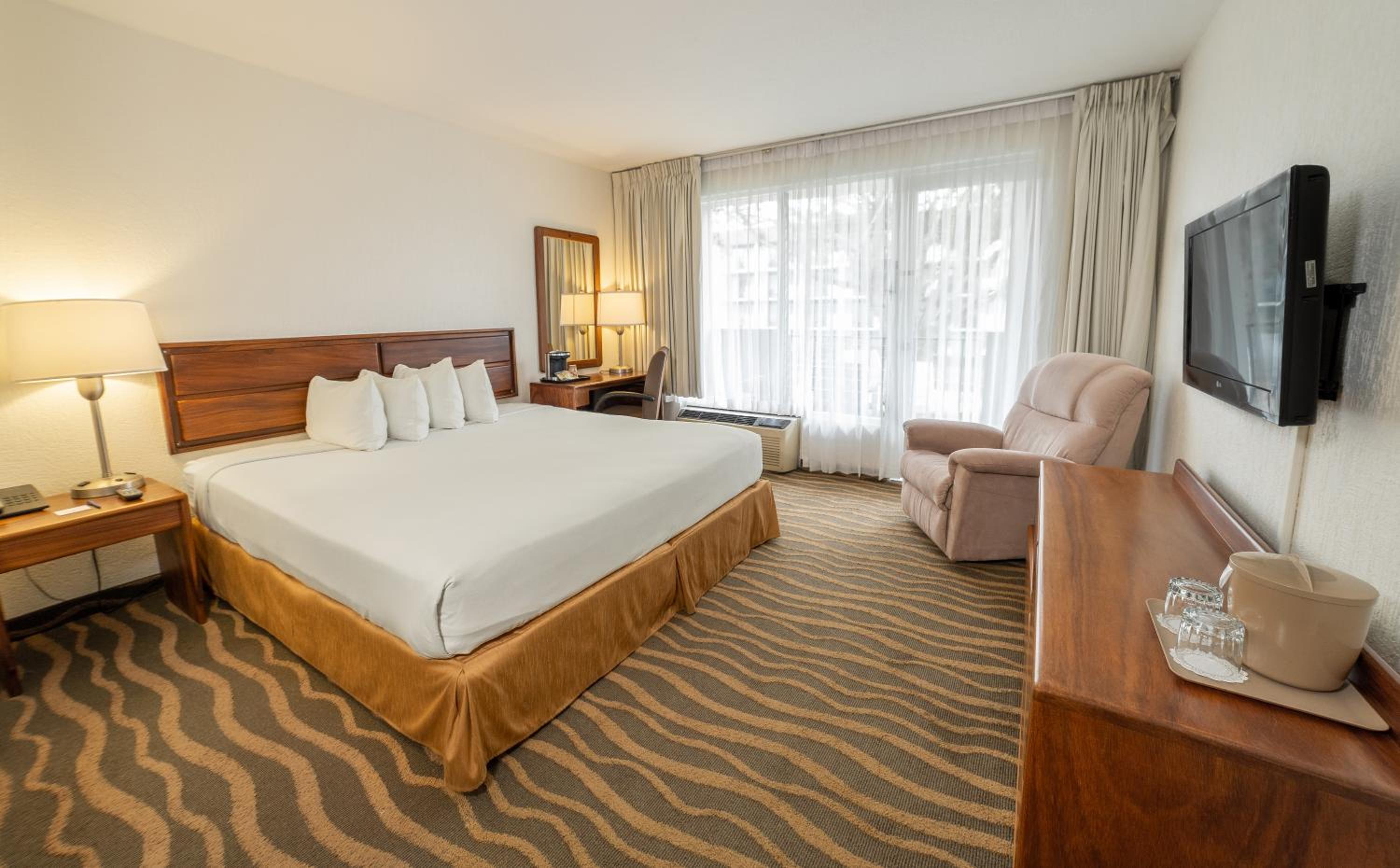 The elegantly decorated rooms feature modern amenities such as air-conditioning, cable TV, and free Wi-Fi, ensuring a comfortable stay for guests. The on-site 24-hour Denny’s Restaurant and Sangria Tapas Bar provide convenient dining options.
