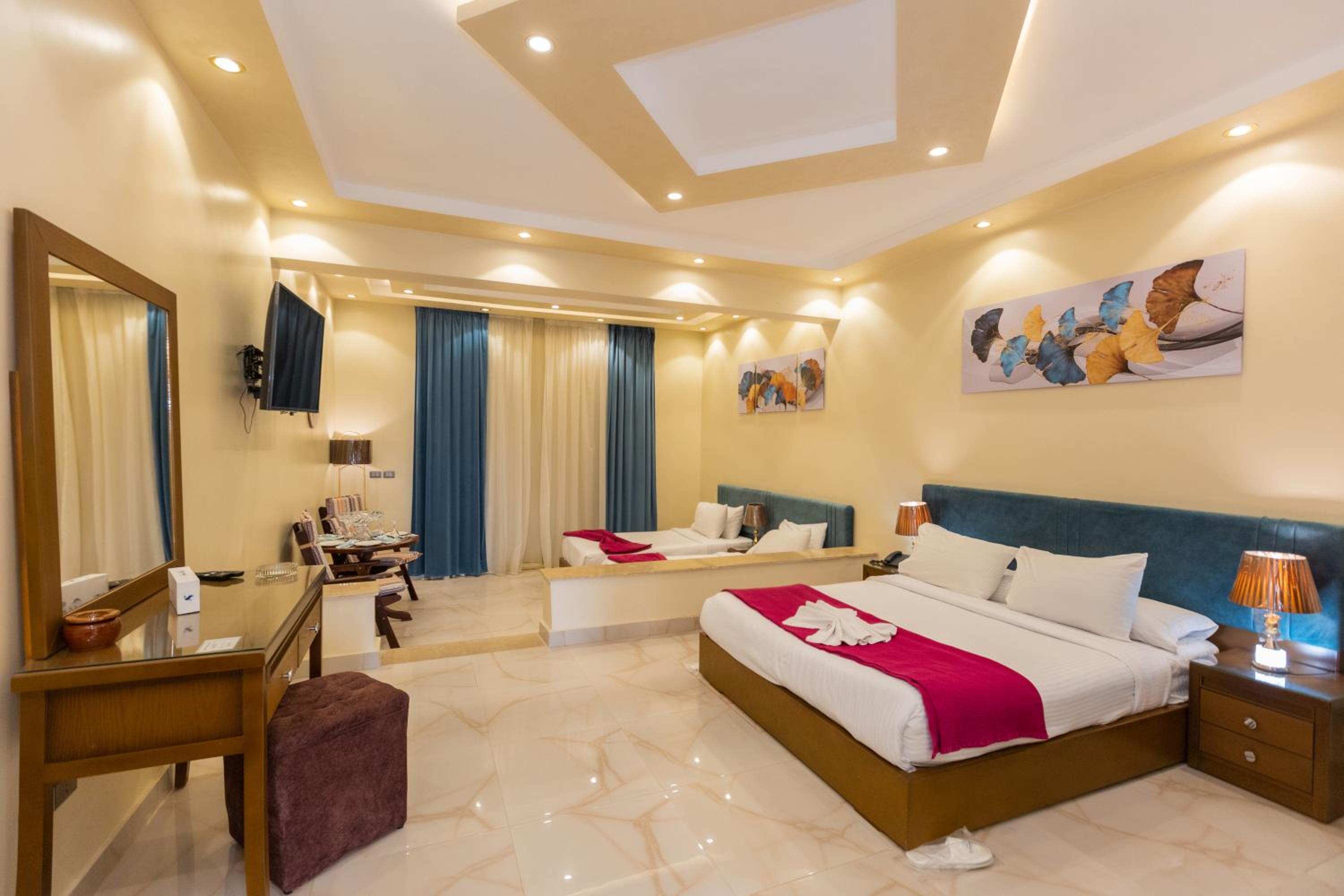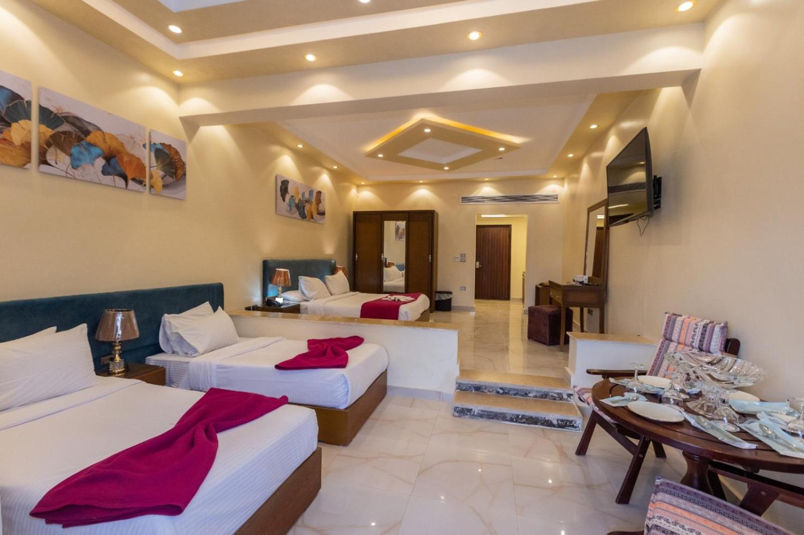 المكان جميل ورائع ويعتبر كأنه كامبوند متكامل الخدمات حيث توجد مساحات خضراء واسعة ومناطق مخصصة للرياضة والتنزه النظافة ممتازة جدًا كما أن العاملين في المكان متعاونون ولطفاء أخذت استديو خارجي مطل على المسبح وكانت الإطلالة جميلة والمساحة مناسبة مما جعل الإقامة مريحة وممتعة
