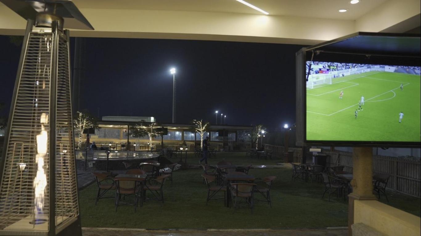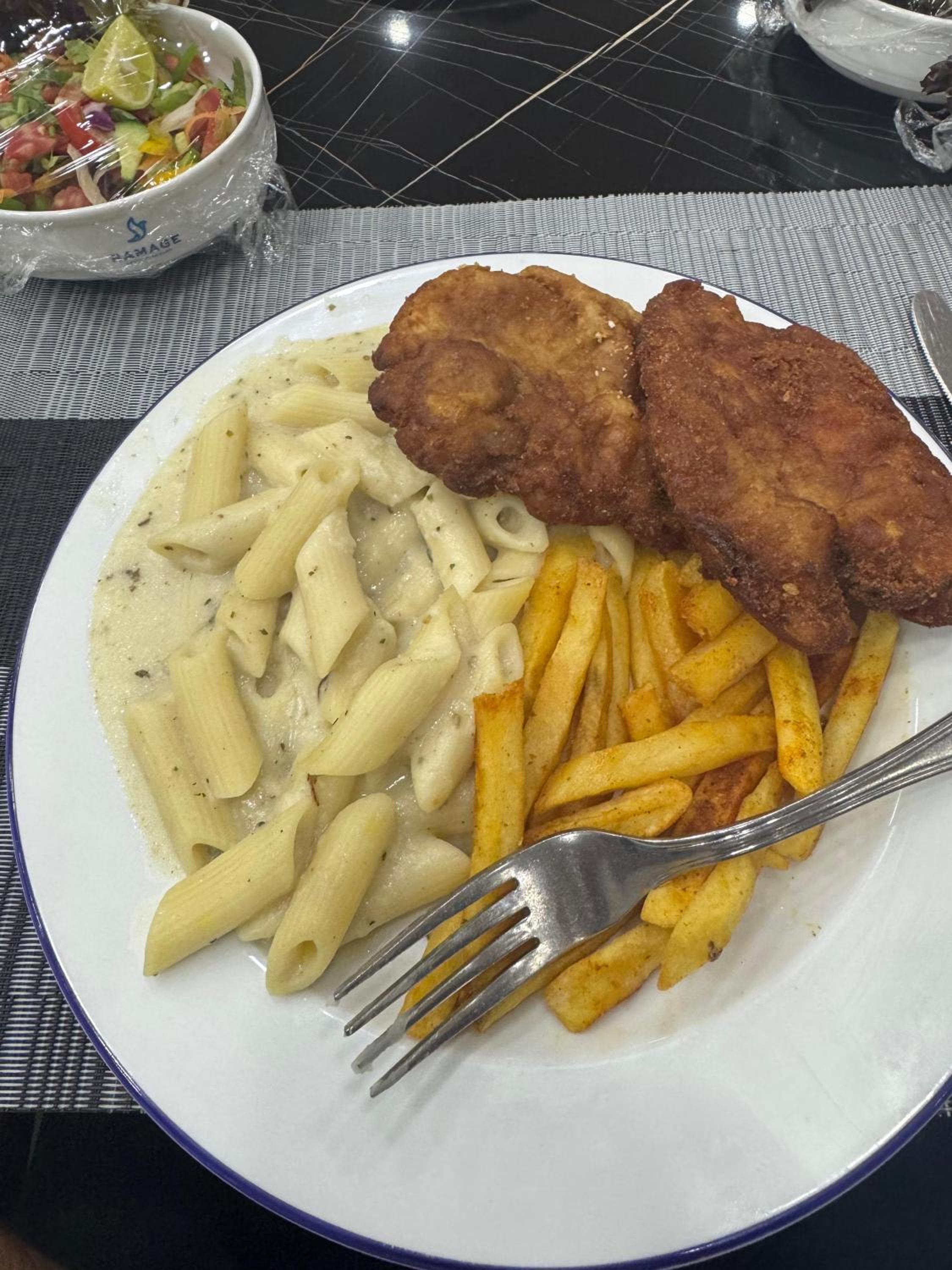 Dem har en restaurang där men menyn var på arabiska, frågade om dem kunde översätta menyn till engelska och dem sa okej men fick aldrig något så jag strunta i det.