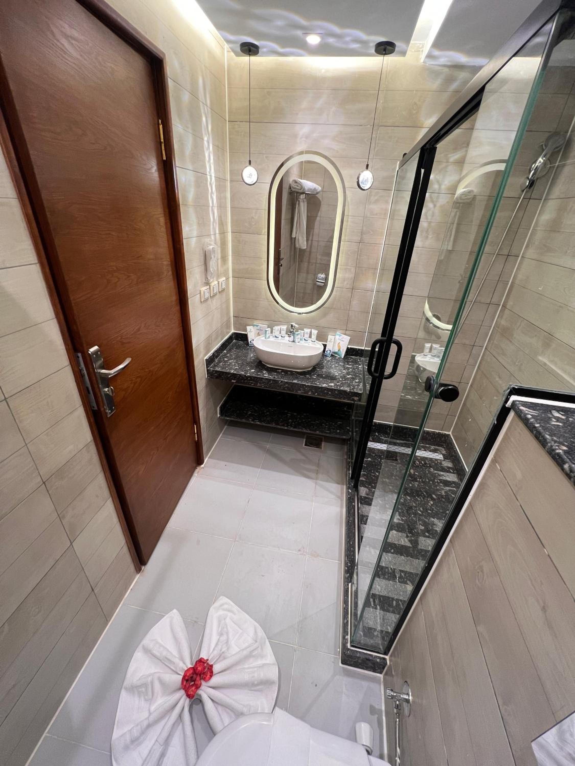 الملاحظة الوحيدة أن الحمام لم يكن يحتوي على شطاف وكما هو معروف فنحن كمسلمين نهتم كثيرًا بموضوع النظافة لذلك أتمنى توفيره مستقبلاً