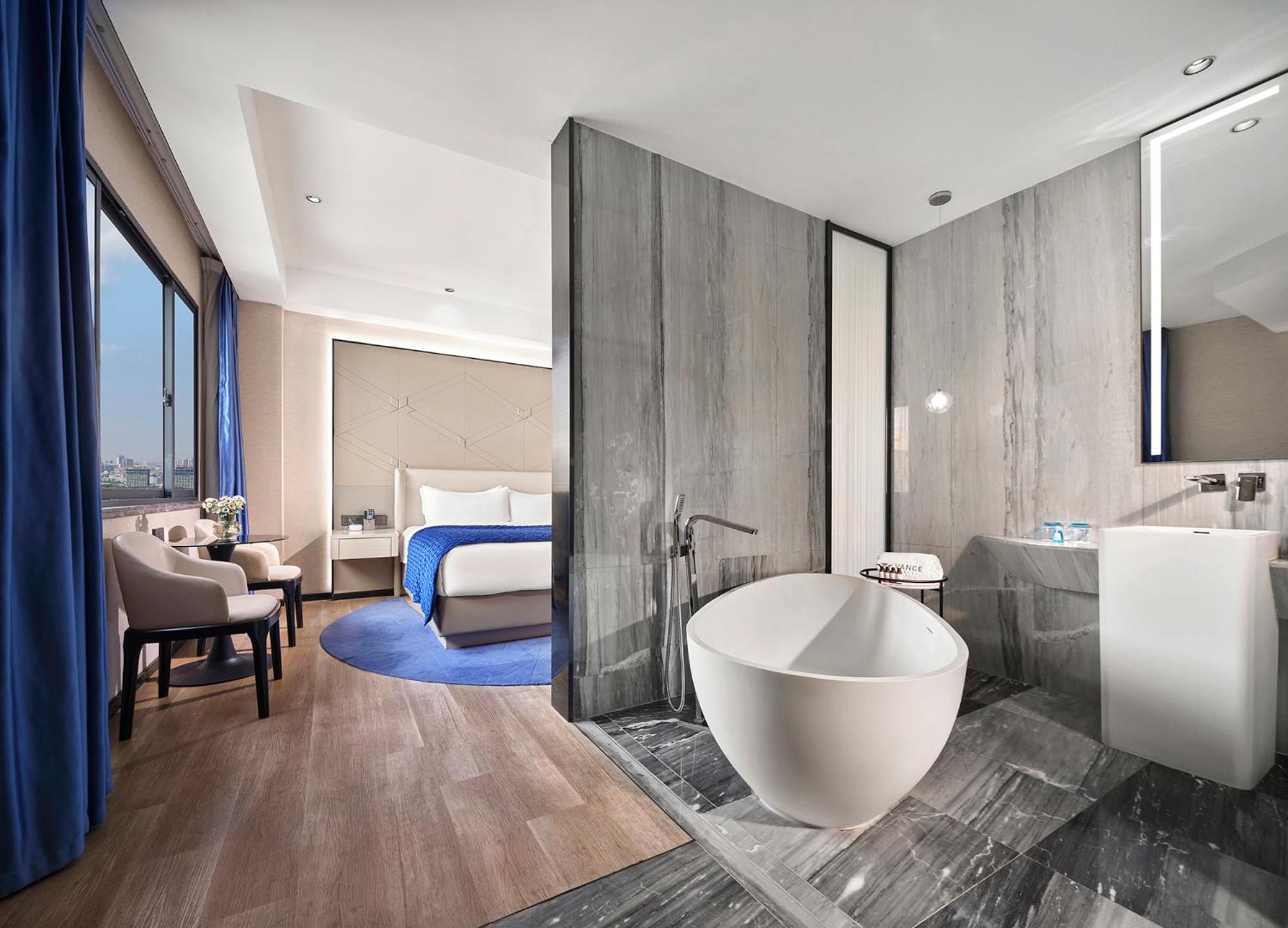 Vance Hotel - Taizhou offers a luxurious stay just 1.2 km from Taizhou Ocean World. The air-conditioned rooms are equipped with modern amenities like a coffee machine, minibar, and flat-screen TV.