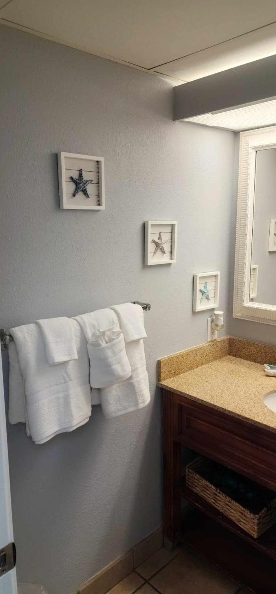 The suite was nice and clean. The kitchen was very well equipped with cookware, utensils, and dishes. There was even beach toys for the kids to borrow and beach chairs. There was plenty of towels for a family of six. The beachfront view was spectacular and the pool facilities were exceptional and very family friendly. My children made a few friends. It was ain all a happy family trip thanks to Kelly and Nick!!
