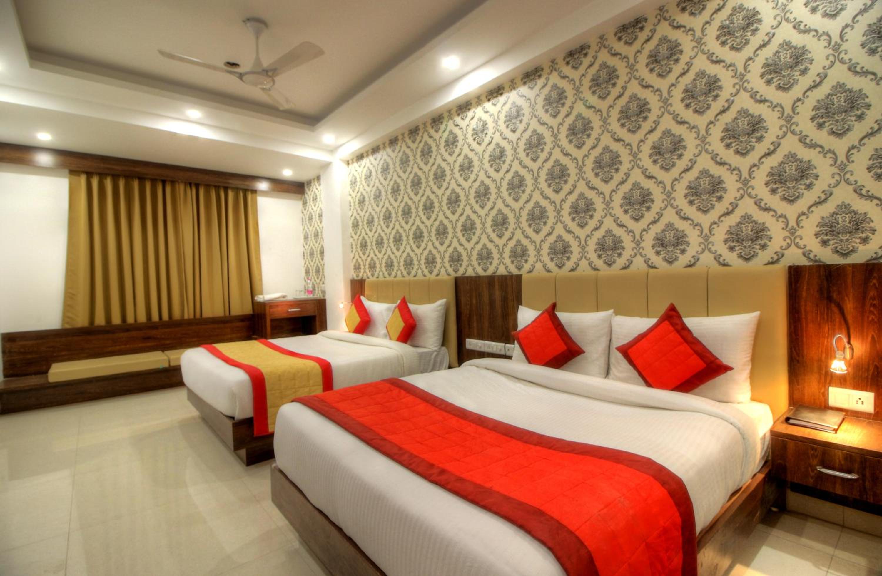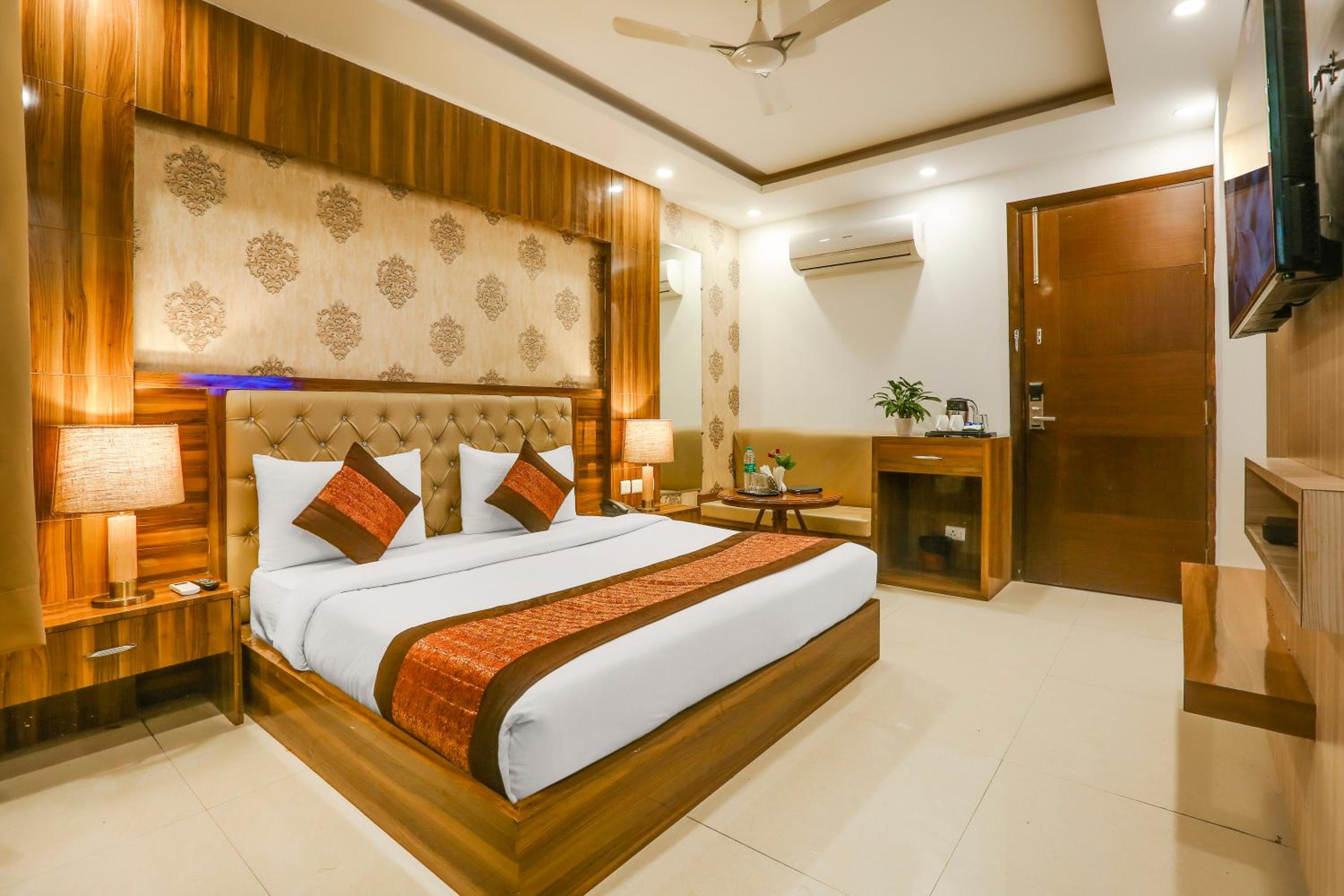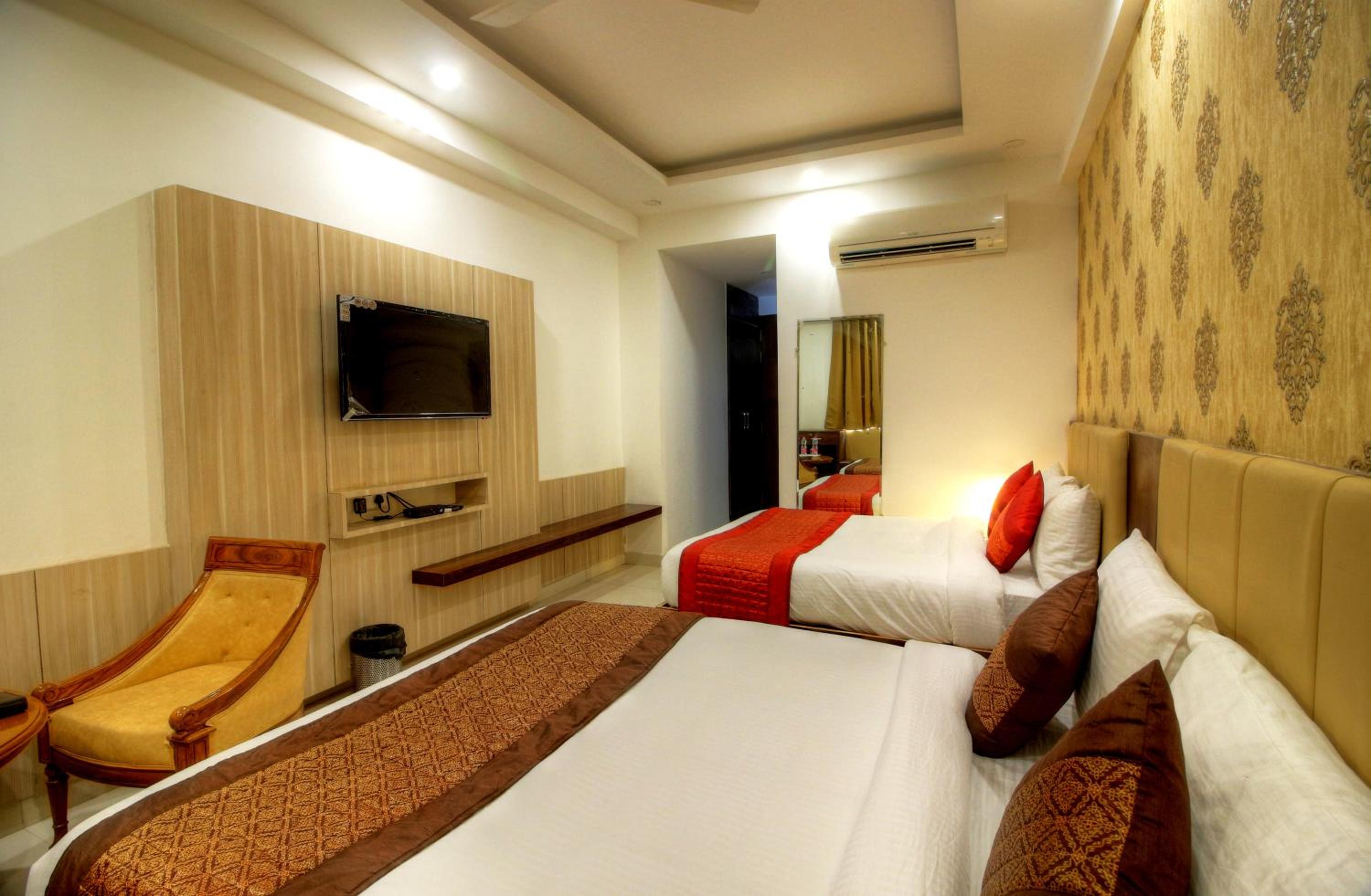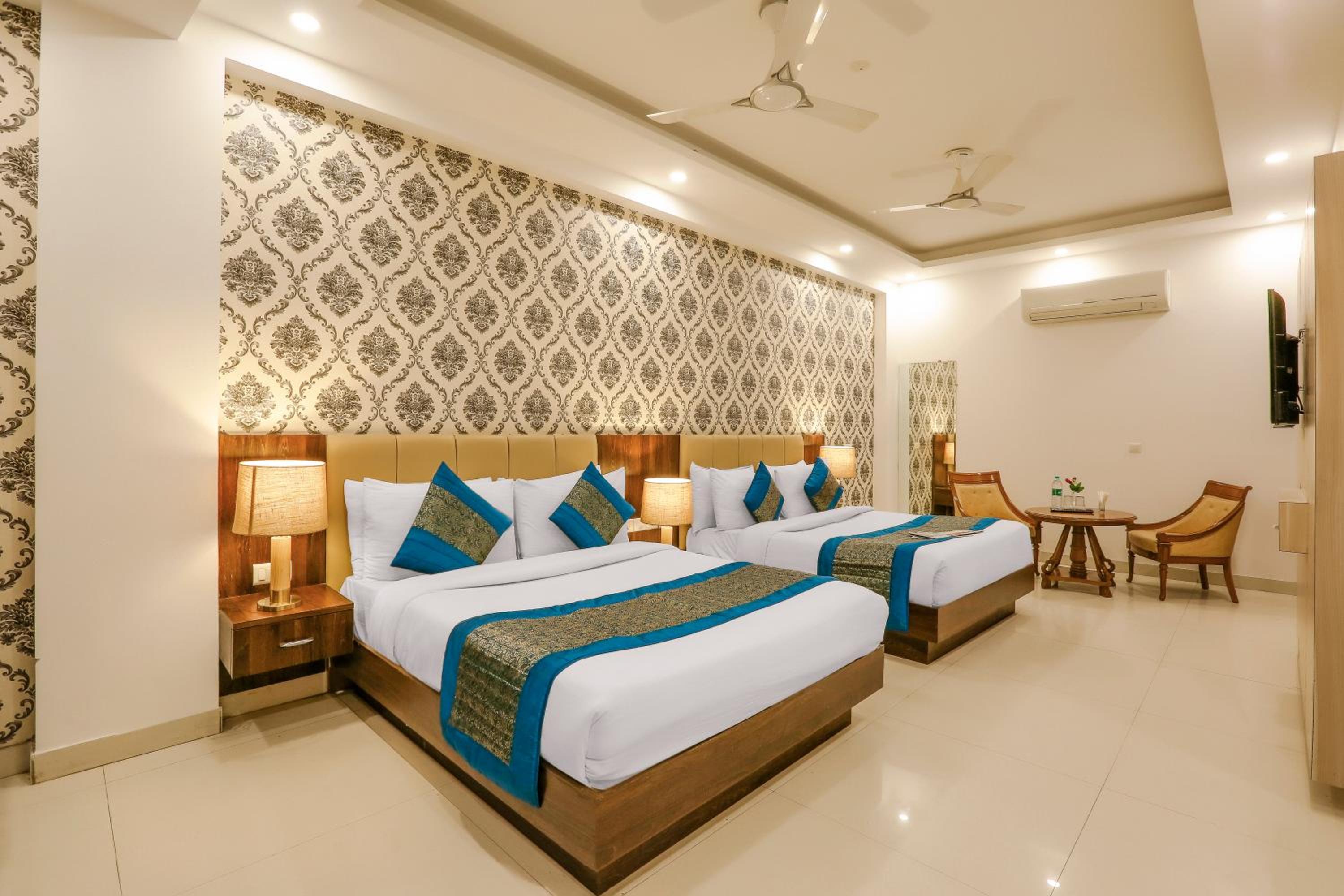 Luxurious Accommodation: Escape to Hotel Almati Inn at Delhi Airport, a 4-star property offering elegant rooms with modern amenities such as air conditioning, flat-screen TVs, and private bathrooms.