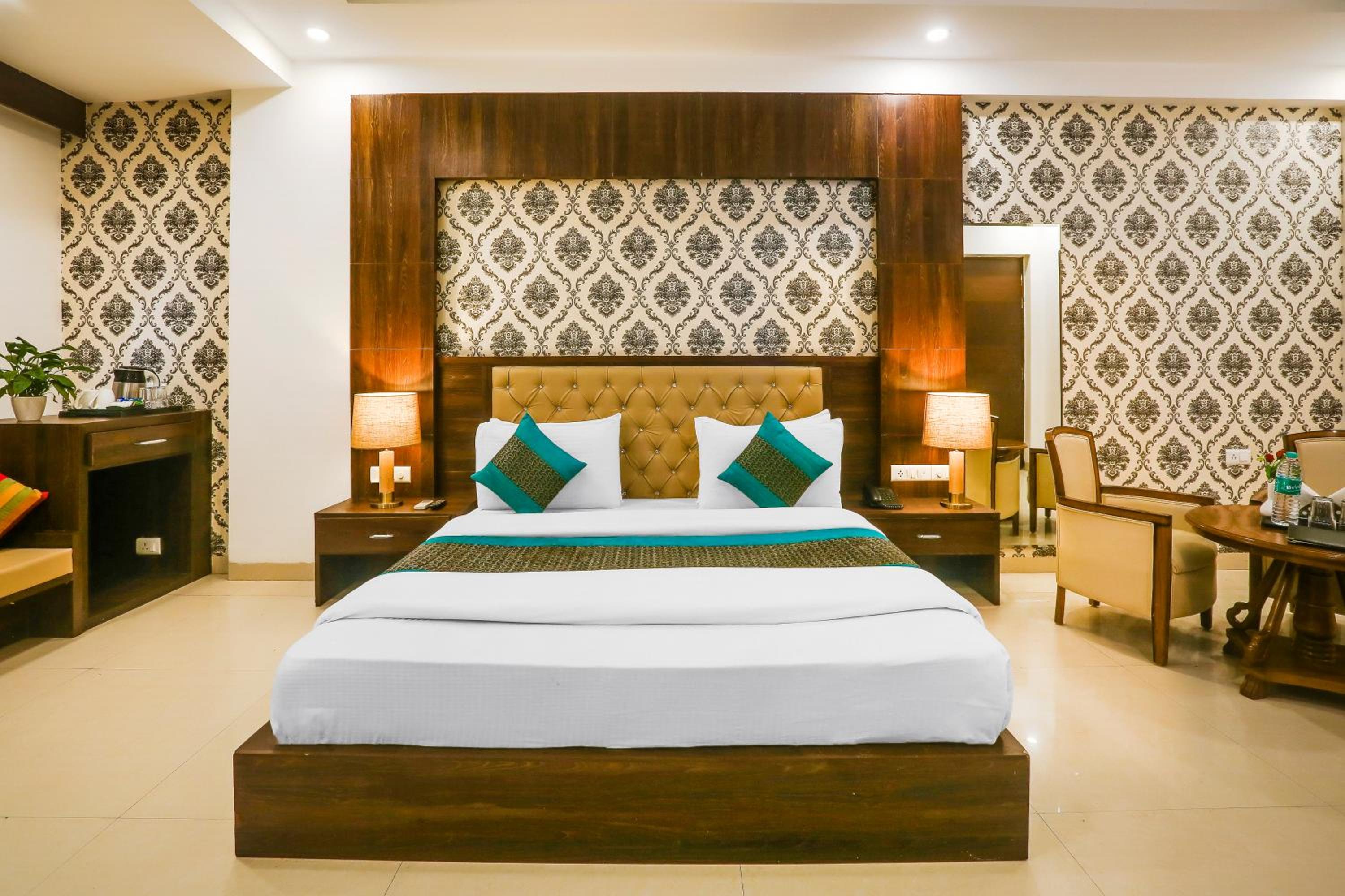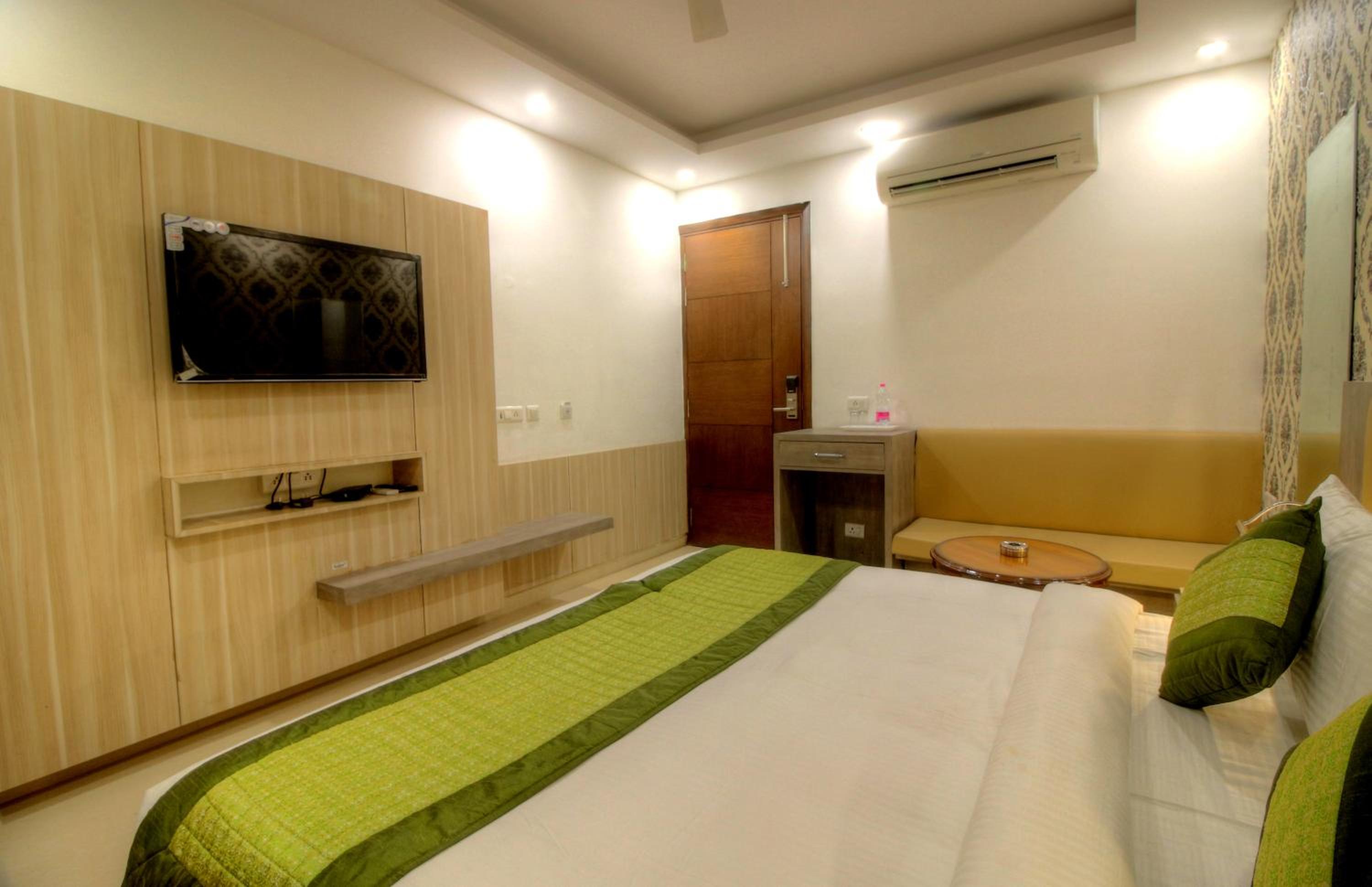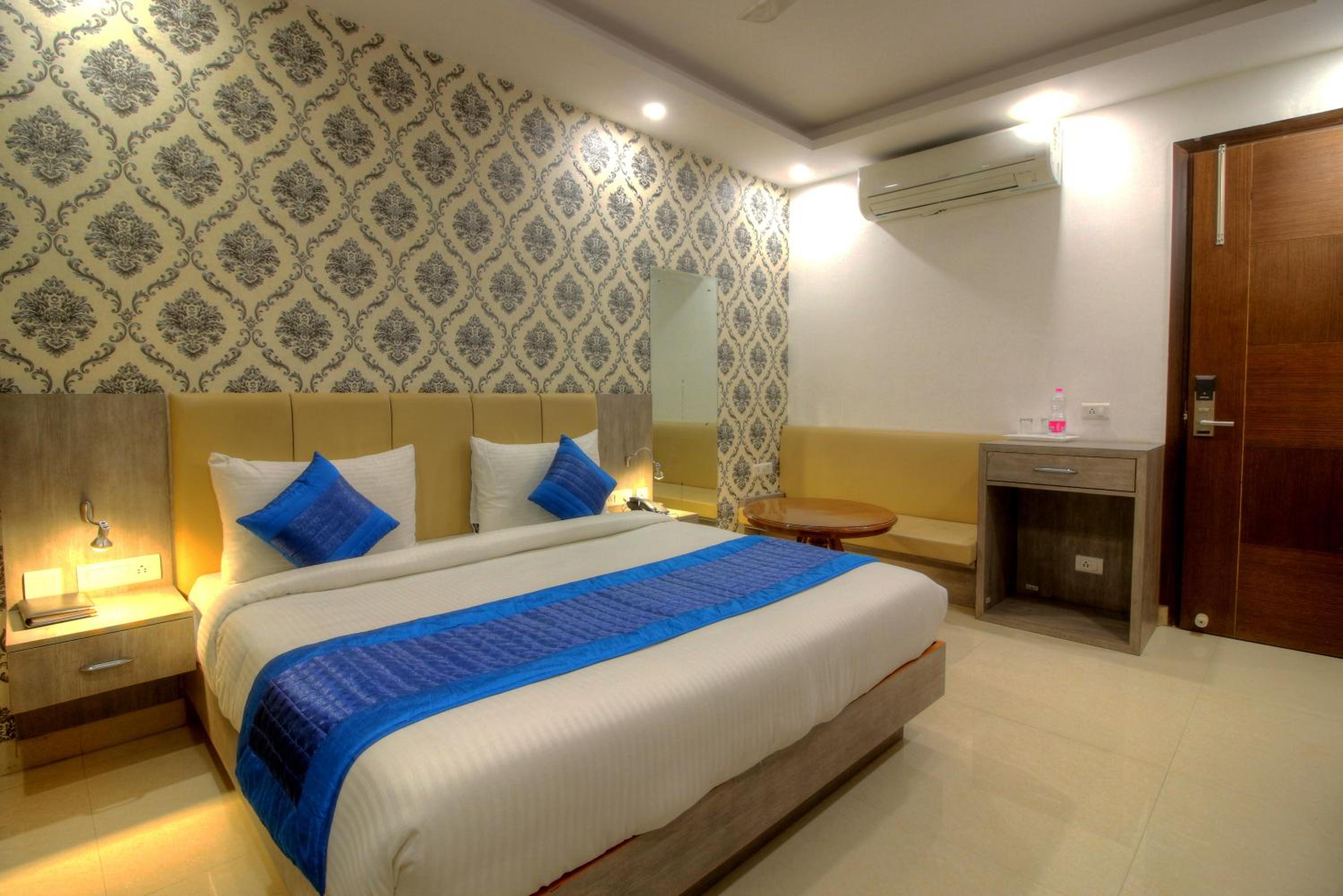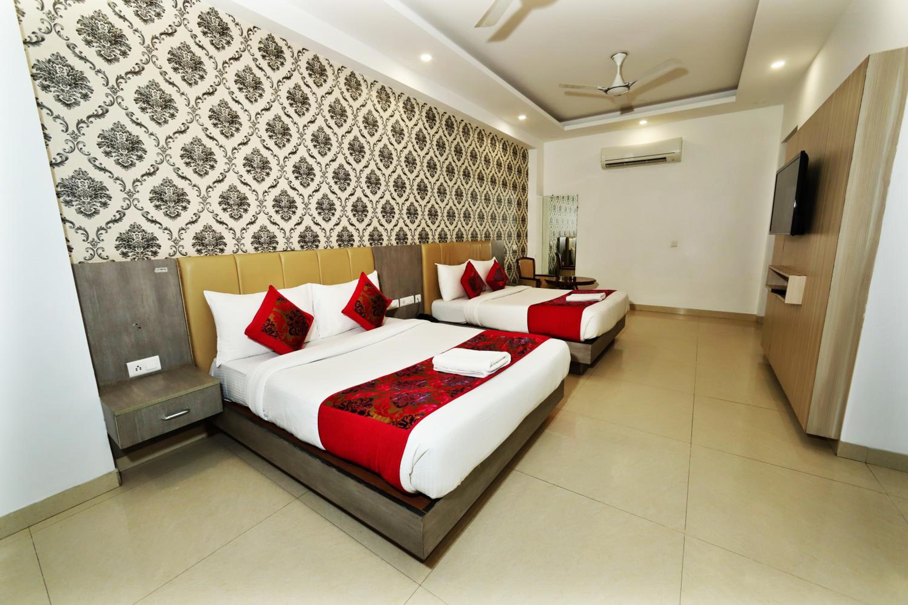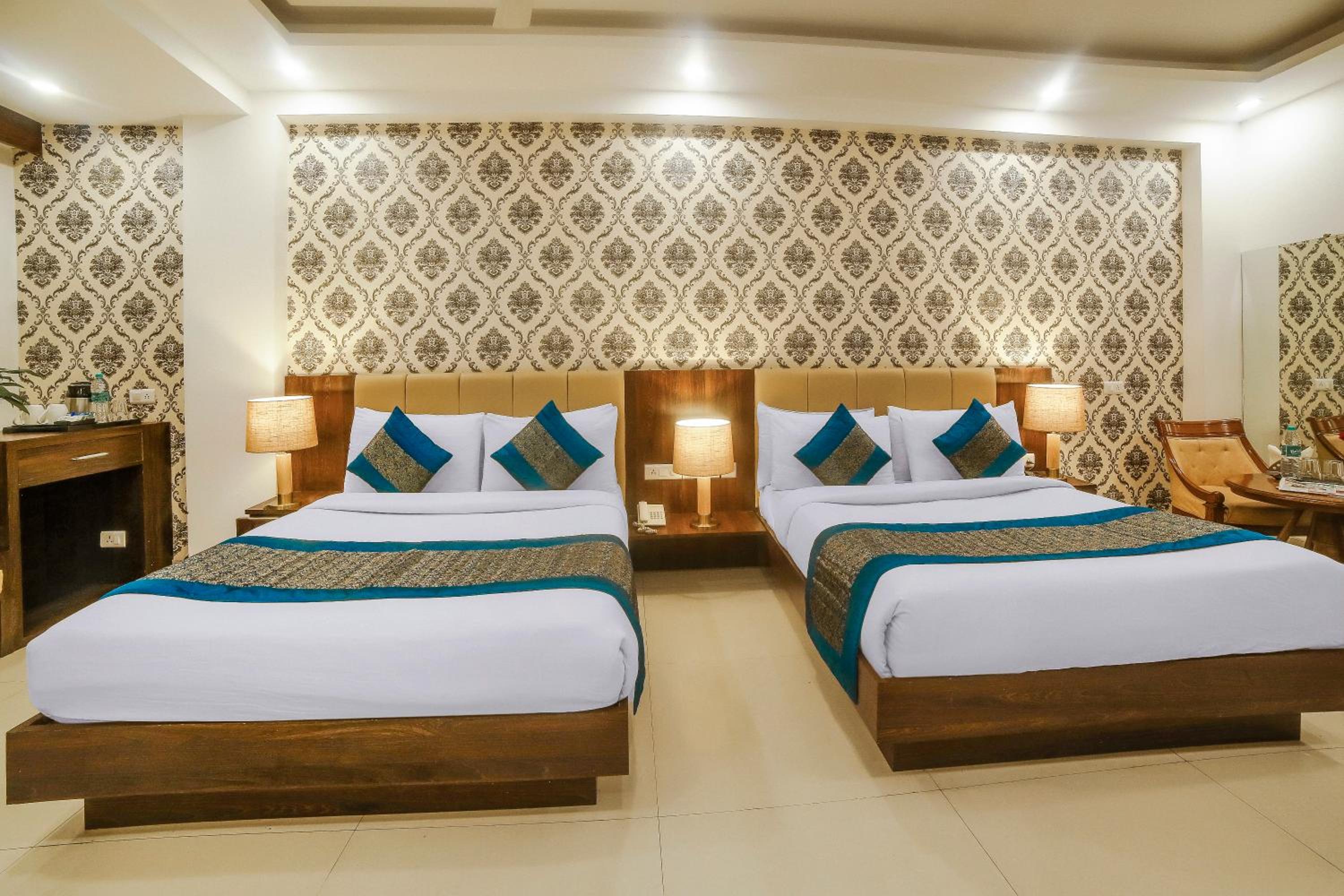 Luxurious Accommodation: Escape to Hotel Almati Inn at Delhi Airport, a 4-star property offering elegant rooms with modern amenities such as air conditioning, flat-screen TVs, and private bathrooms.