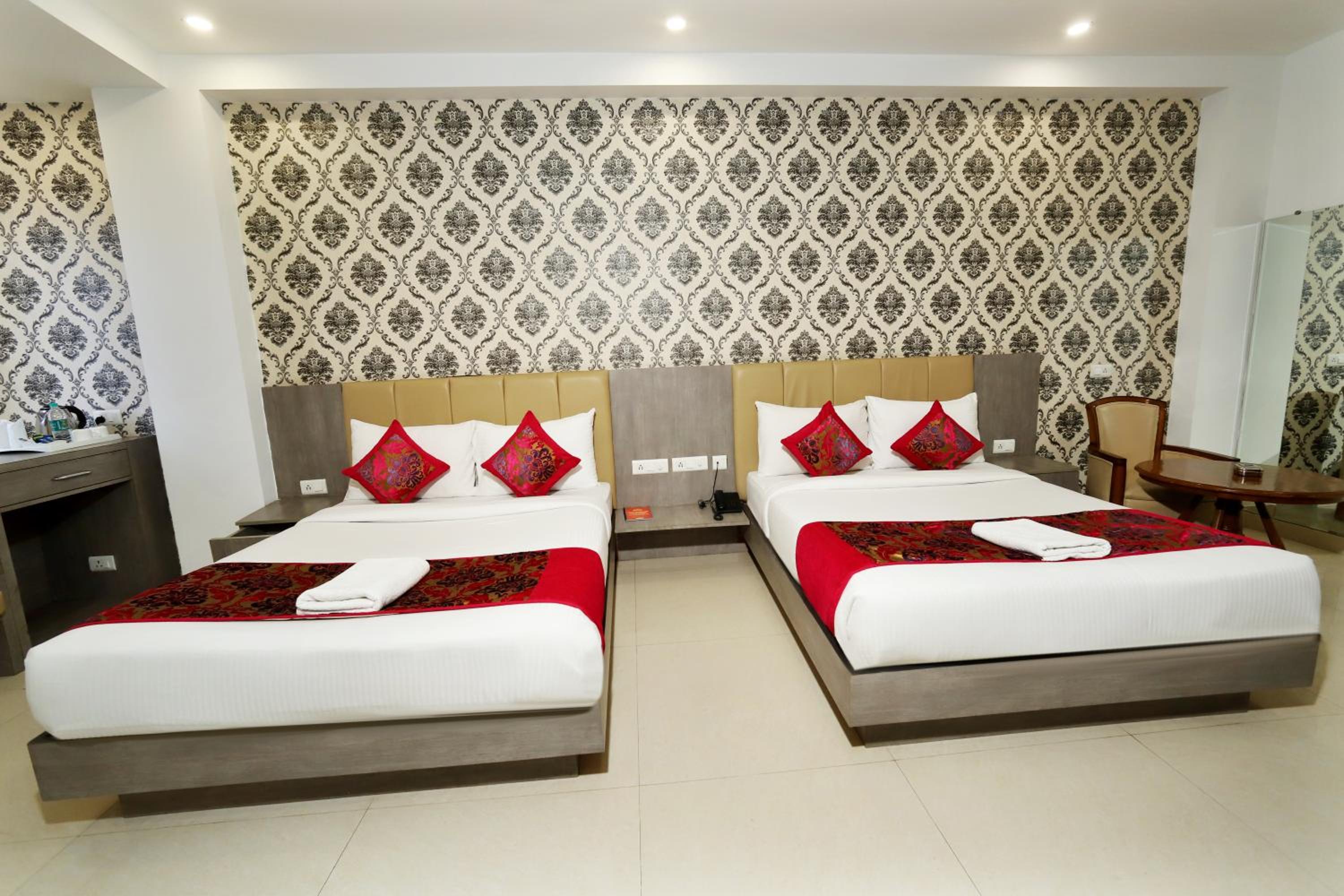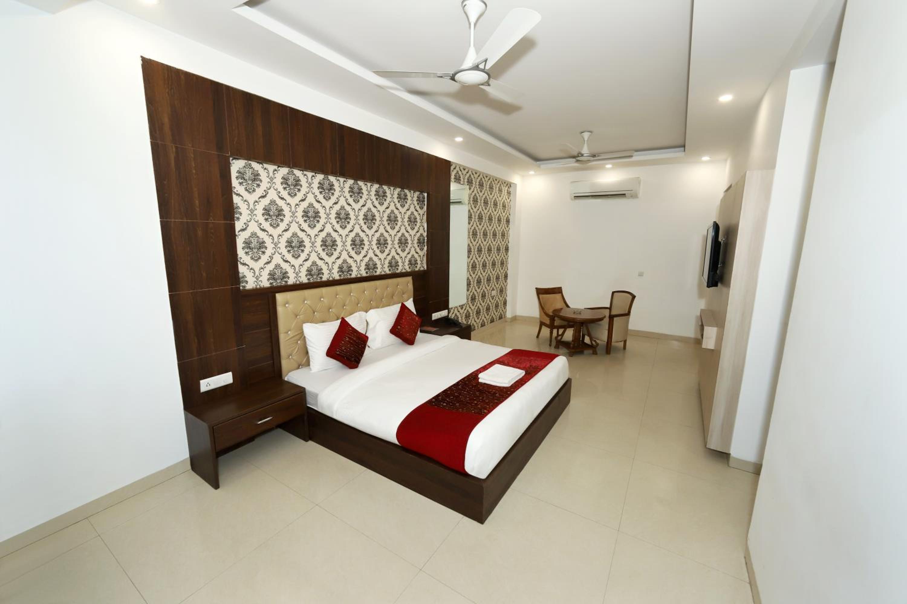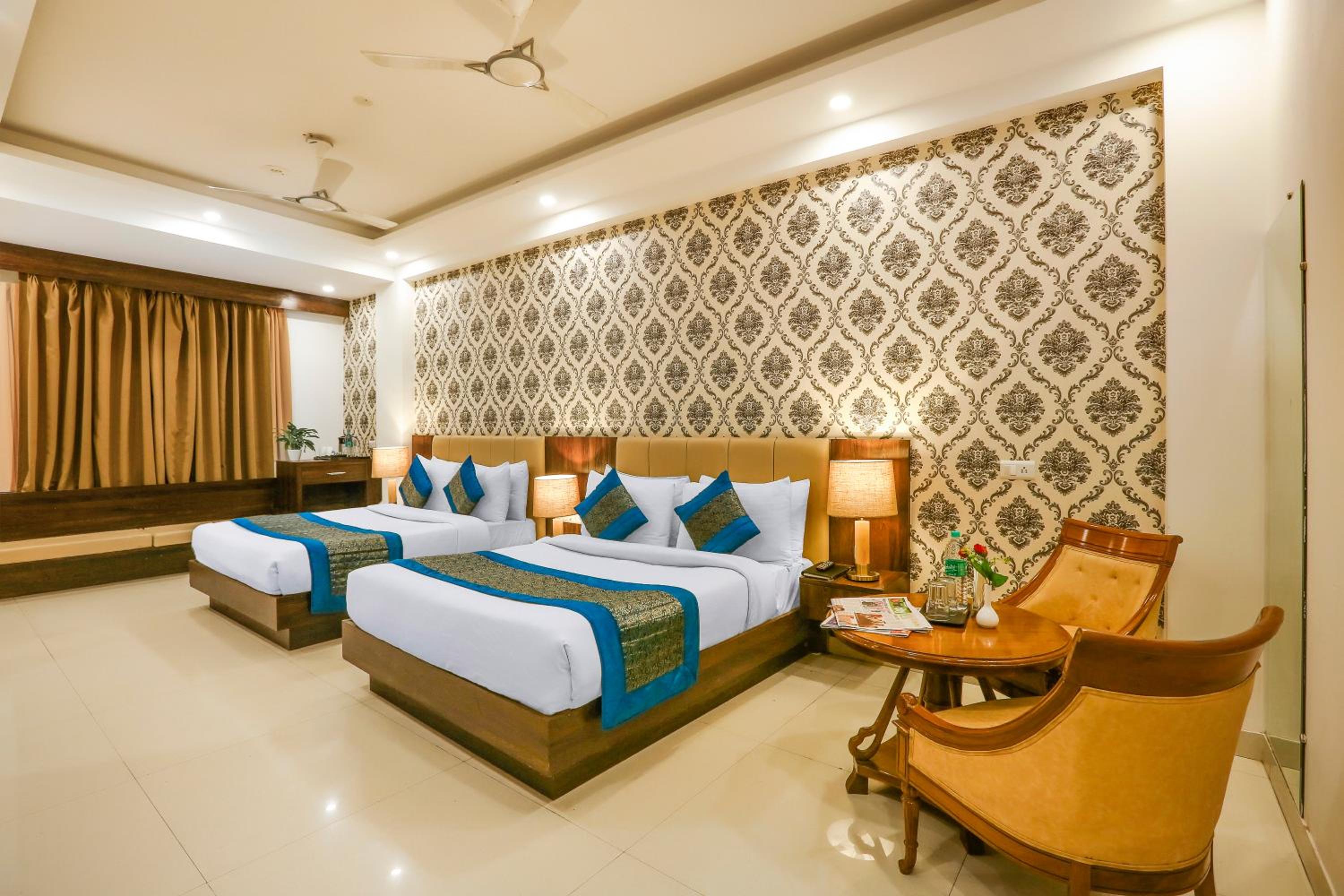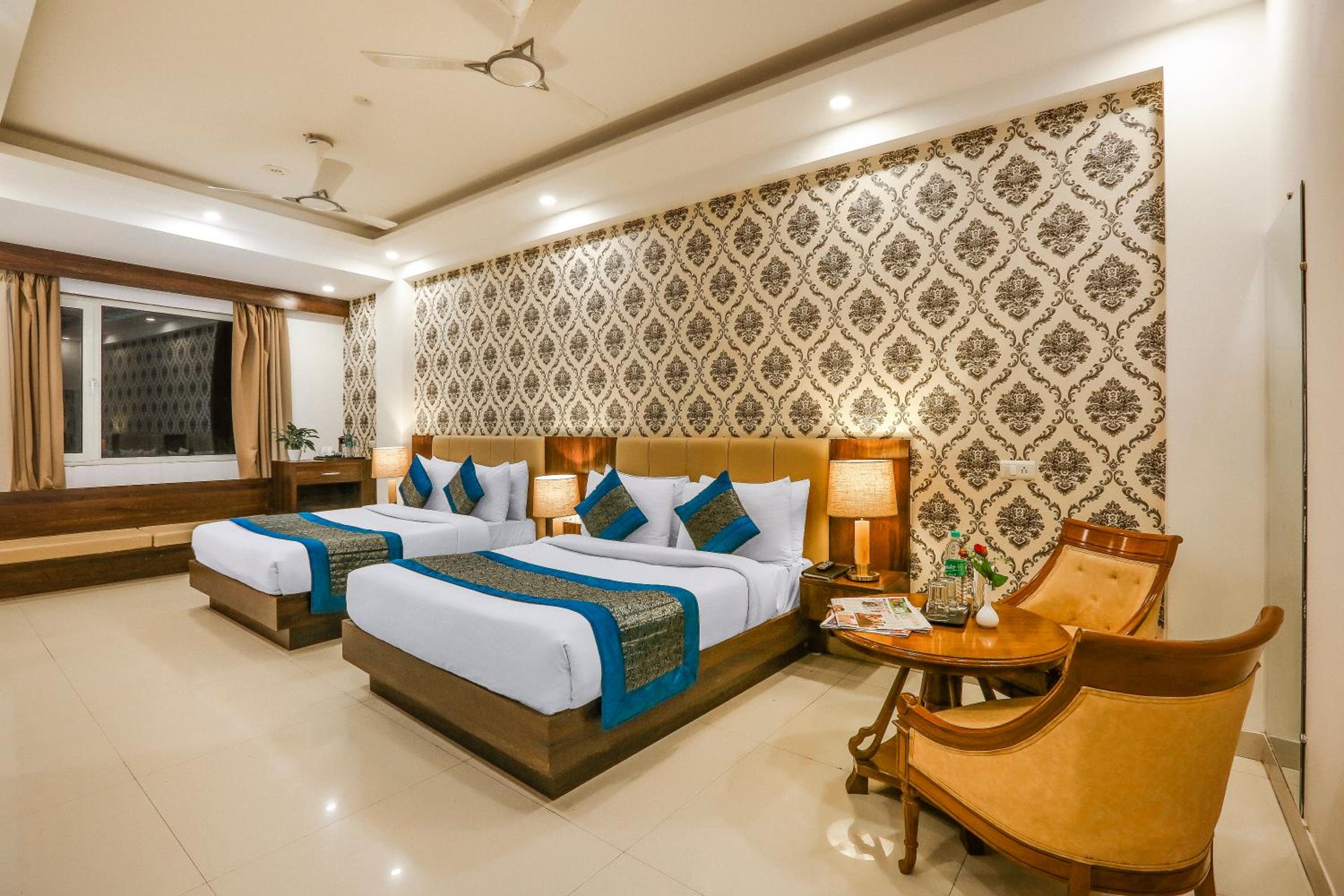 Luxurious Accommodation: Escape to Hotel Almati Inn at Delhi Airport, a 4-star property offering elegant rooms with modern amenities such as air conditioning, flat-screen TVs, and private bathrooms.