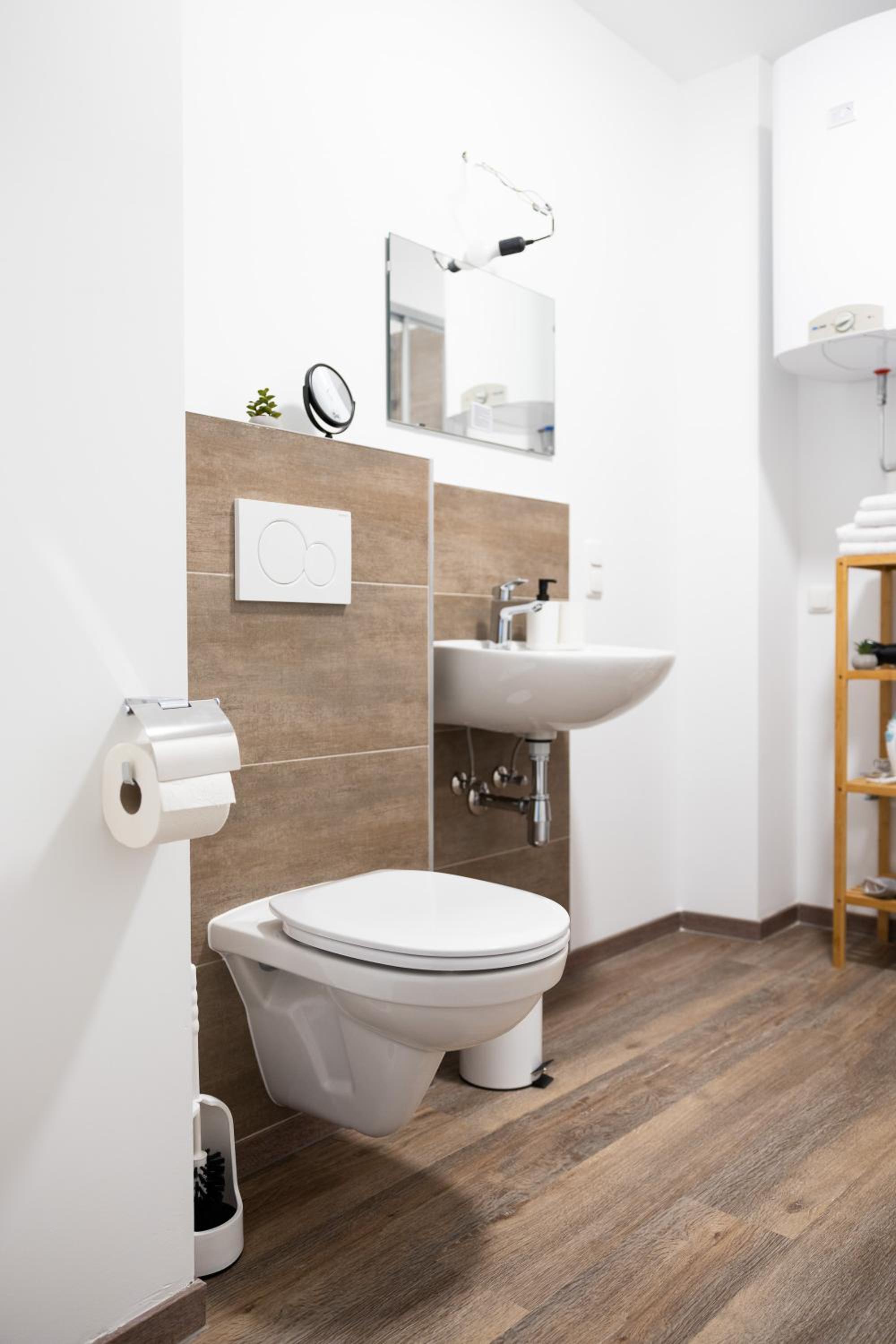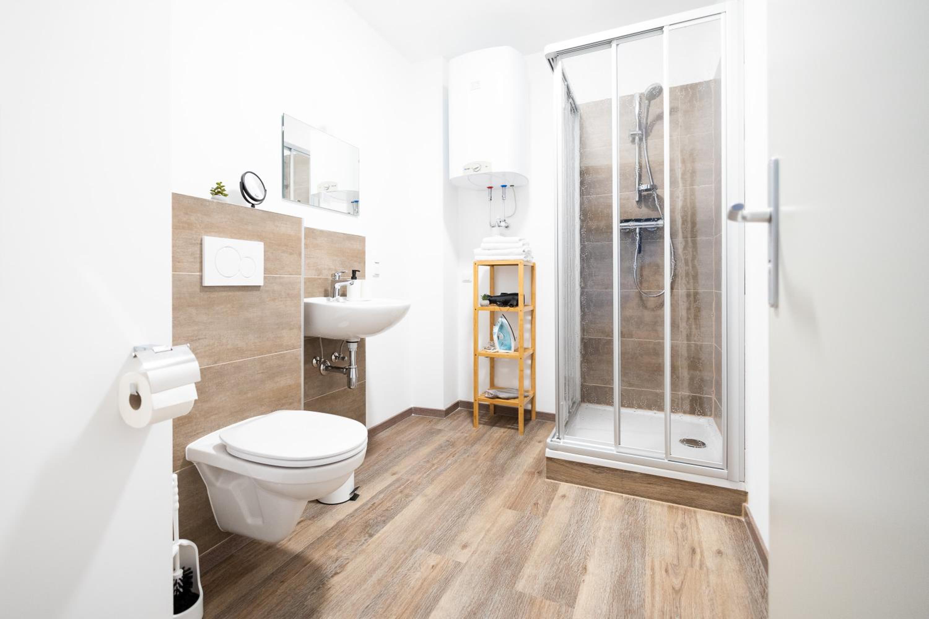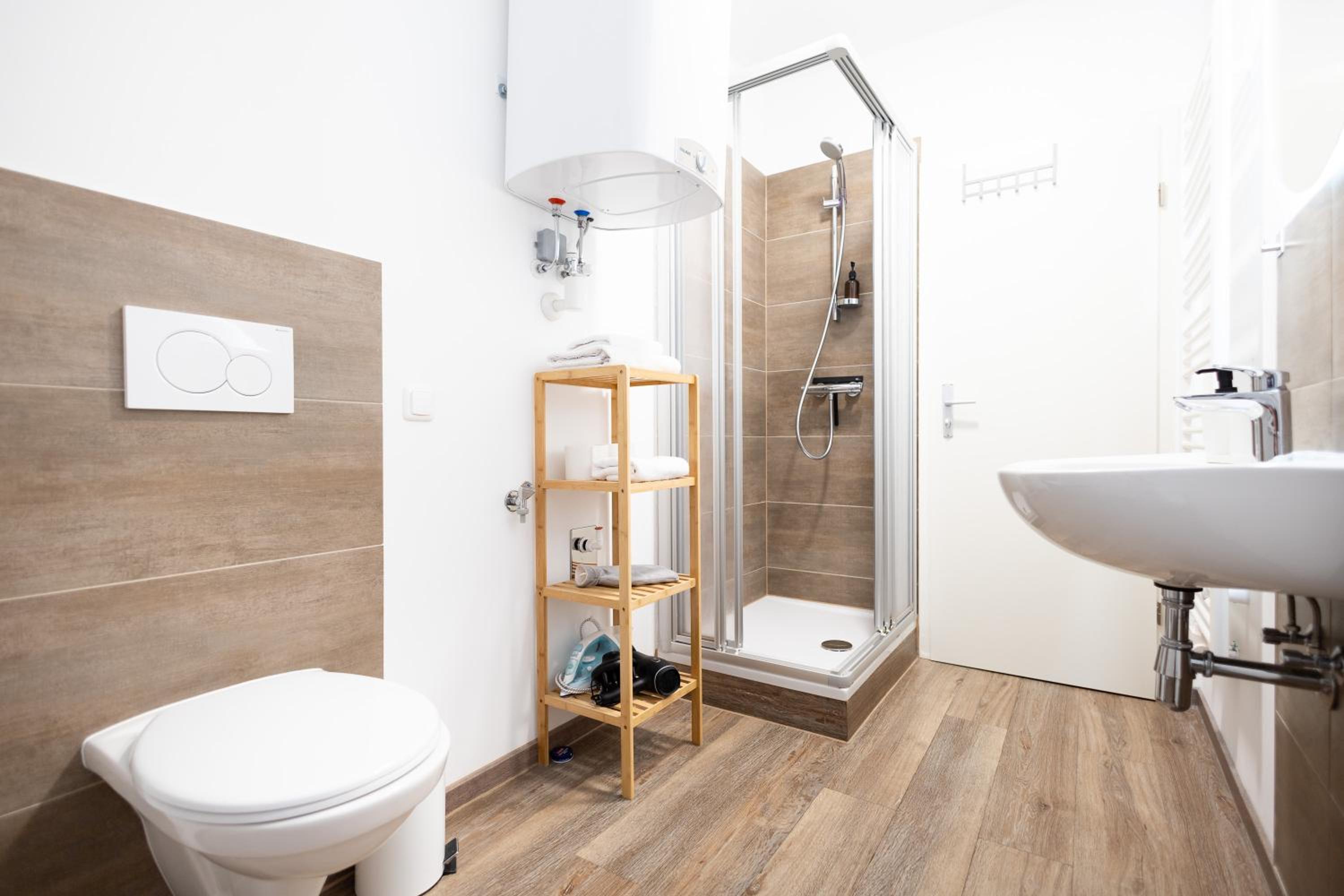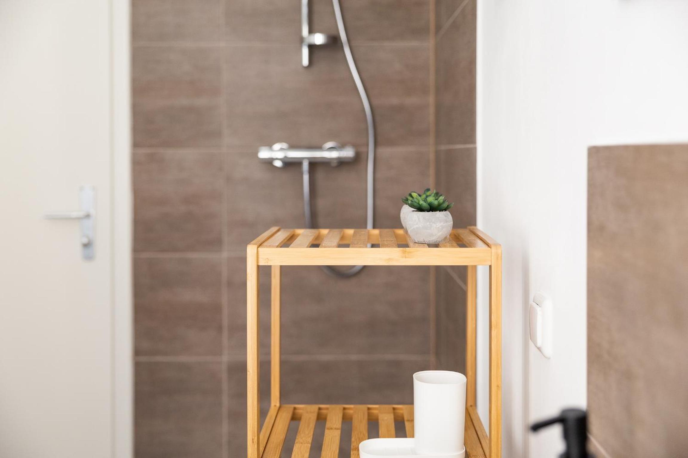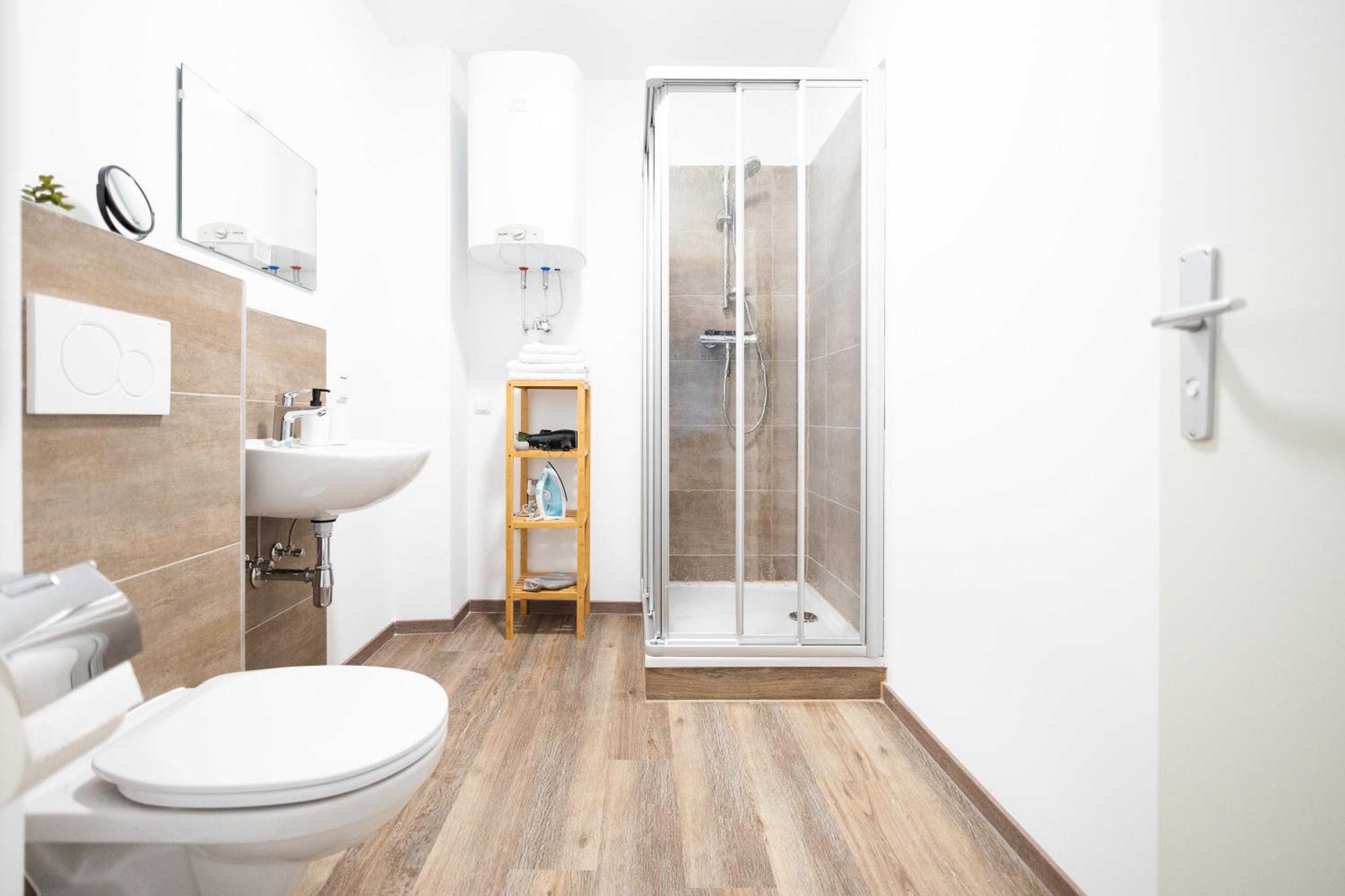 Fully Equipped Kitchen and Modern Amenities: Each unit is designed with parquet floors, a fully equipped kitchen, flat-screen TV, and a private bathroom. With conveniences like a dishwasher, coffee machine, and kettle, we ensure a comfortable and hassle-free stay for our guests.