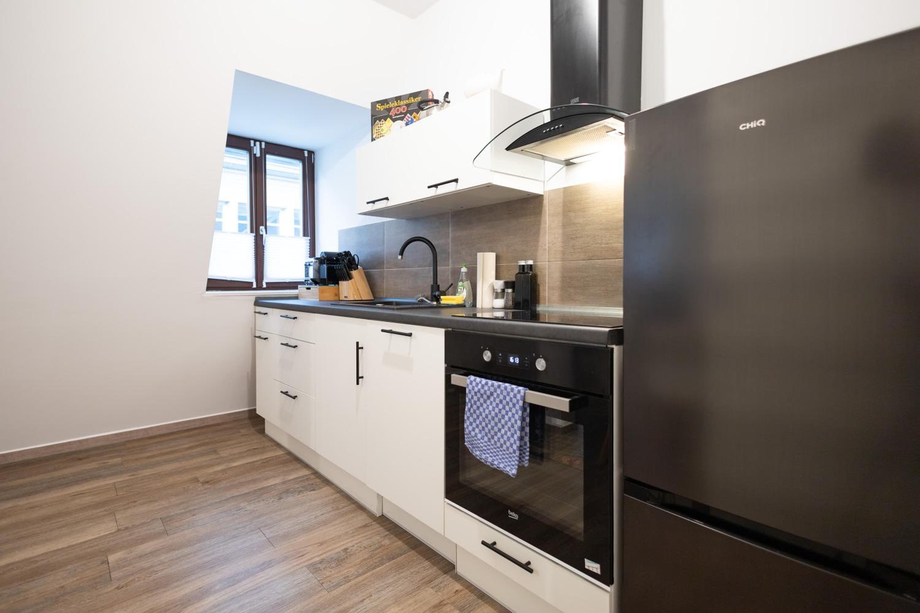 Gute Lage, perfekt ausgestattete Küche, sehr sauber, Ausblick leider in den Hinterhof