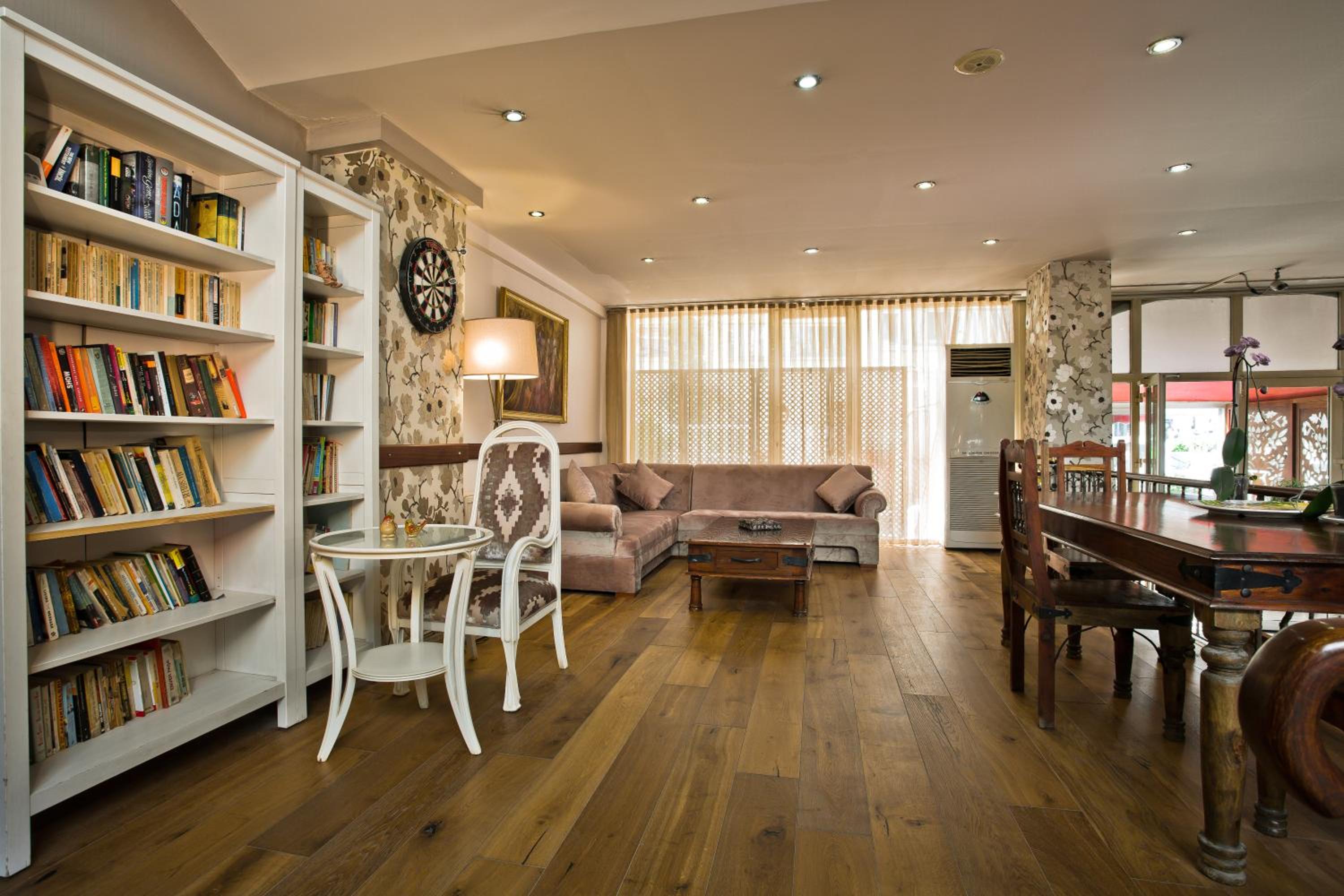 In the hart of Istanbul, always can park in front of the hotel. You can easily walk to metro in 2 minutes. Was quite in the room. Having the balcony in the room is like heavan for smokers. Having the room and the hall seperate was nicely thought. So your luggage is not in the room and the toilet is also in the hall part, convenient. The garden part is very cute to sit, it all feels like away from the city while it is in the city.