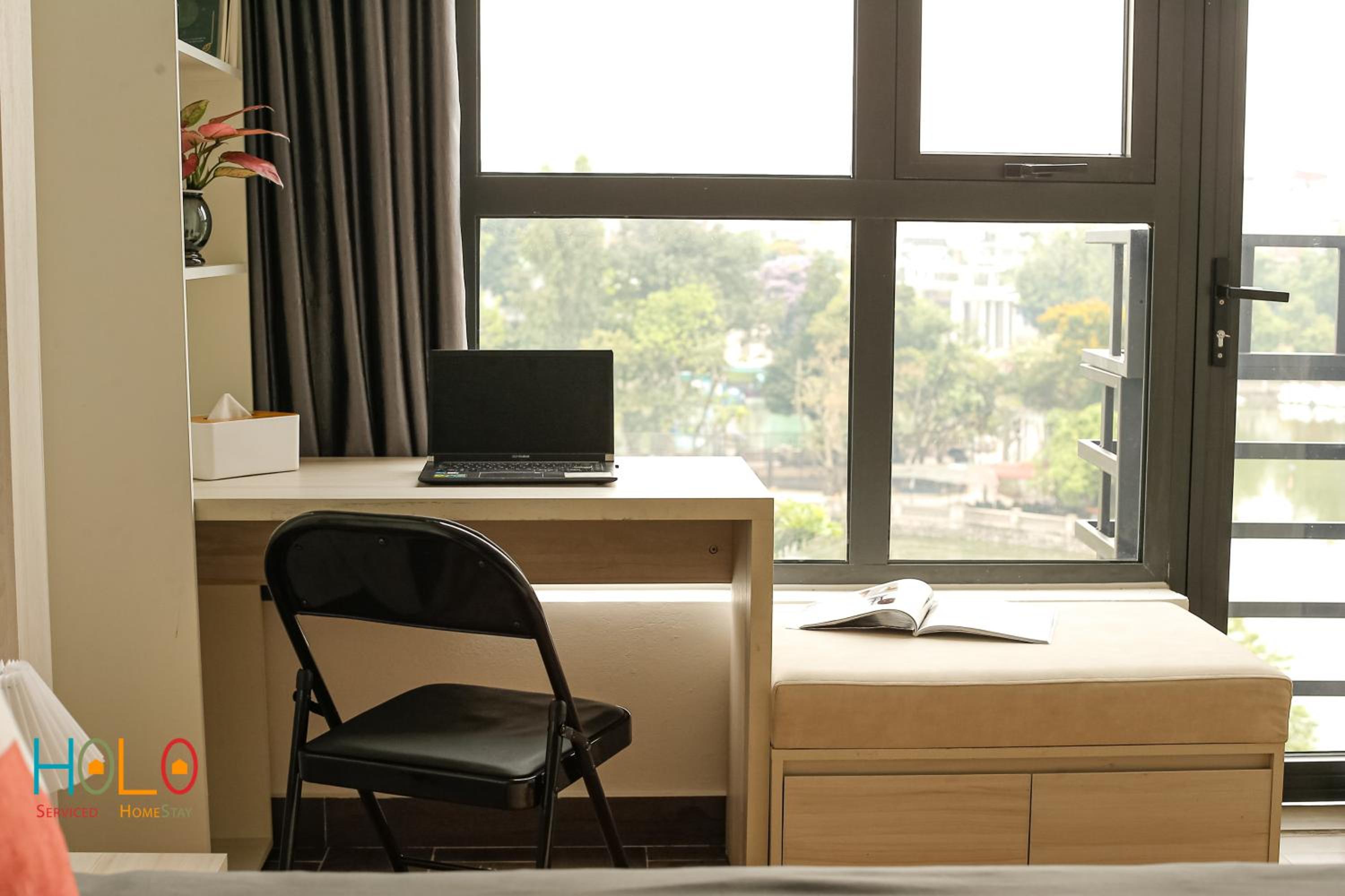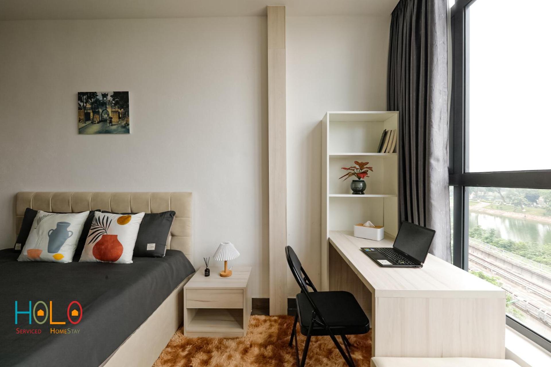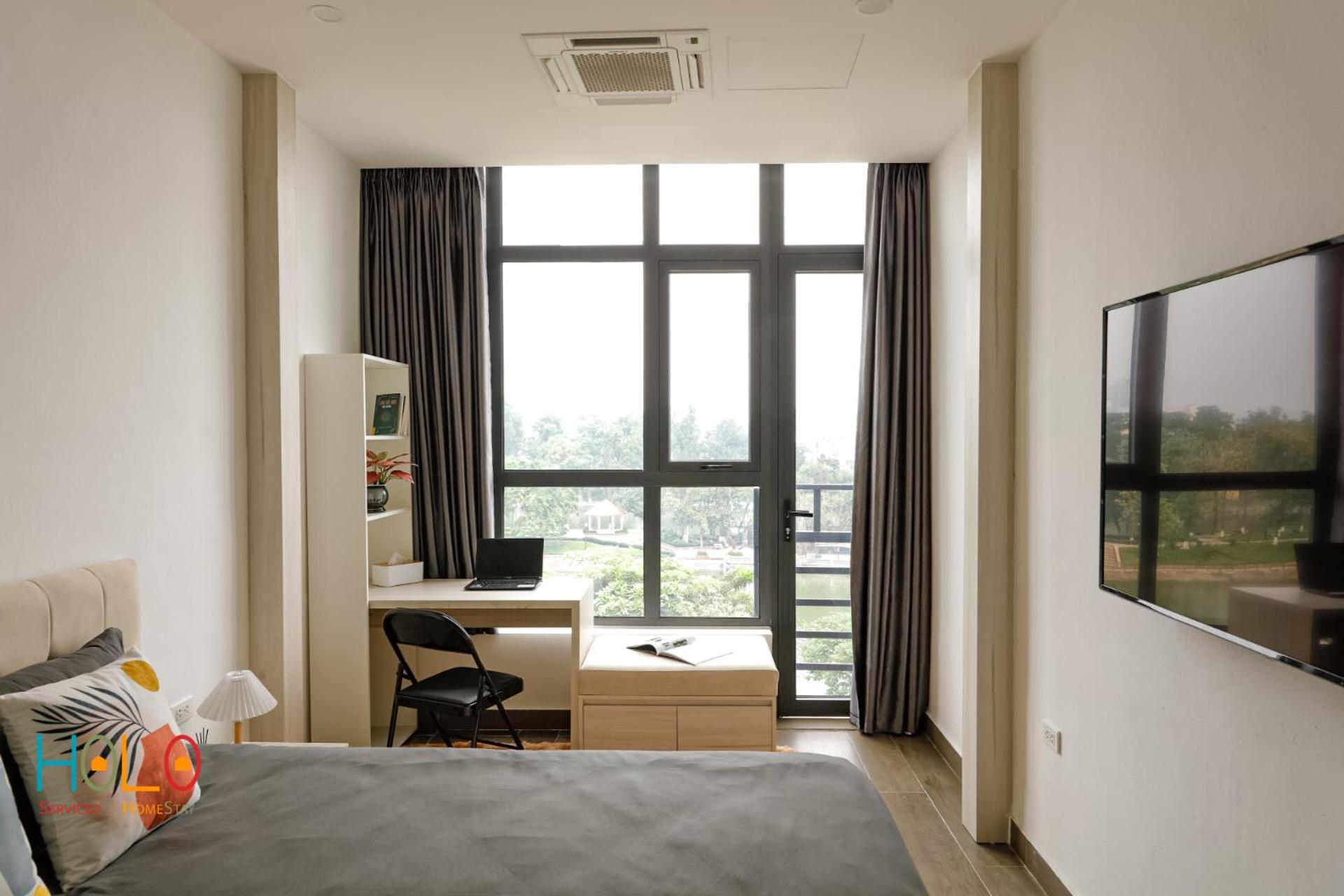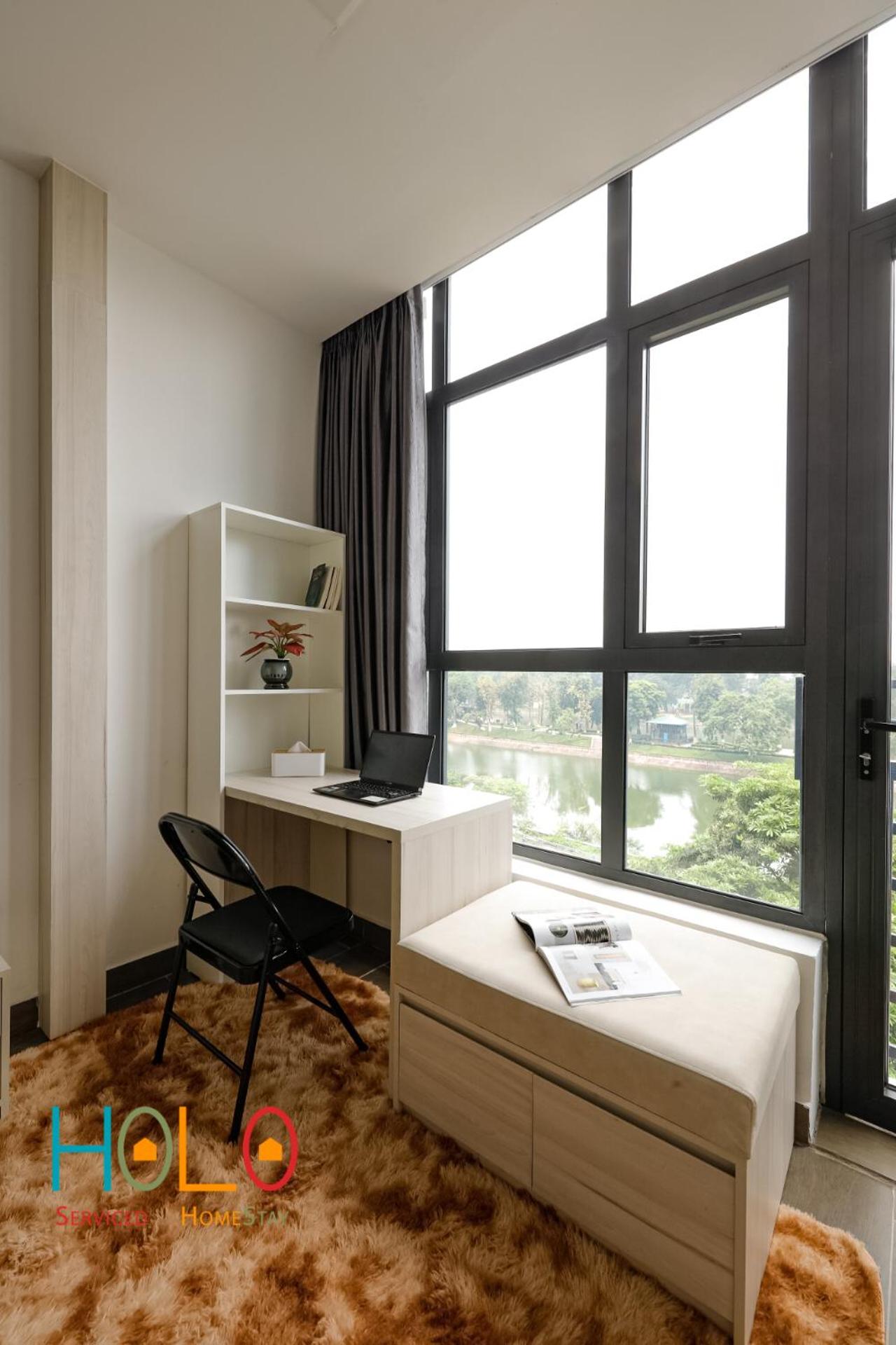 Enjoy picturesque lake and city views from the comfort of your room at HoLo Kim Ma Hanoi - Serviced Homestay.