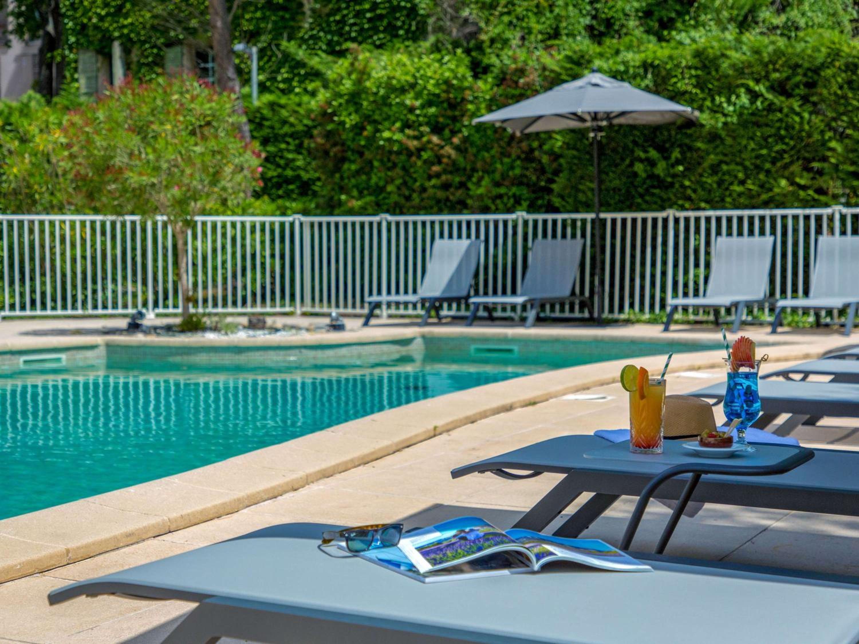 Indulge in the refreshing outdoor swimming pool at Novotel Aix-en-Provence Pont de l'Arc, offering a perfect spot to unwind and soak up the sun during your stay.