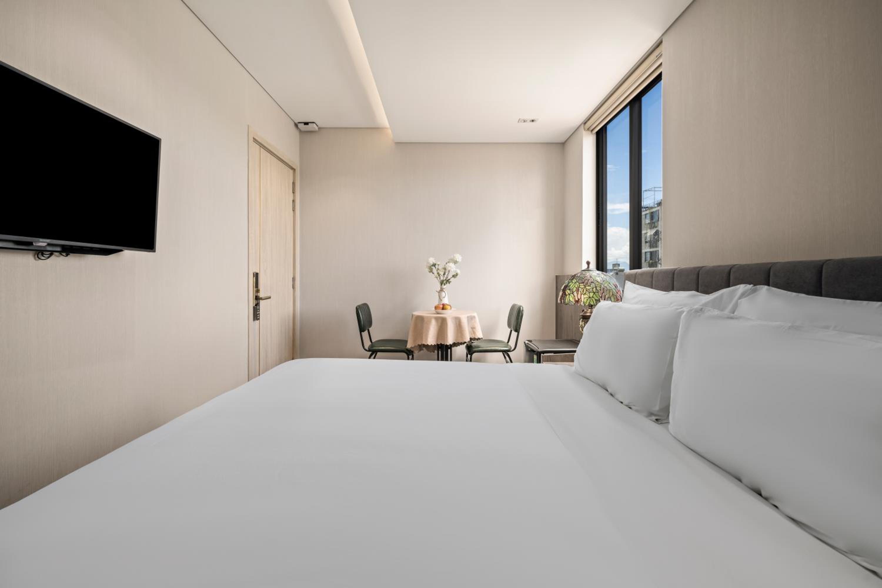 The room was clean and comfortable. The rooftop pool view is lovely.